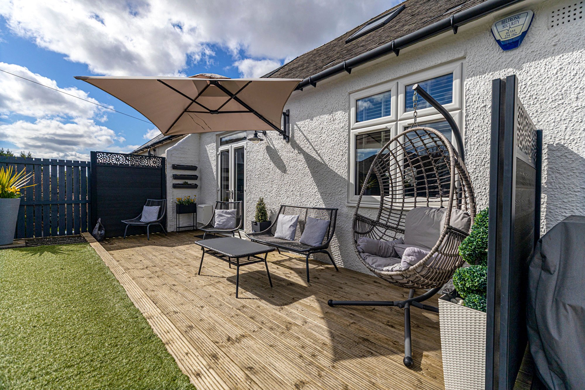The property benefits from landscaped private gardens with a decked patio area and an all weather lawn ideal for a low maintenance garden to enjoy the sun and al-fresco dinning. The front garden is mainly laid to lawn with a convenient driveway with ev charger for multiple car parking.