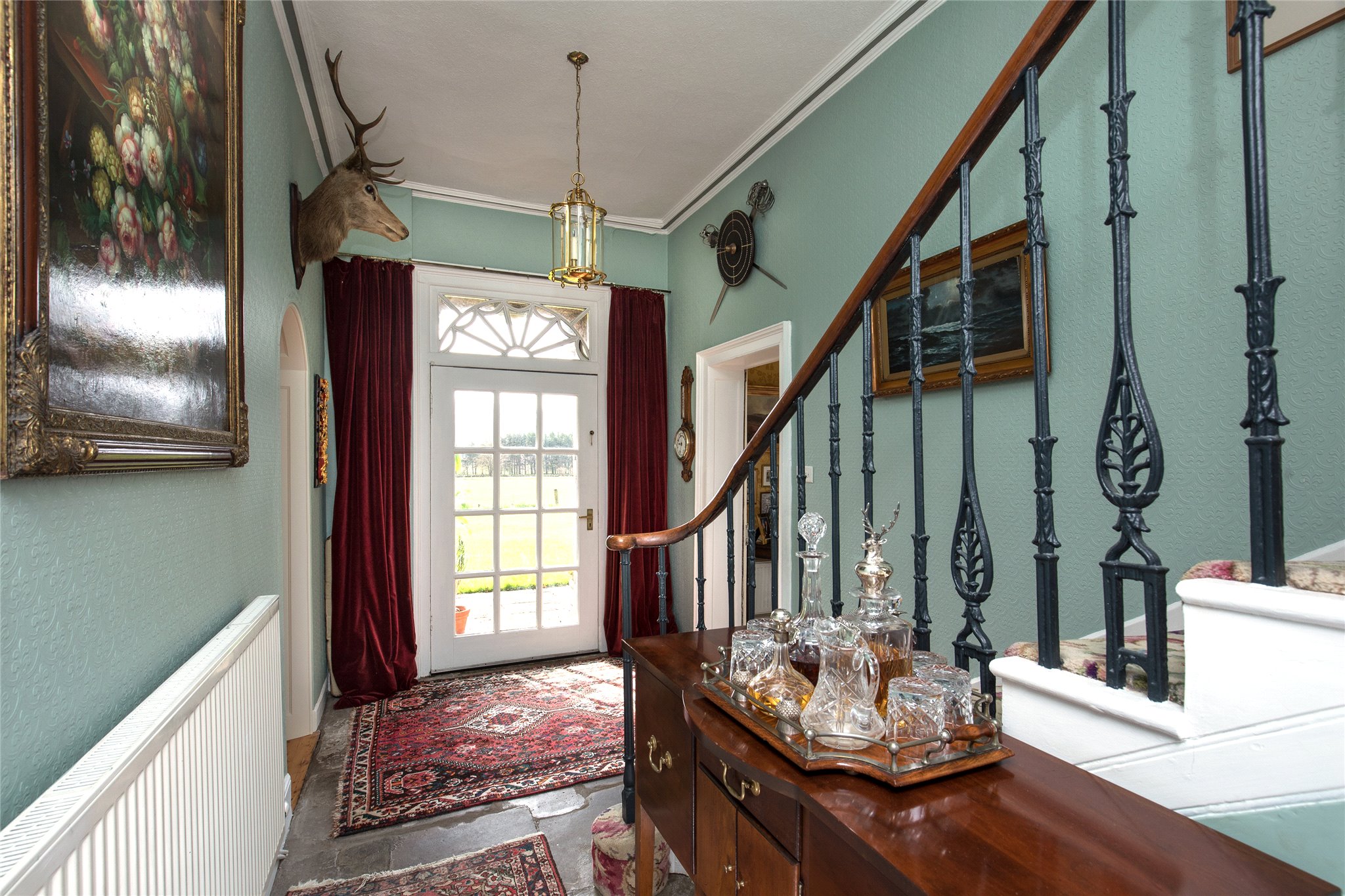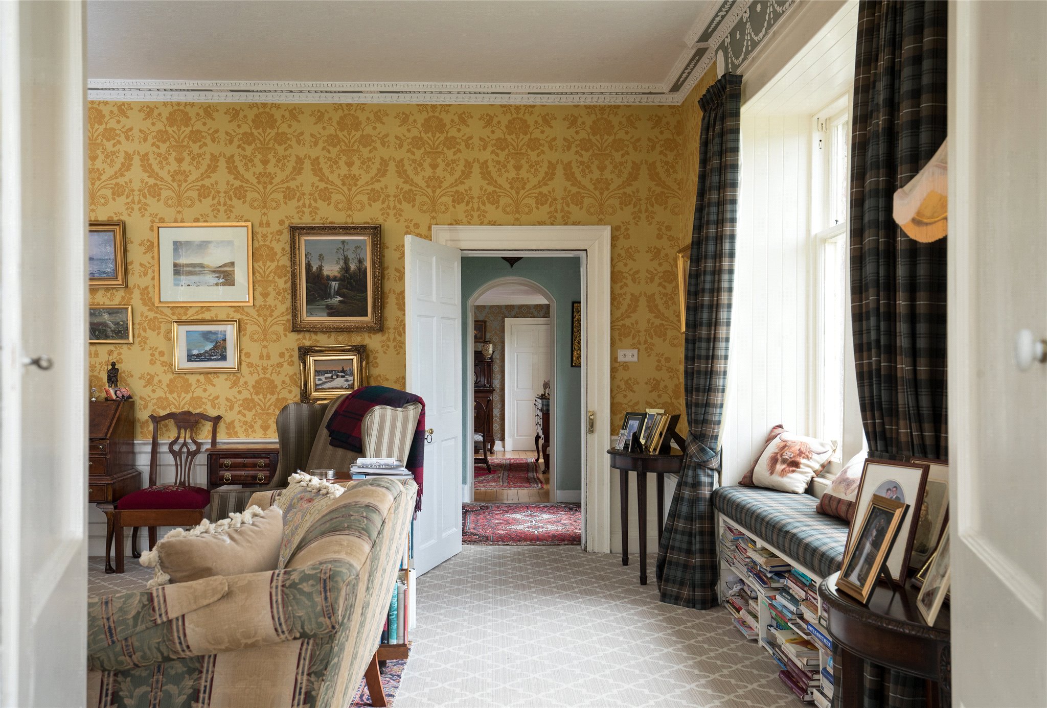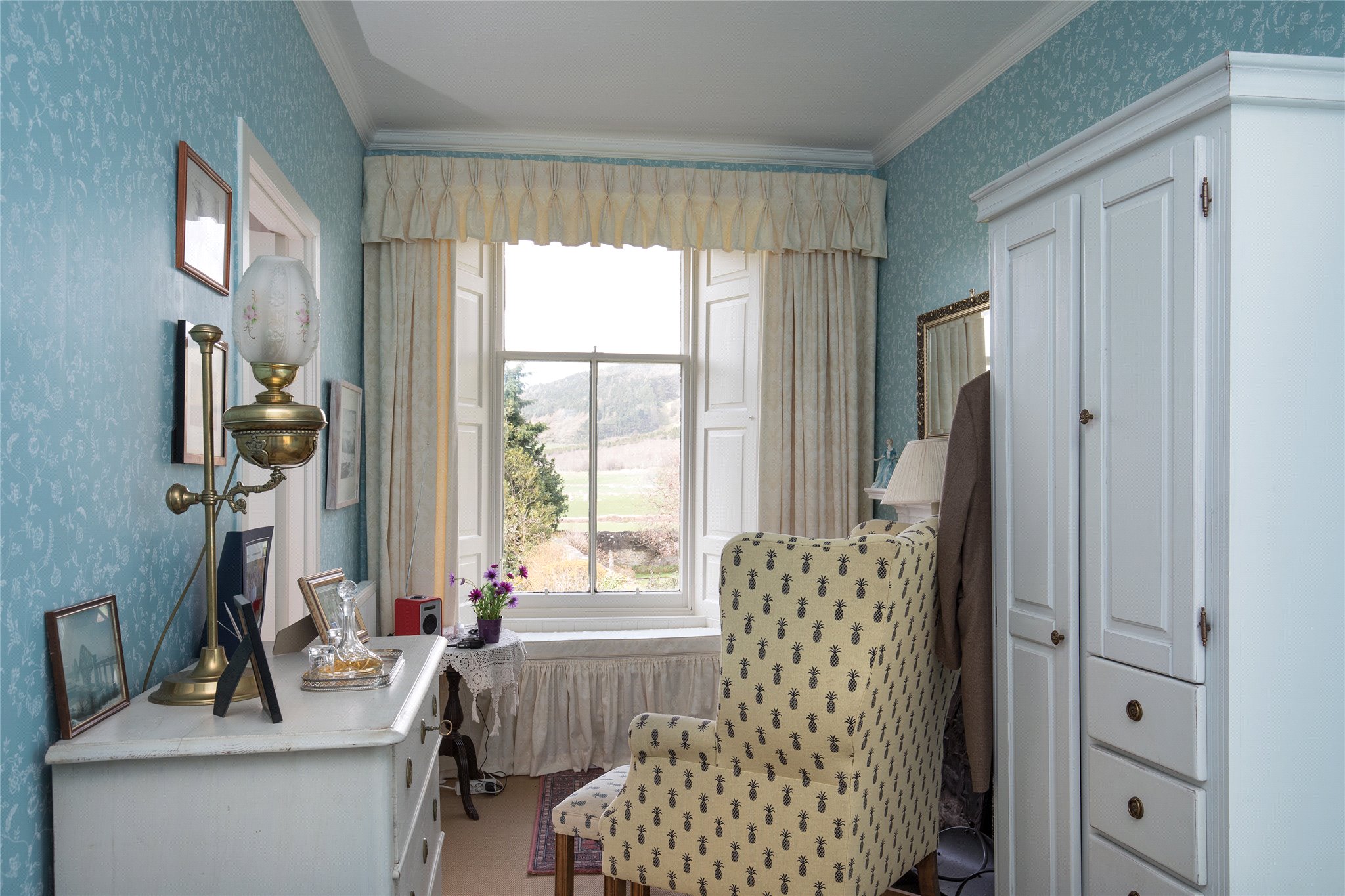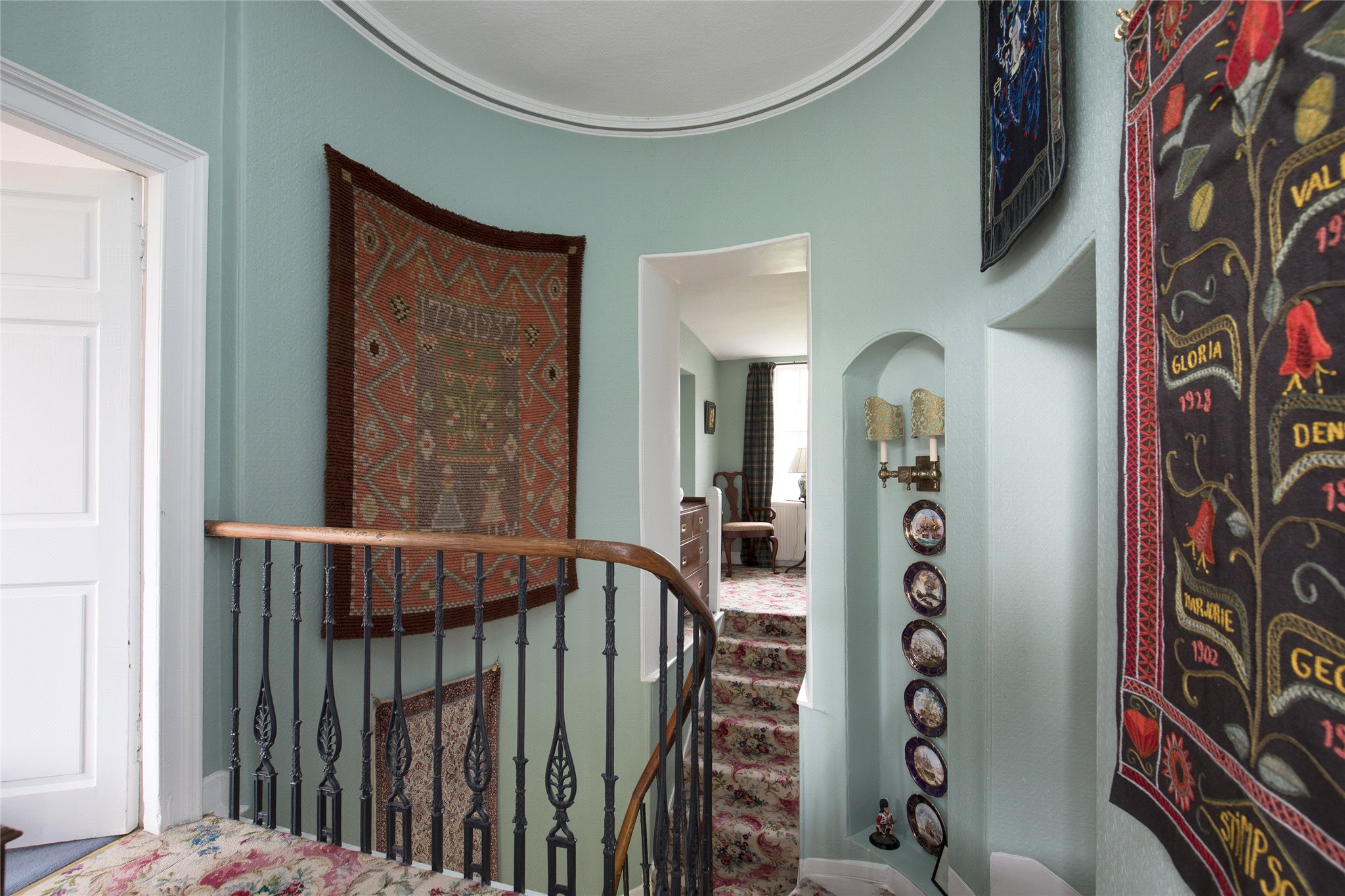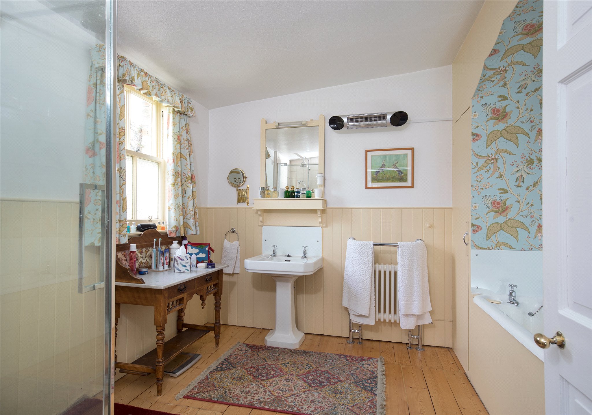 Nether Horsburgh Farmhouse is a charming B-listed country home set within mature grounds in the heart of the Tweed Valley, lying roughly equidistant from the quaint towns of Innerleithen & Peebles. The early part of the farmhouse dating from the 18th Century, was gentrified by Thomas Bell, an Edinburgh candlemaker, in 1805, to provide the impressive reception rooms with their original Adam style fireplaces, wainscot paneling and plasterwork – the house is abundant in key period features throughout. Set over three floors the property boasts a bright drawing room with direct access into a delightful sun-room, large dining room, country kitchen, comfortable study & WC are also on the ground floor. To the rear of the house there is a boot room, utility & double guest bedroom.