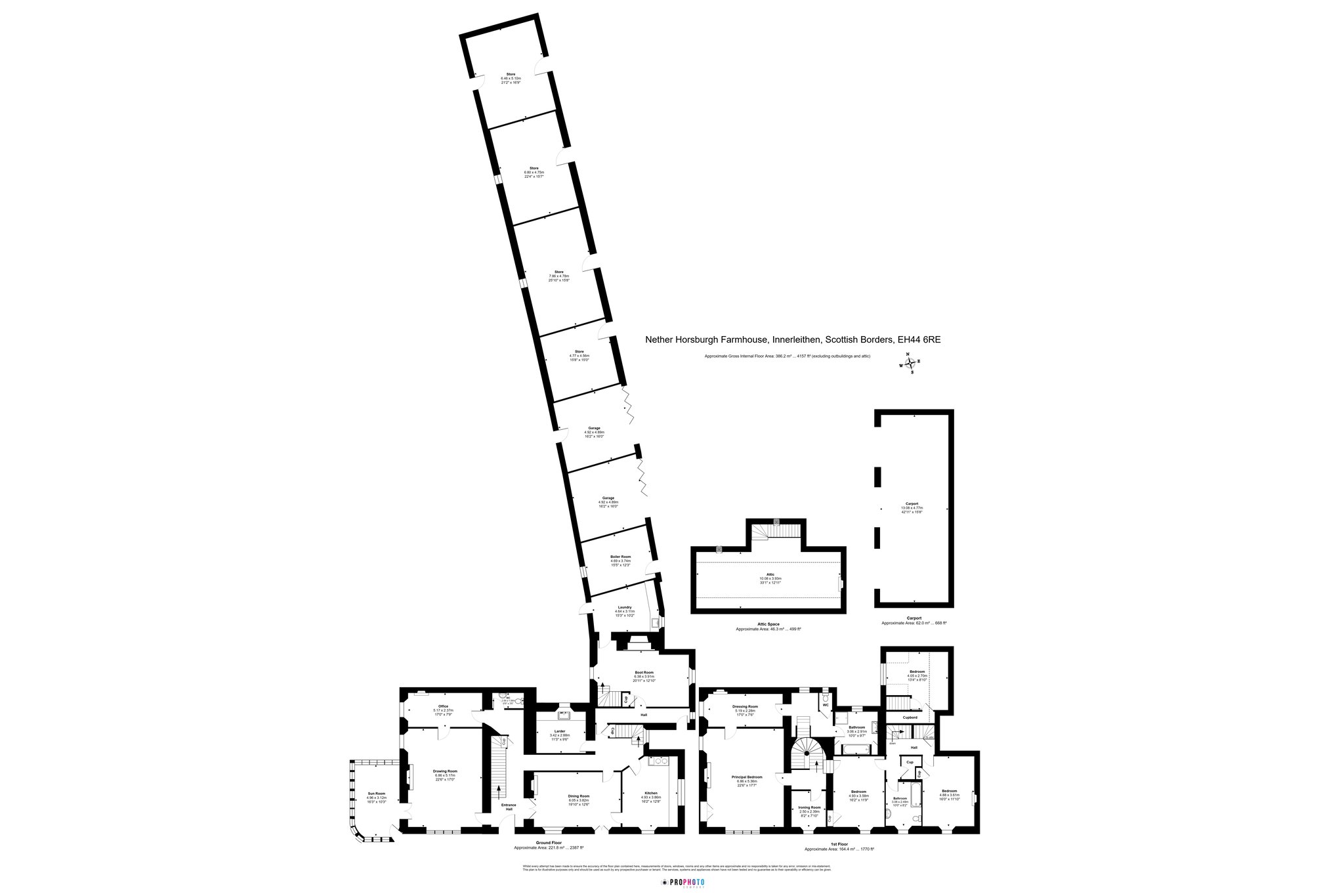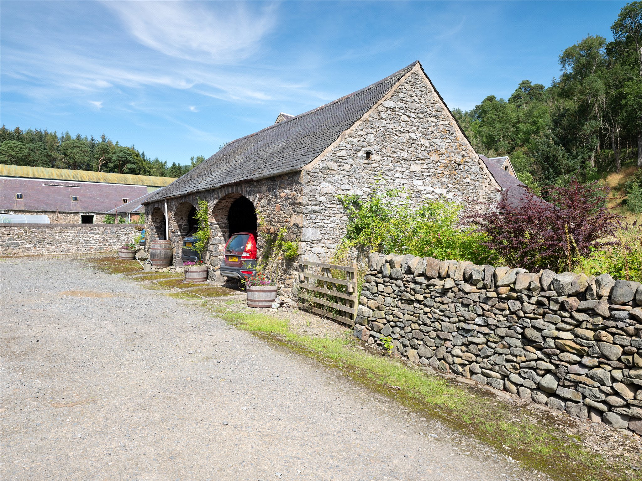 Externally the property boasts an array of stone-built outbuildings including: car-port with electric car charging station, two large garages, four original byre sheds (recently re-roofed) offering storage/stabling potential.