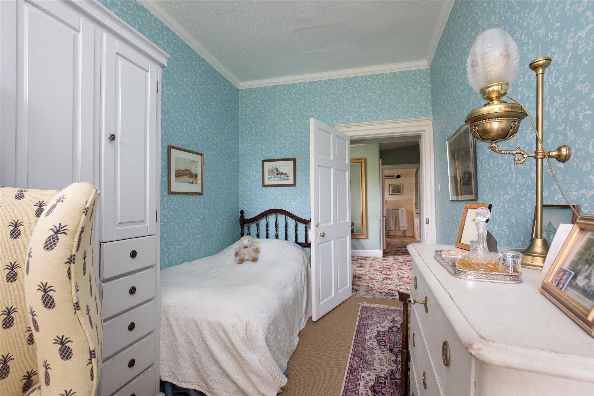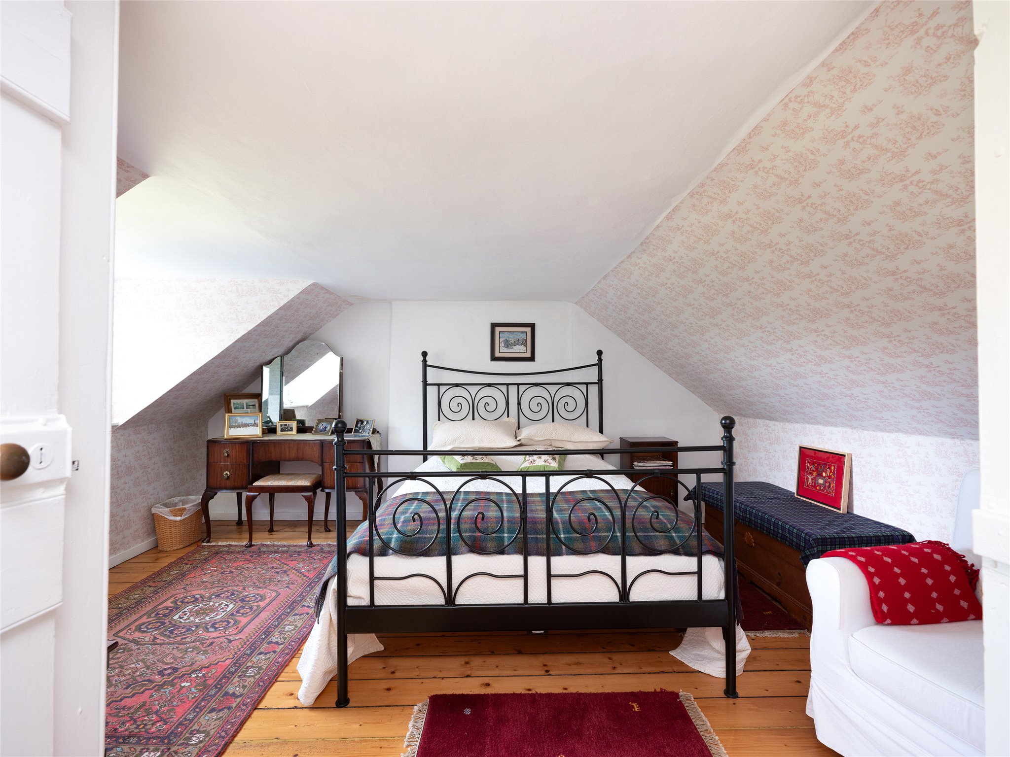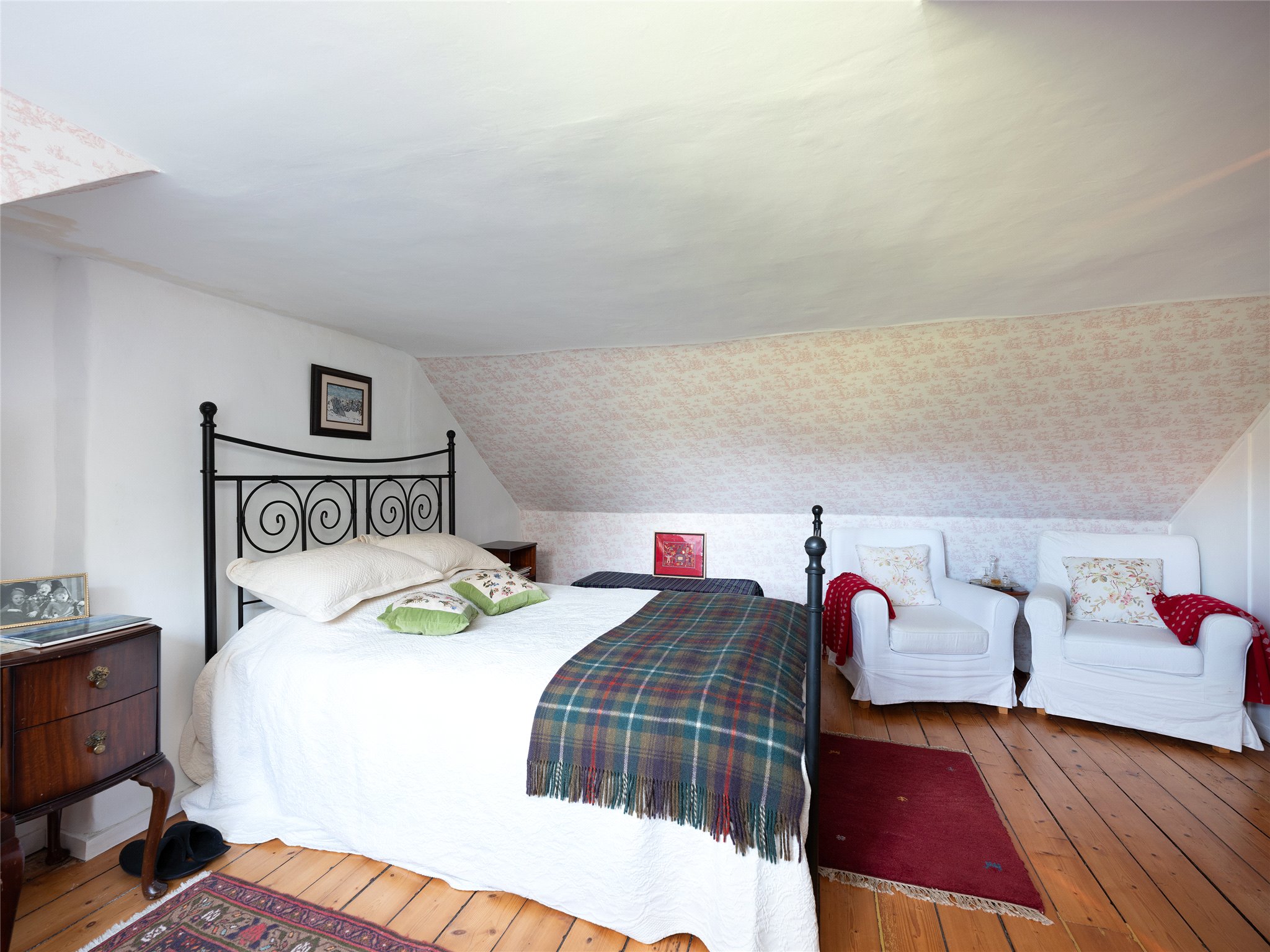 A cast-iron stair with carved handrail leads to the first floor. The principal bedroom benefits from a large dressing room and access to its own bathroom. There are a further two large double bedrooms accessed via its own wooden staircase and a further bathroom with shower over bathtub – there is an additional single bedroom too. The house benefits from a large attic space which could be converted to provide additional bedroom space or a large playroom/TV room. All bedrooms boast lovely views over the mature gardens which surround the property.