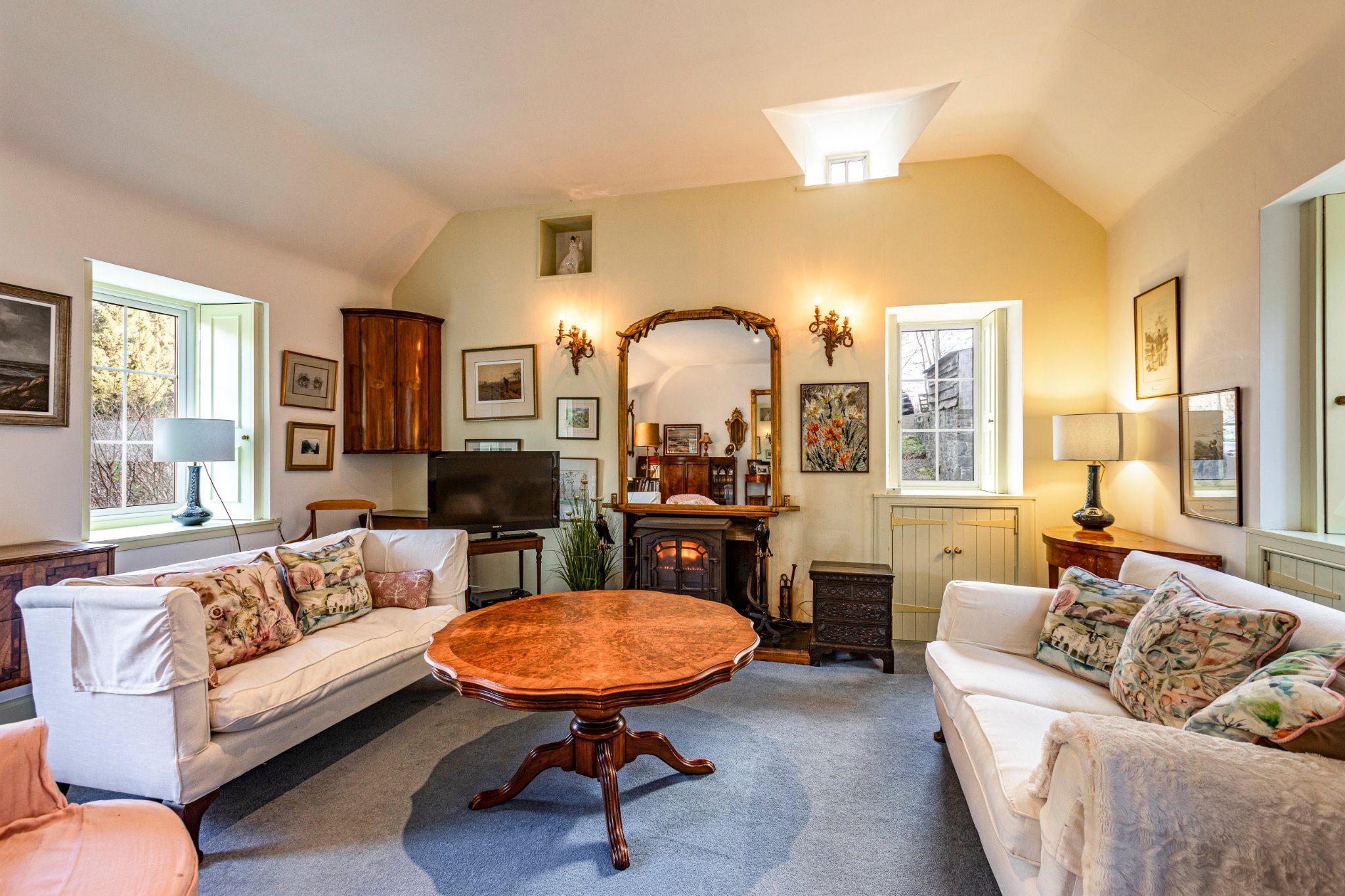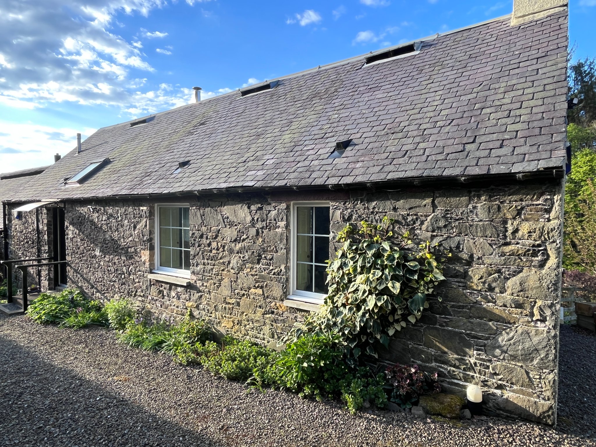 Dogcraig Cottage is a charming, unique property, set in an elevated position on the banks of the iconic River Tweed. The property forms what was originally the outbuildings of a 200+ year old corn mill built for the nearby Kailzie Estate. Scotsmill is now a semi-rural collection of four houses approximately 1 mile distant to the bustling county town of Peebles.