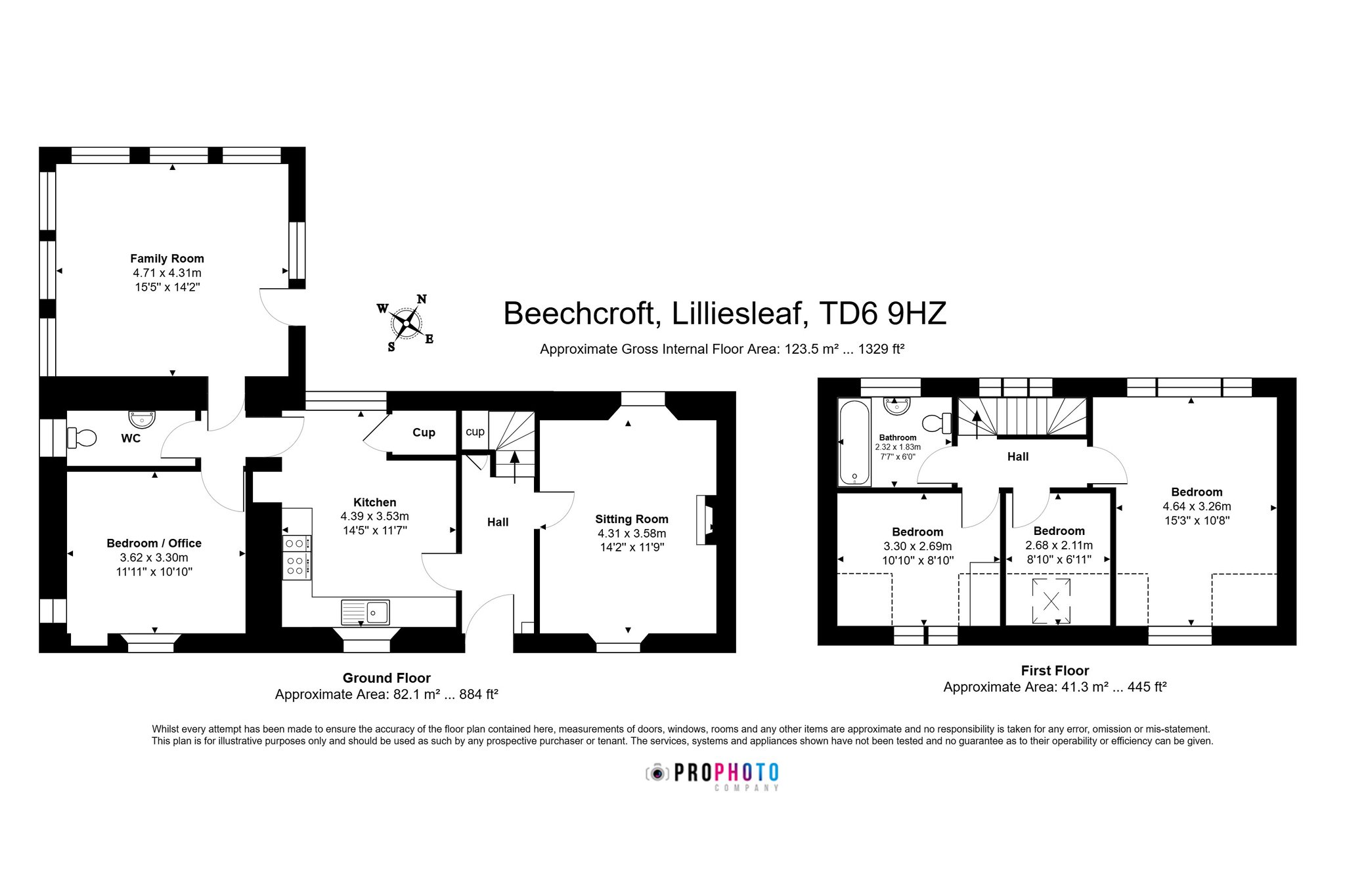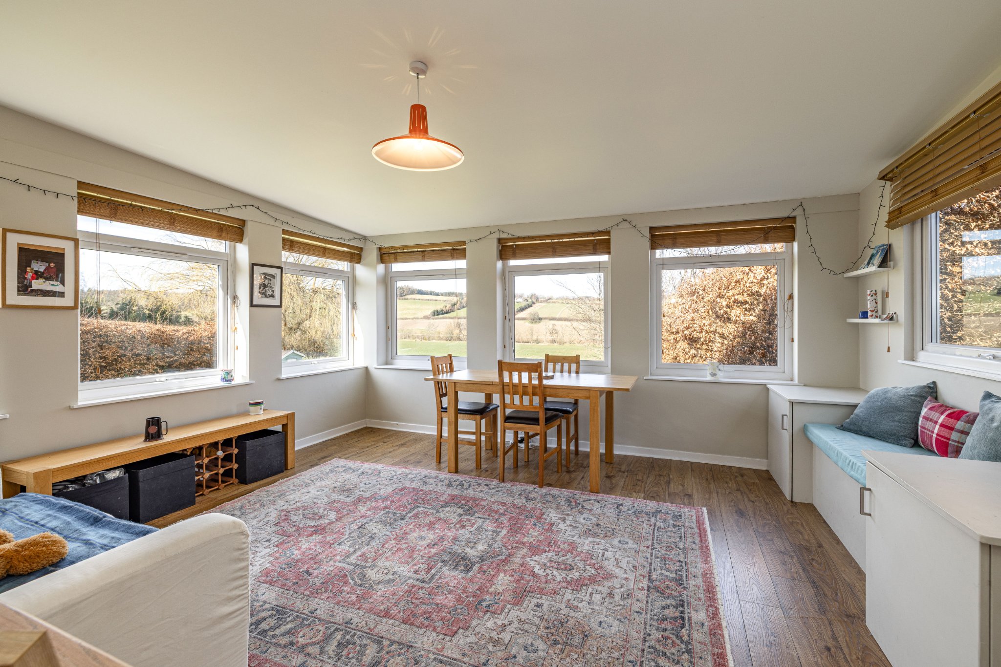 Hallway, Sitting Room, Dining Kitchen, Family Room. WC, Bedroom/Office.
