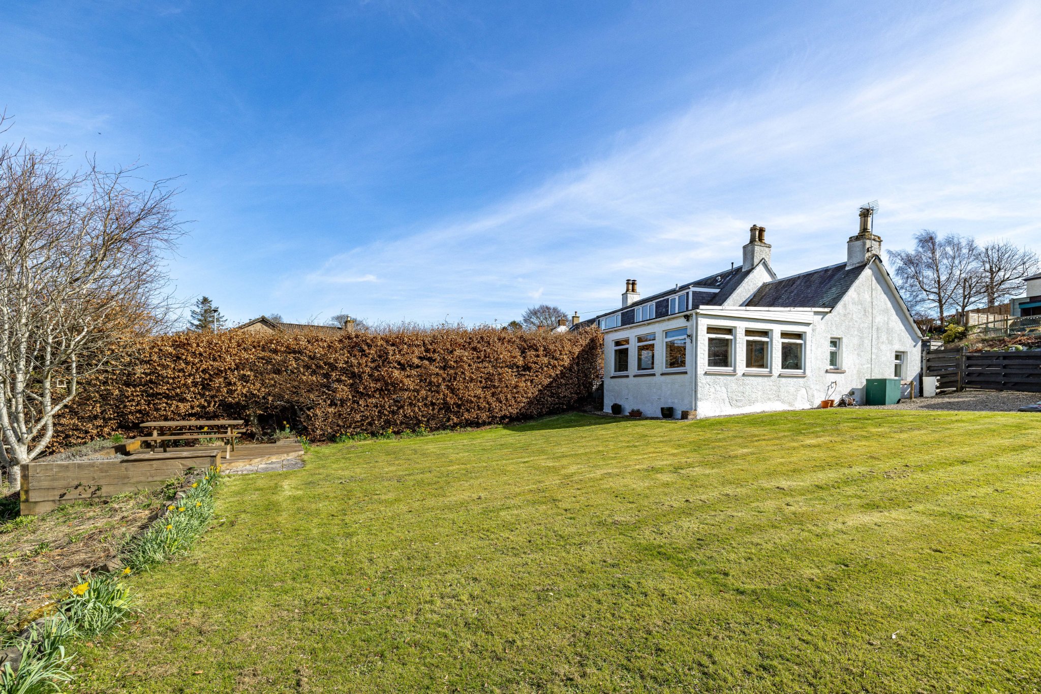 Please note the current owners were granted full planning permission in May 2022 to create a larger open plan kitchen from an extension of the sunroom with decking linking to the garden. More details can be found on the Scottish Borders Planning Portal with reference - 22/00380/FUL.