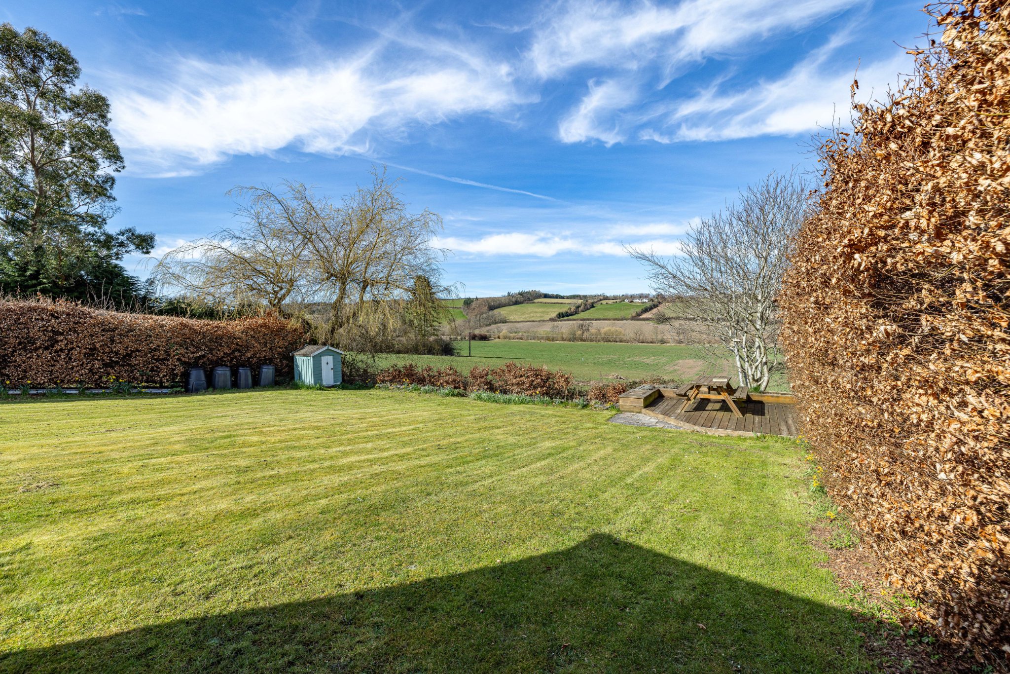 Externally the property sits in a large plot looking out over the rolling countryside, the garden is mostly laid to lawn with beech hedging and mature shrubbery. The garden is perfect for those looking to follow the sun all-day with a large, decked terrace to the bottom of the garden. There is a gated driveway offering a parking space for one car to the right of the property. With its peaceful village setting Beechcroft is an excellent family home for those wishing to be part of a thriving village community within easy reach of excellent local schooling and wealth of amenities in Melrose & Selkirk.