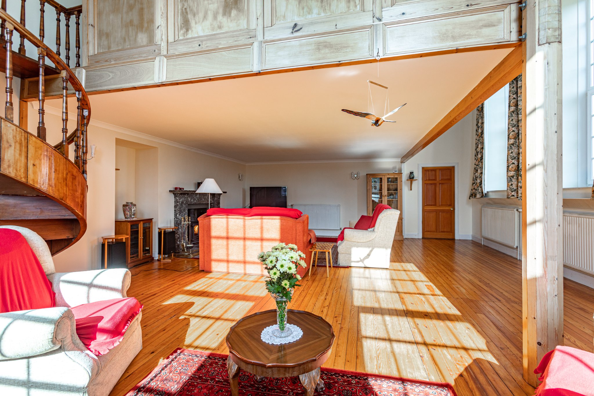 Arranged over two principal floors this unique Victorian property extends to 4073 square feet. The ground floor opens from a wide reception hall into a generous drawing room once serving as one of the three original classrooms, with a stunning original stone fireplace. Across the hall is a welcoming sitting room with large windows, marble fireplace and a mezzanine level which has potential for a number of uses – the current owners have utilised this as a craft room and study. Opposite the sitting room off the hallway is the large country style dining kitchen with a wood burning Rayburn stove and views out to the village church. A second hallway, operated as a utility area, has a downstairs WC/shower room and opens out onto a sunroom with access to the garden. This completes the principal accommodation on the ground floor.