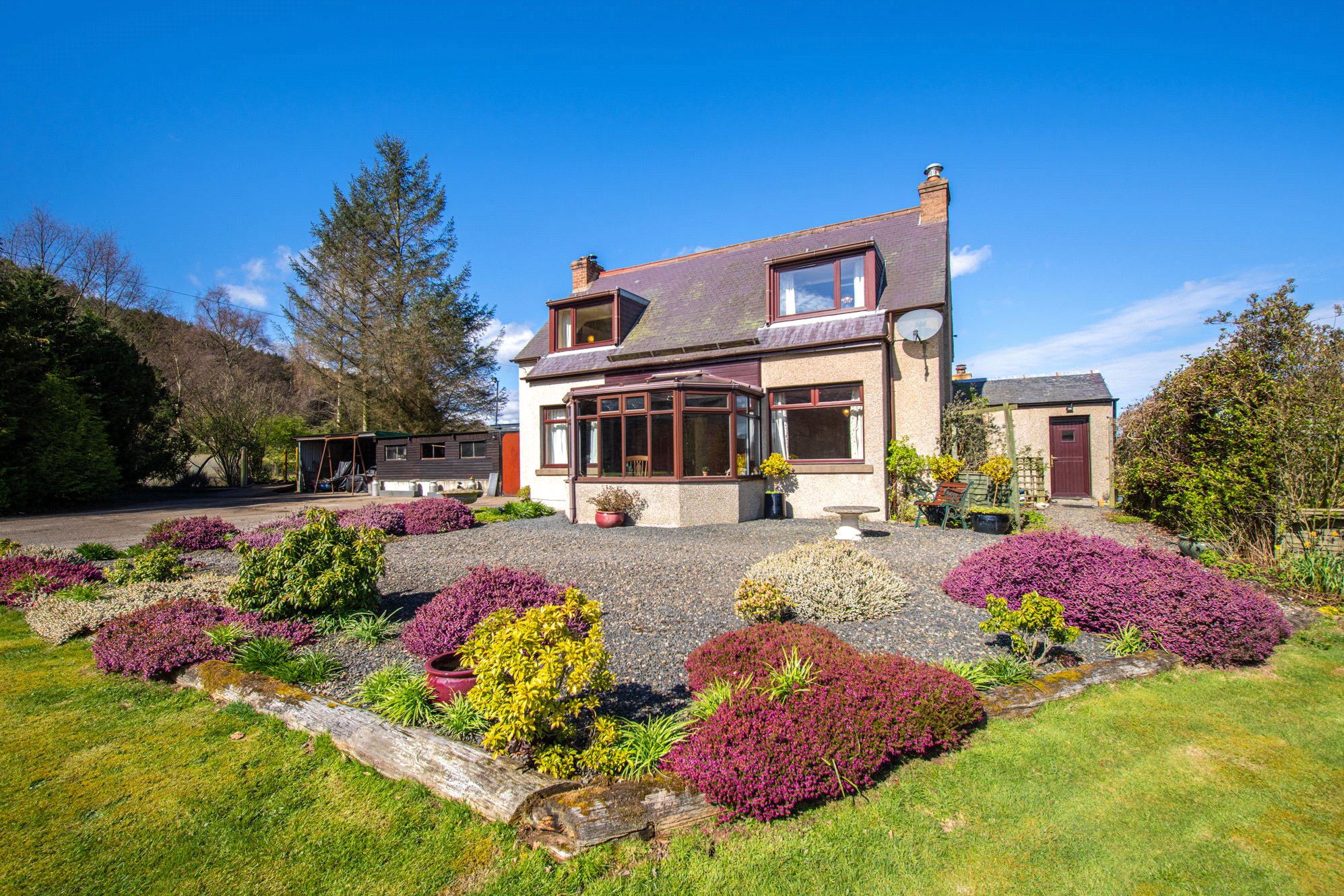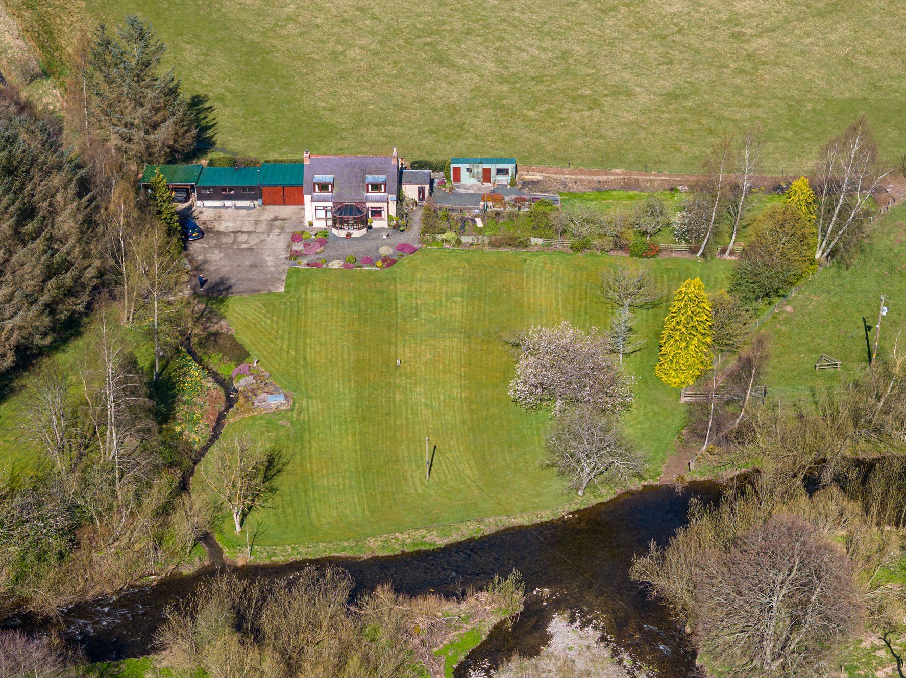 Retained within the same ownership for over 45 years, Craigneuk has been a labour of love for the current vendors. The property sits back from the banks of the Gala Water with a generous enclosed plot of some 8.3 acres. Much of the garden is laid to lawn with supplementary specimen trees, a separate vegetable garden and stream running through the edge of the boundary. An array of outbuildings offer a variety of storage options or could be used to house livestock and or horses.