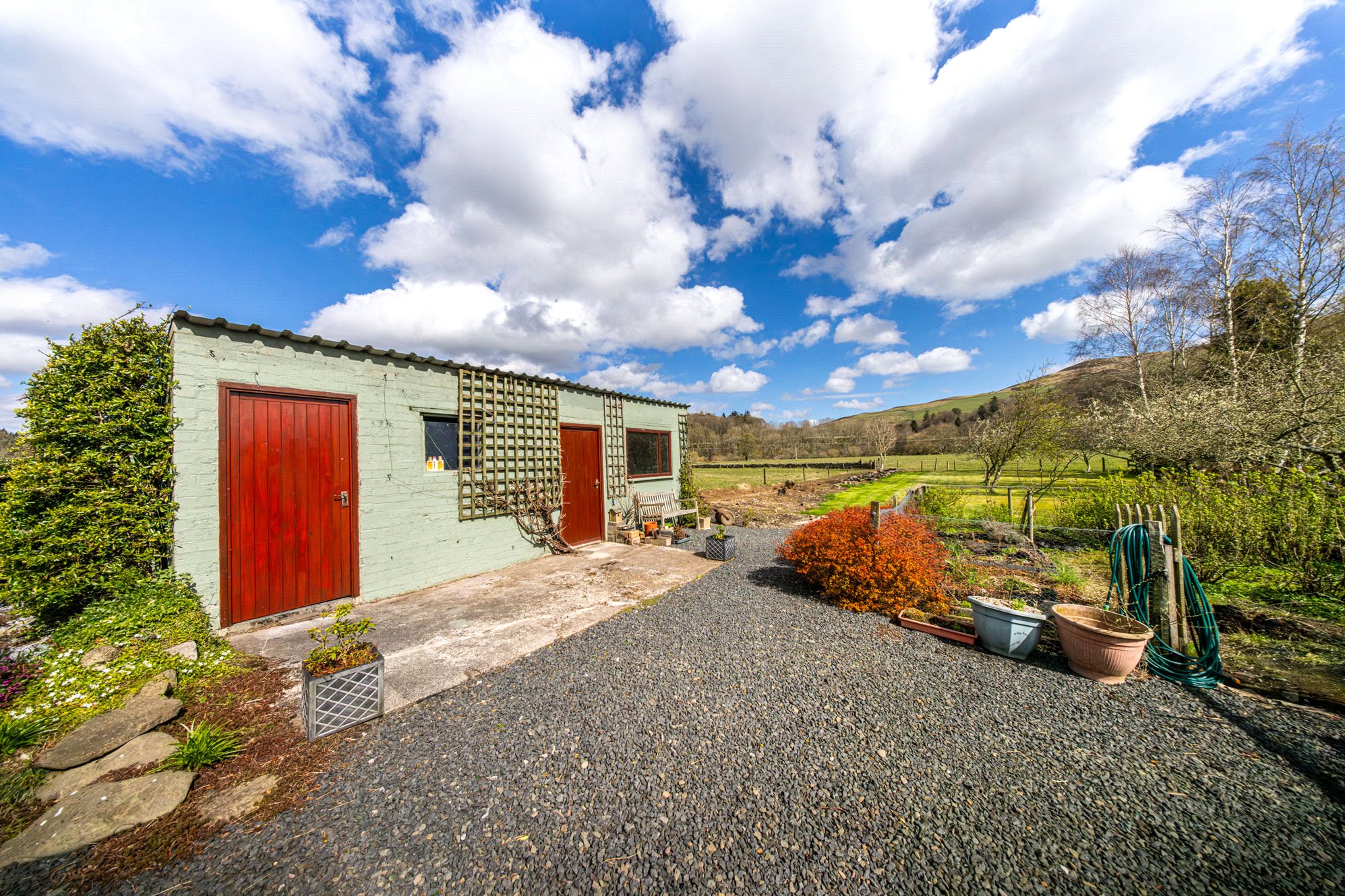 The property is accessed from the B710 by means of a drove road track which is well maintained, coming over the brow of the hill you are struck by the surrounding green space and fine views of the Bowland Valley – the unique position of the property allows complete privacy whilst being quickly and easily connected to nearby Galashiels with its array of local amenities, schooling and shops. There are train stations at both Stow & Galashiels offering a twice hourly service to Edinburgh Waverley Station.