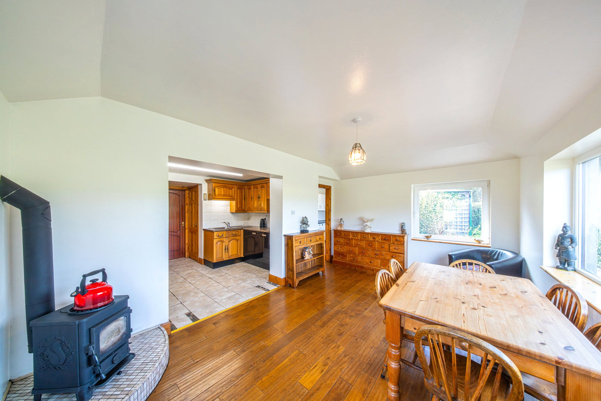 Externally the property benefits from a large driveway, general outbuilding with power, potting shed and store. The wraparound gardens are laid to mostly lawn – there is an additional paddock extending to circa 2.87 HA.