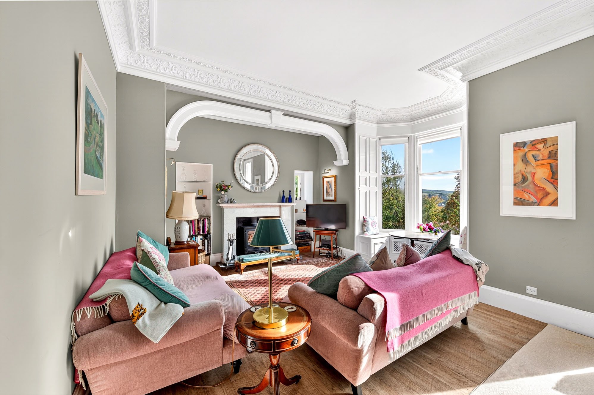 An attractive semi-detached mansion house set in an elevated position on the desirable Sunnyhill Road just off the centre of Hawick. This wonderful period property offers four/five bedrooms, flexible accomodation over three floors and a gorgeous, landscaped garden. The property has been a much-loved family home and has been sensitively restored and conserved by the current owners melding modern fixtures and fittings alongside classical period features and proportions.