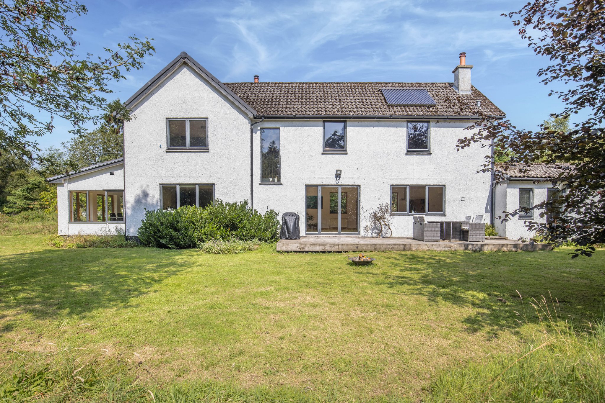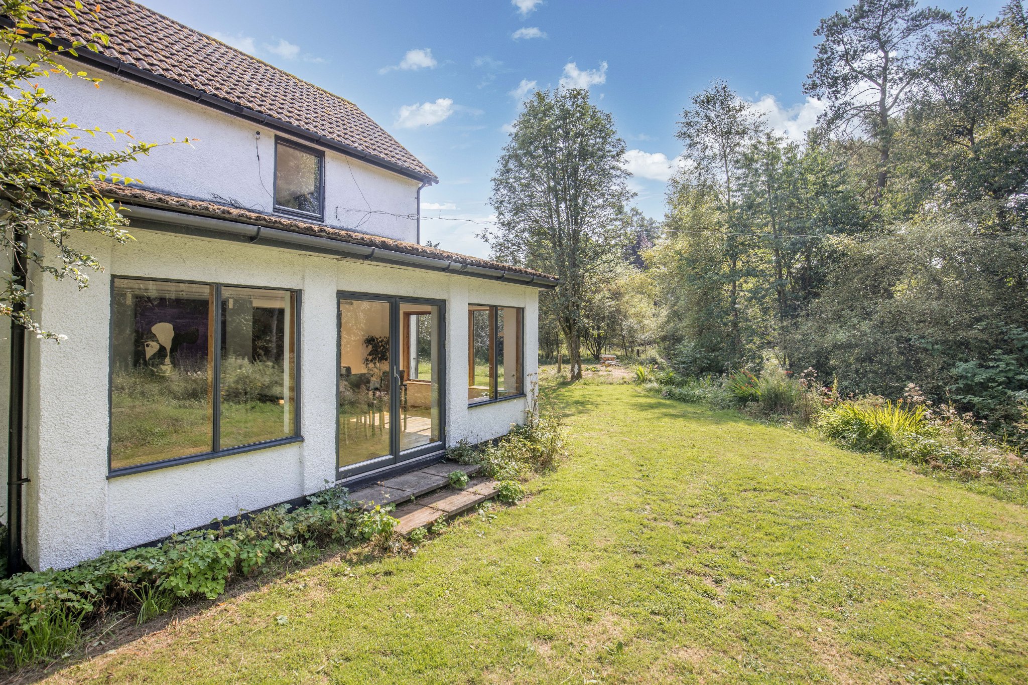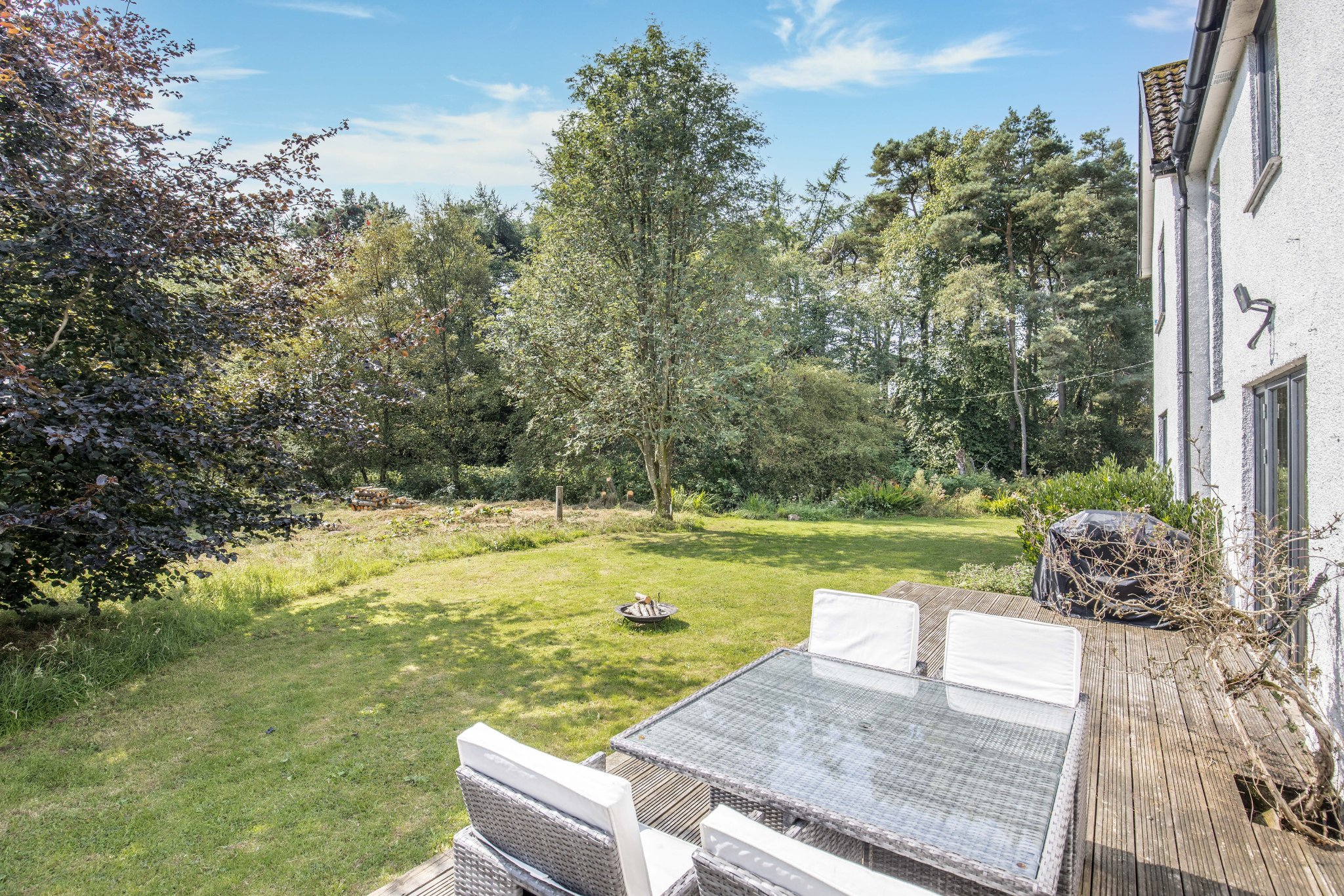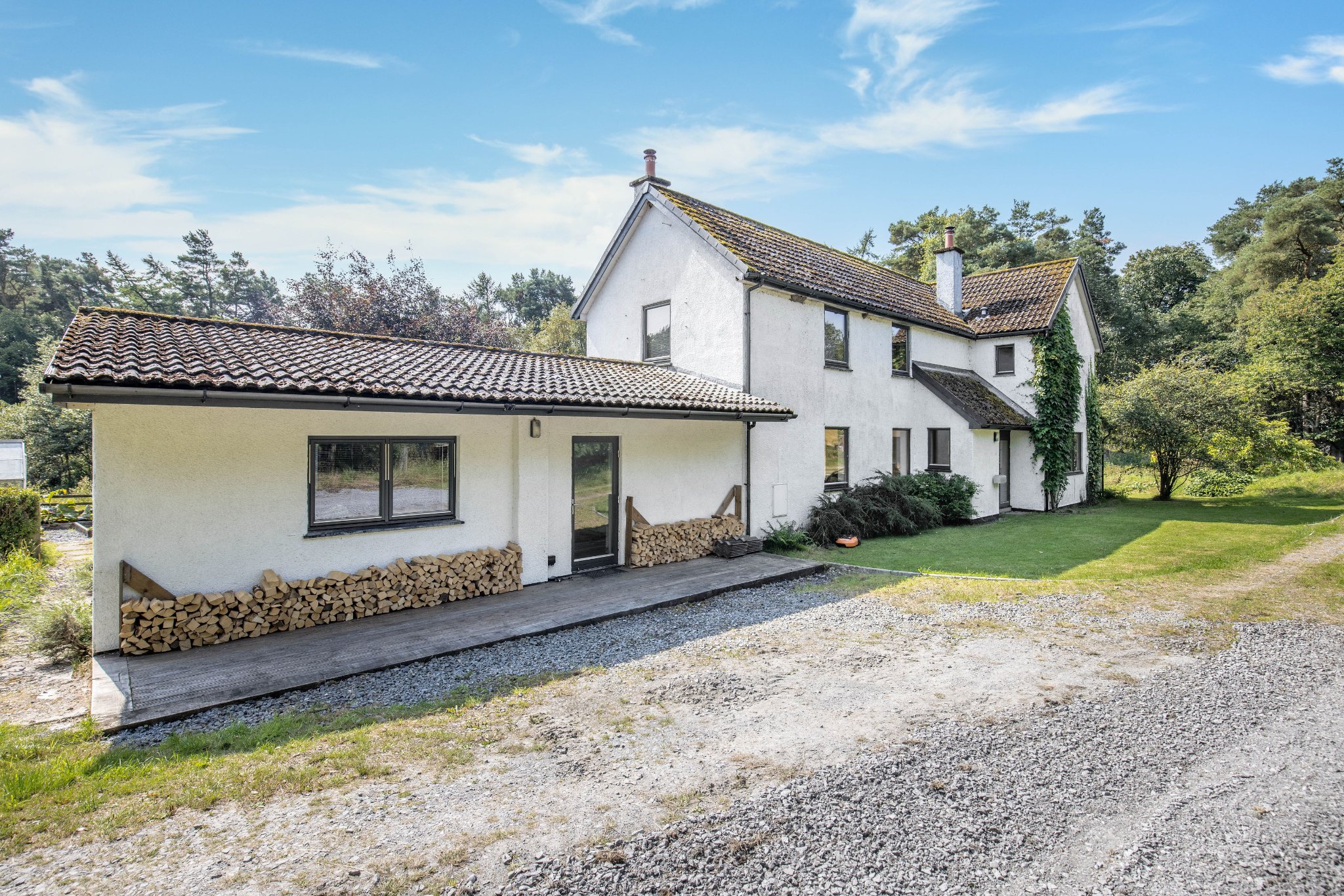 Langstrath is an idyllic four bedroom detached home sitting within the peaceful rural hamlet of Cowieslinn comprising only 6 properties. Nestled within a generous plot, this stunning property is presented to the market in fantastic condition having been upgraded by the current owners to present a bright and flexible family home with wonderful woodland views.