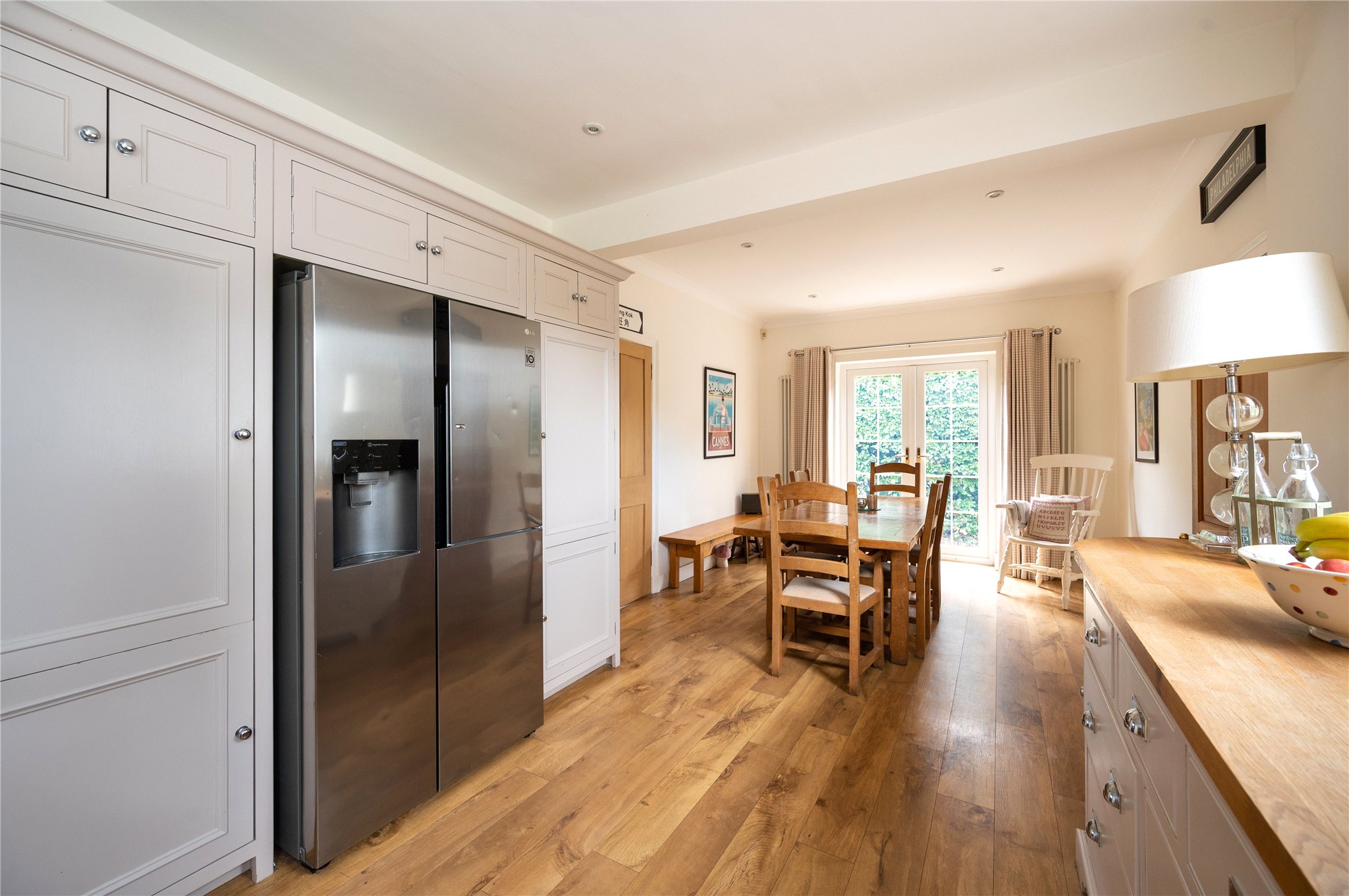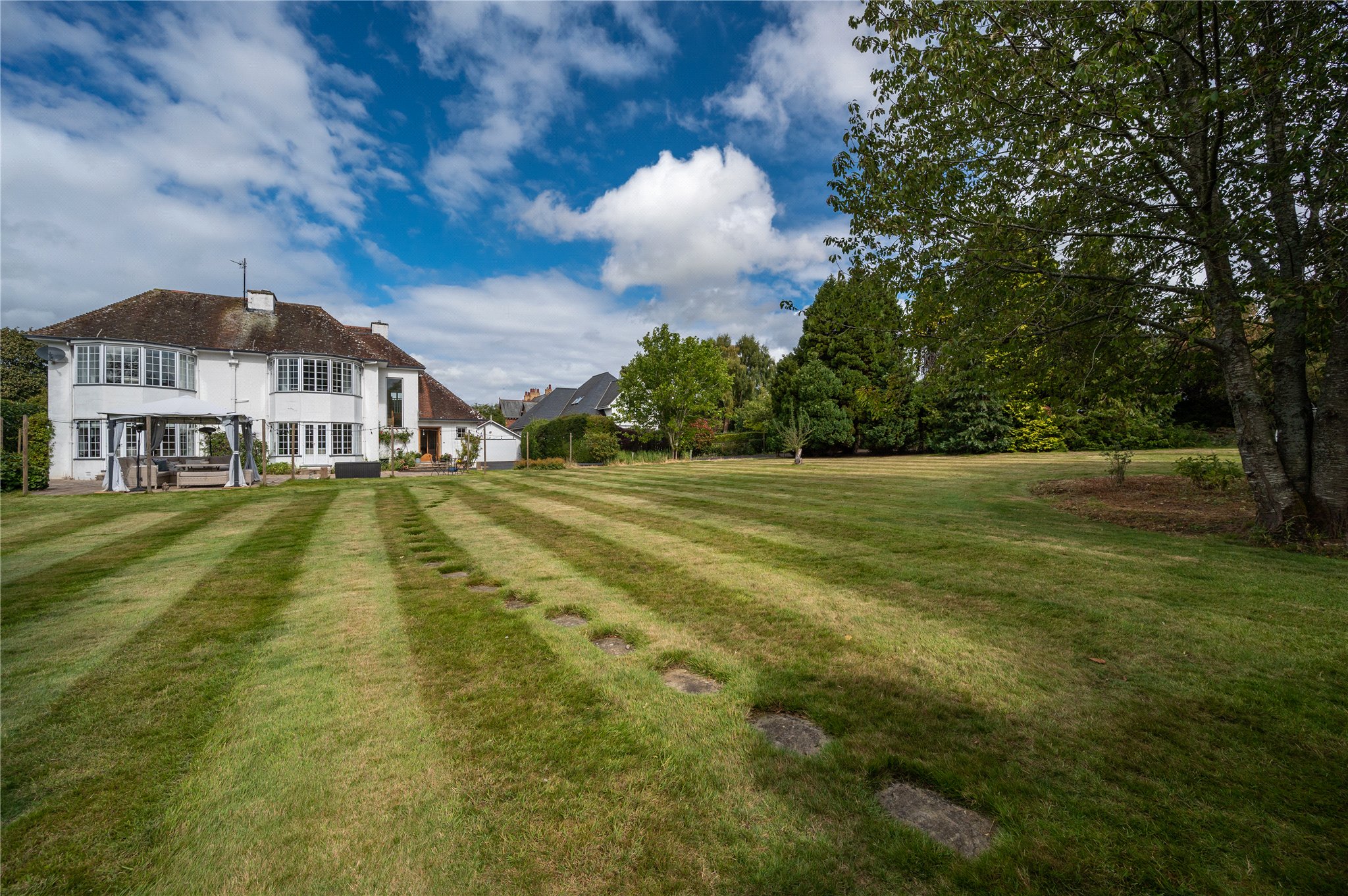 A turned wooden staircase leads to the first floor where there are four generous double bedrooms each with ample space for bedroom furniture and views over the gardens. A large linen cupboard provided capacious storage and hatch to the loft which has been cleverly converted into a games-room – subject to consent this could be excavated further to provide additional bedroom accommodation.