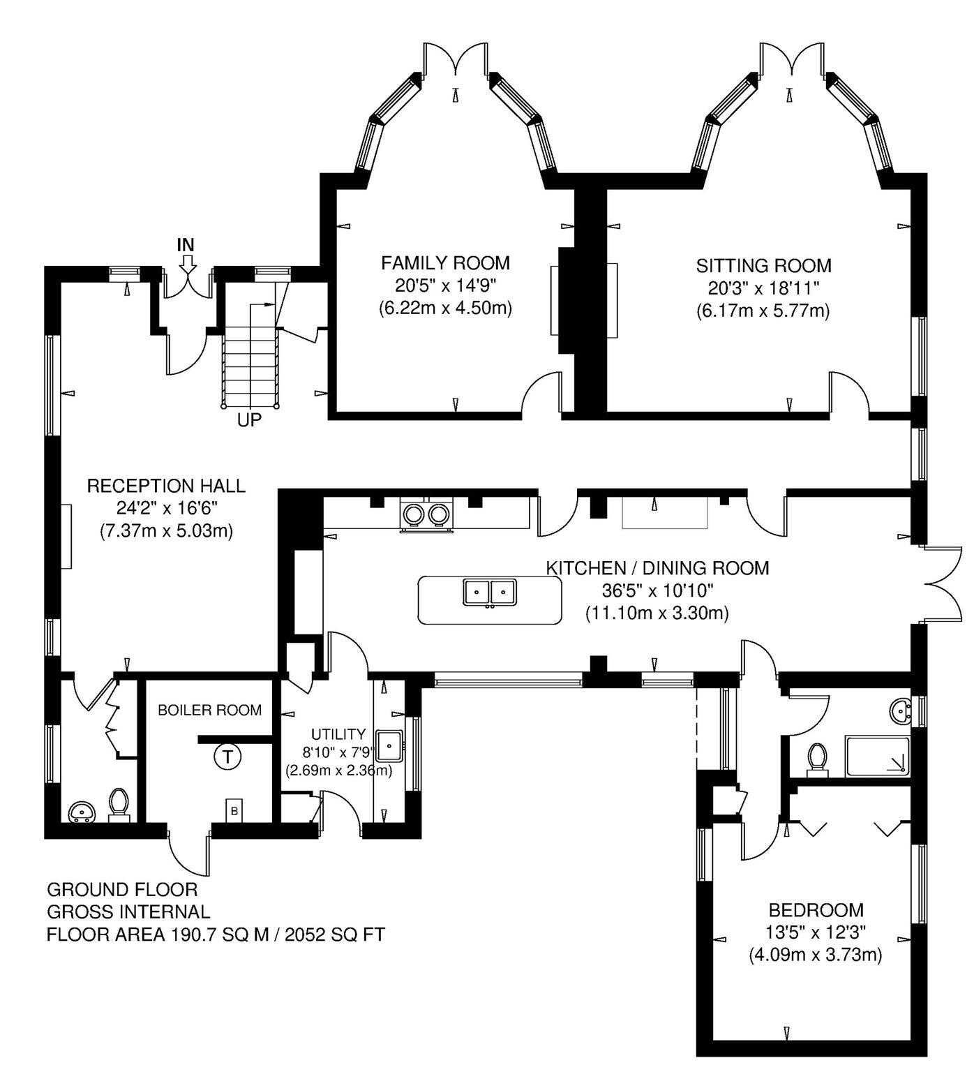 Reception Hall, Sitting Room, Dining Kitchen, Family Room, Bedroom 5, Bathroom, Utility Room, WC.