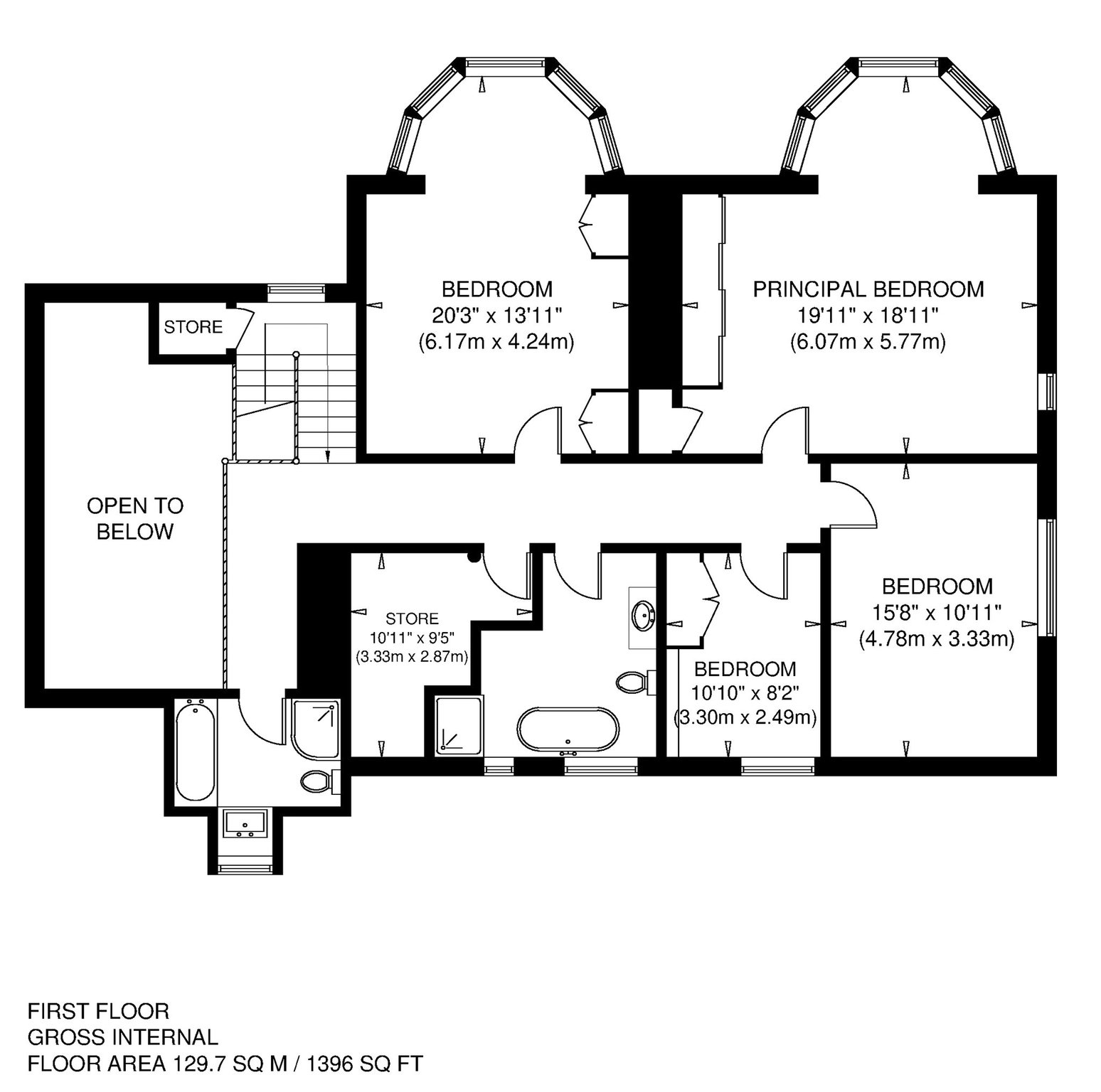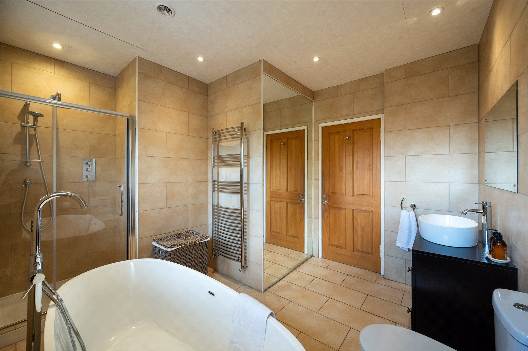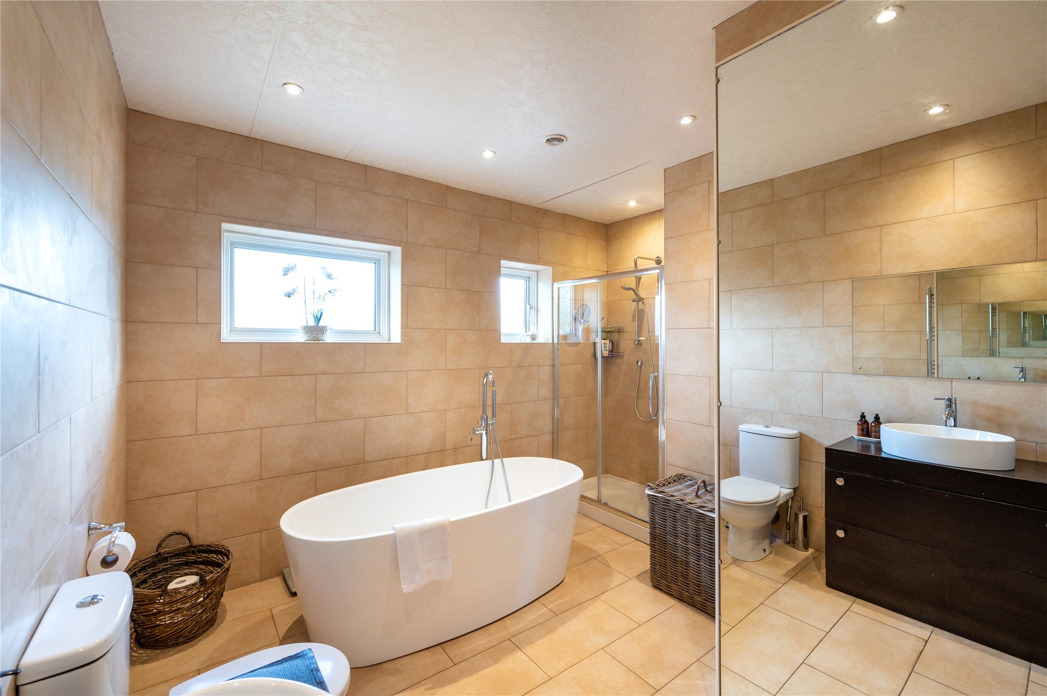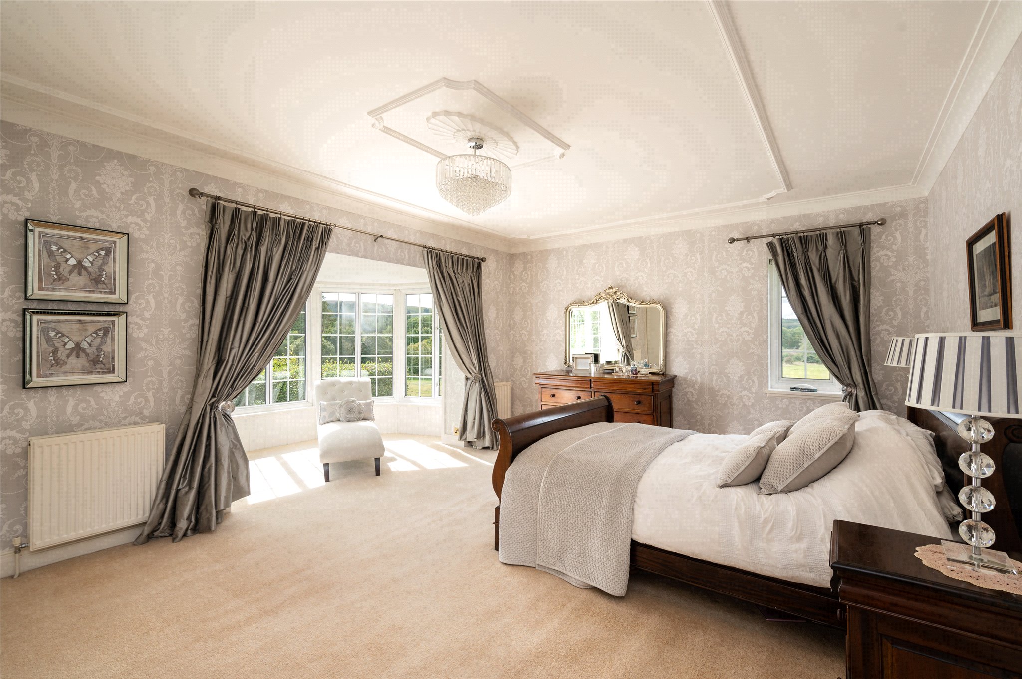 Principal bedroom, Three further double bedrooms, two generous bathrooms, linen cupboard with loft access to games-room.