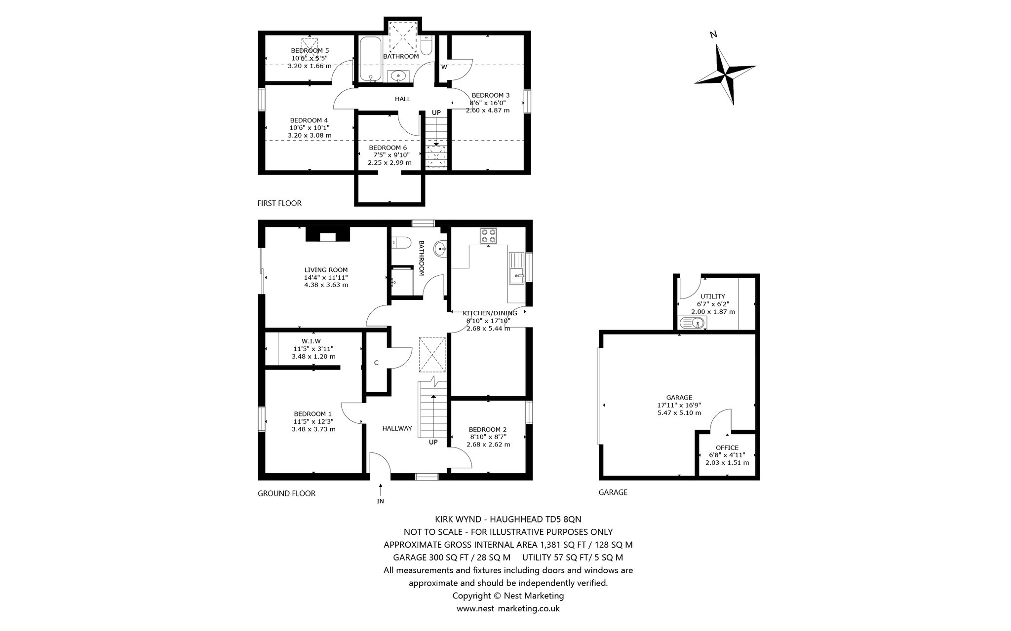Ground Floor - Hallway, principal bedroom with walk-in wardrobe, dining kitchen, sitting room, bathroom, bedroom 5.