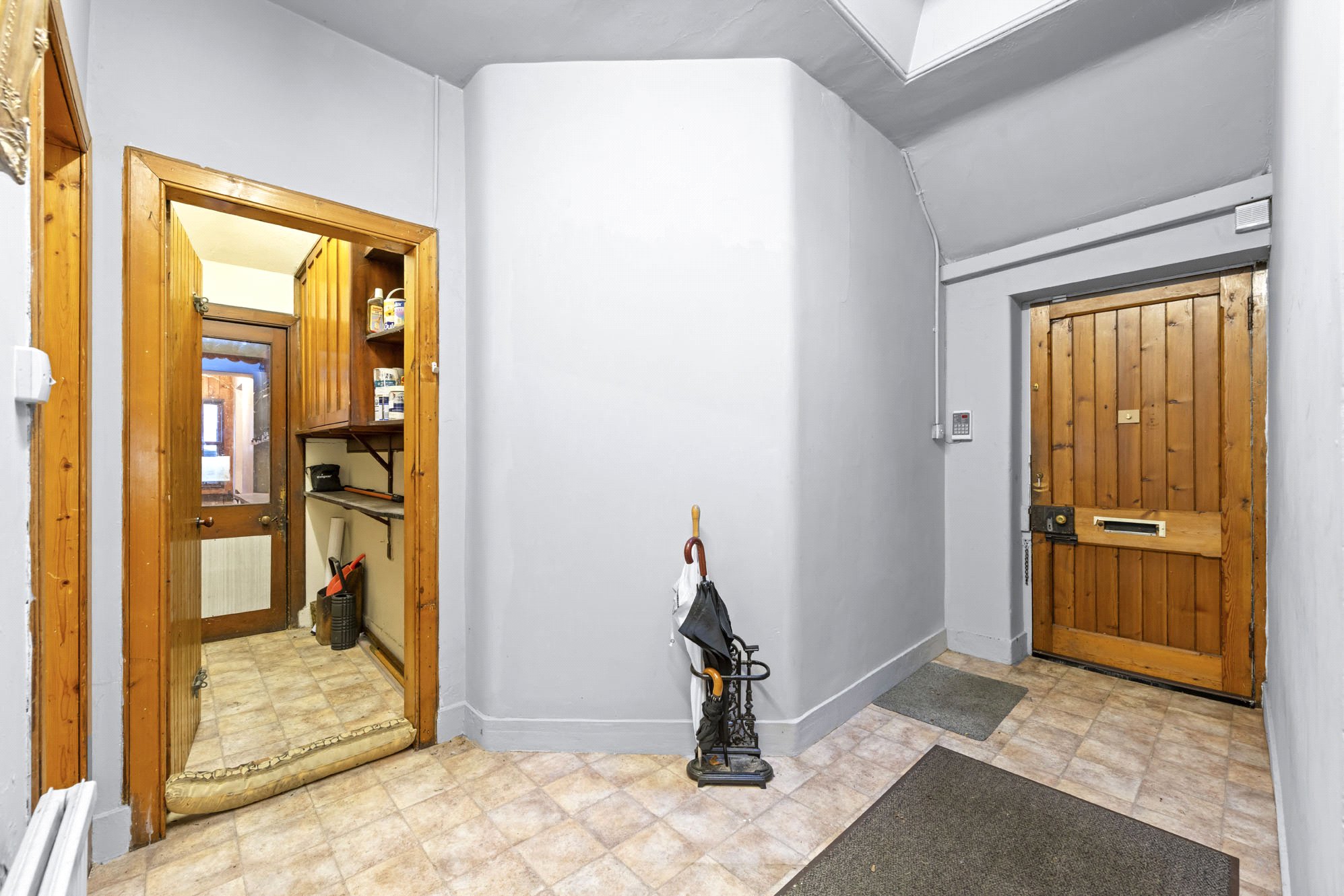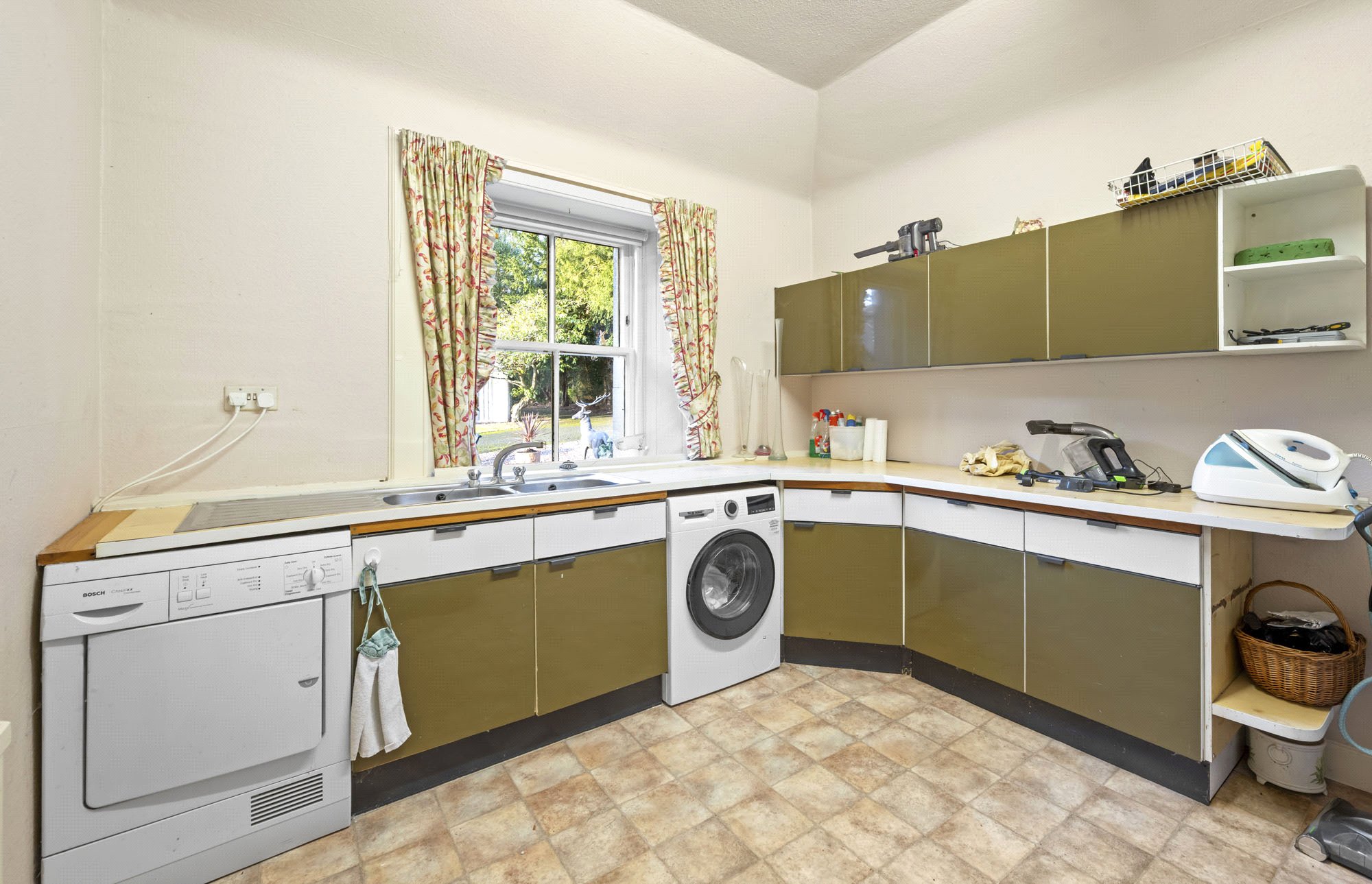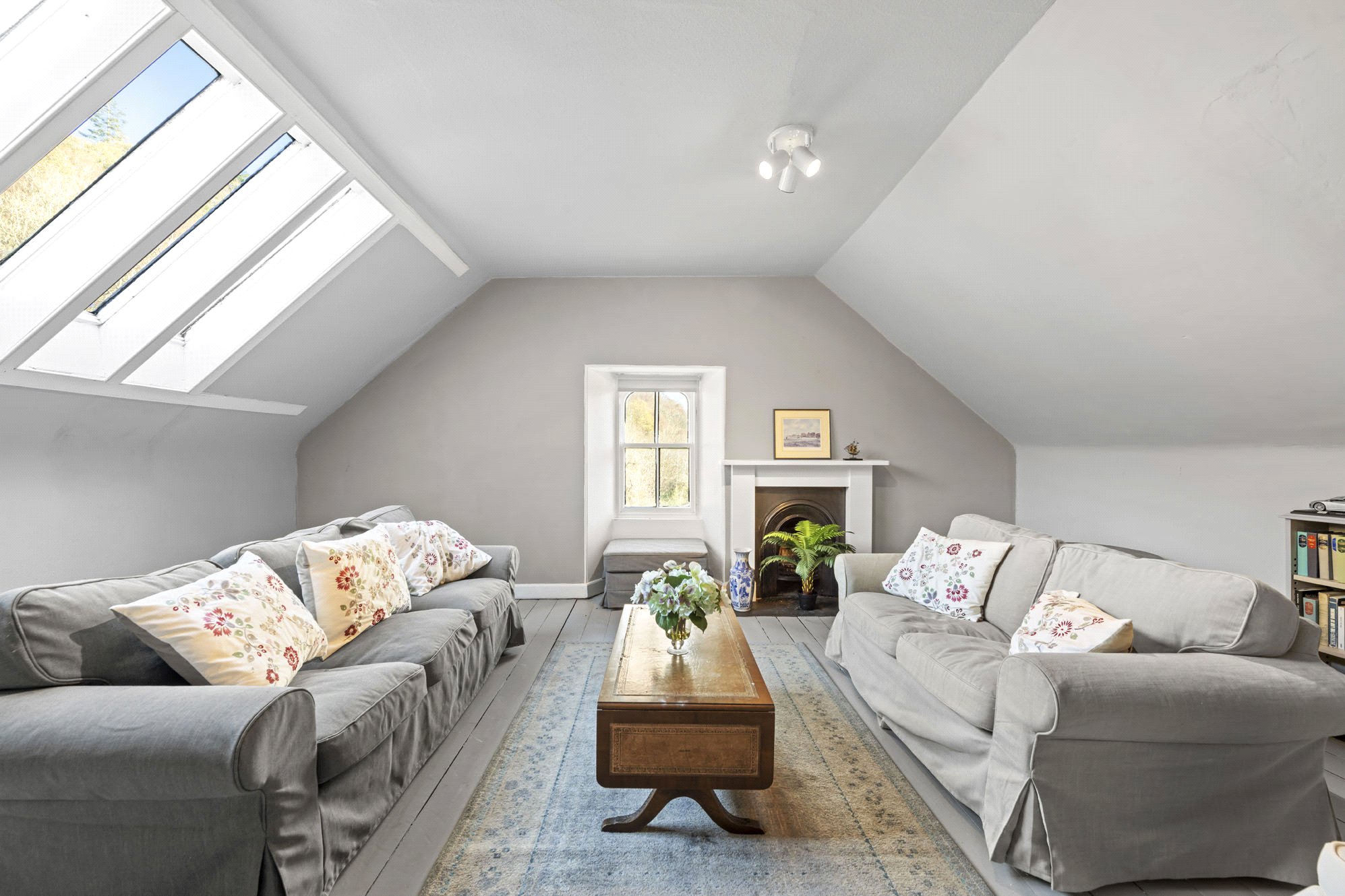 The main house boasts six large bedrooms over three principal floors. Entered from a large vestibule into a wide entrance hall there are three spacious reception rooms each with garden views, a generous dining kitchen with conservatory and a guest WC. The house offers flexible family living with classical proportions, high ceilings, ornate cornicing and two open fireplaces. Completing the ground floor are a number of ancillary rooms providing capacious storage, garaging and a laundry room.