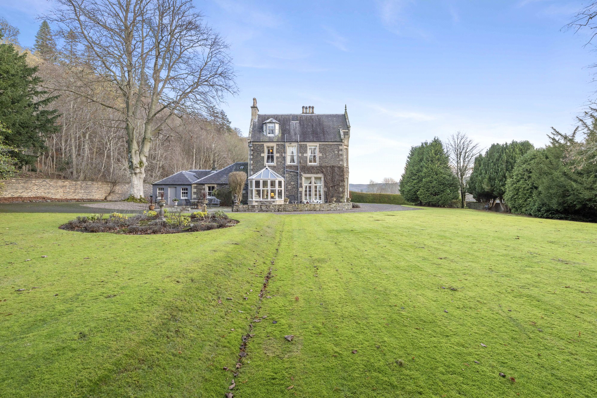 A striking late Victorian mansion house, set within just over 2.5 acres and complemented by its own gate lodge – Nether Soonhope House is a trophy house of Peebles with outstanding views of the Tweed Valley hills set within an excellent location just a short-walk from the bustling centre of this much sought-after Border town.