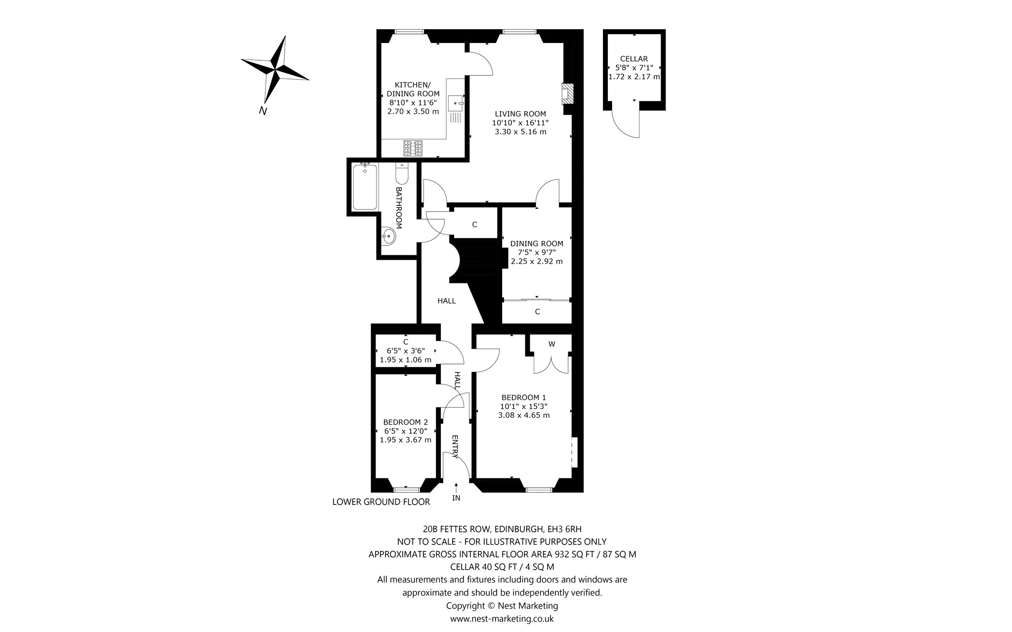 An immaculate lower ground, main door apartment in the heart of Edinburgh’s New Town, a UNESCO World Heritage Site. The flat has been beautifully designed by the current owner, providing a fabulous space. Entered via a stylish vestibule, the flat comprises a sitting room with stone wall features, a very bright Neptune kitchen with space for dining, a separate dining room, as well as a principle double bedroom, further double bedroom, large bathroom and ample cupboards. The property also benefits from a lined cellar.