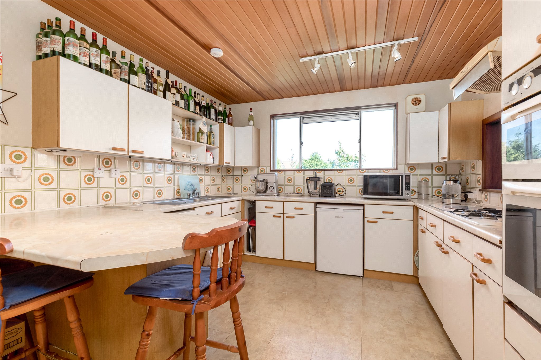 Built in 1979 and later extended in 1998 to create additional upper-level accommodation, the property extends to approximately 2,400 sq ft and is arranged over two levels. It now requires updating throughout but offers flexible family living in a quiet yet exceptionally well-connected location.