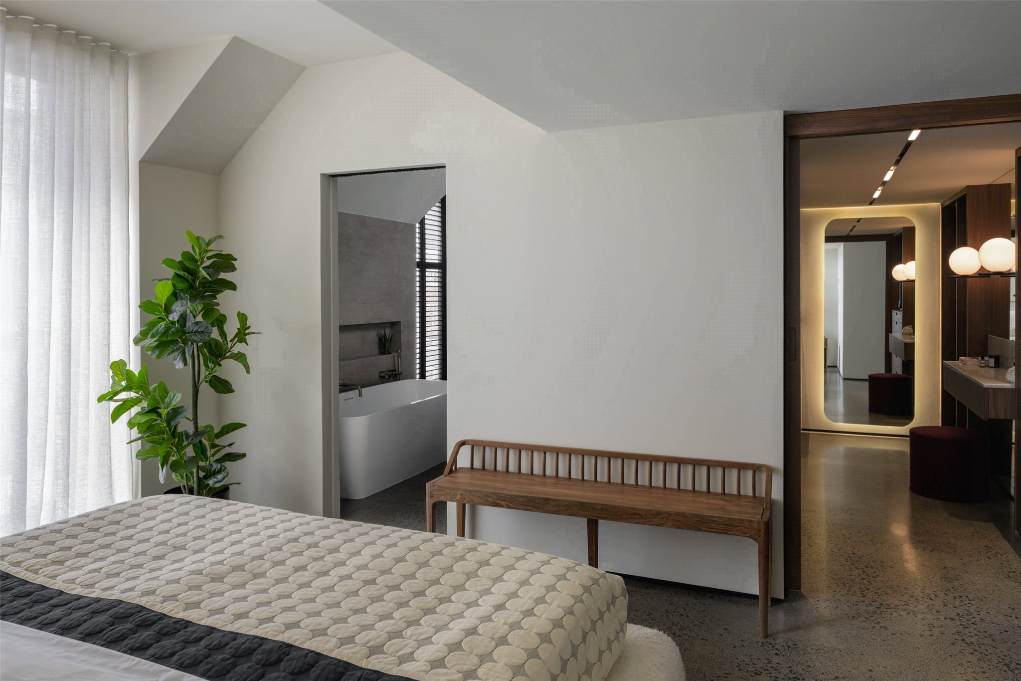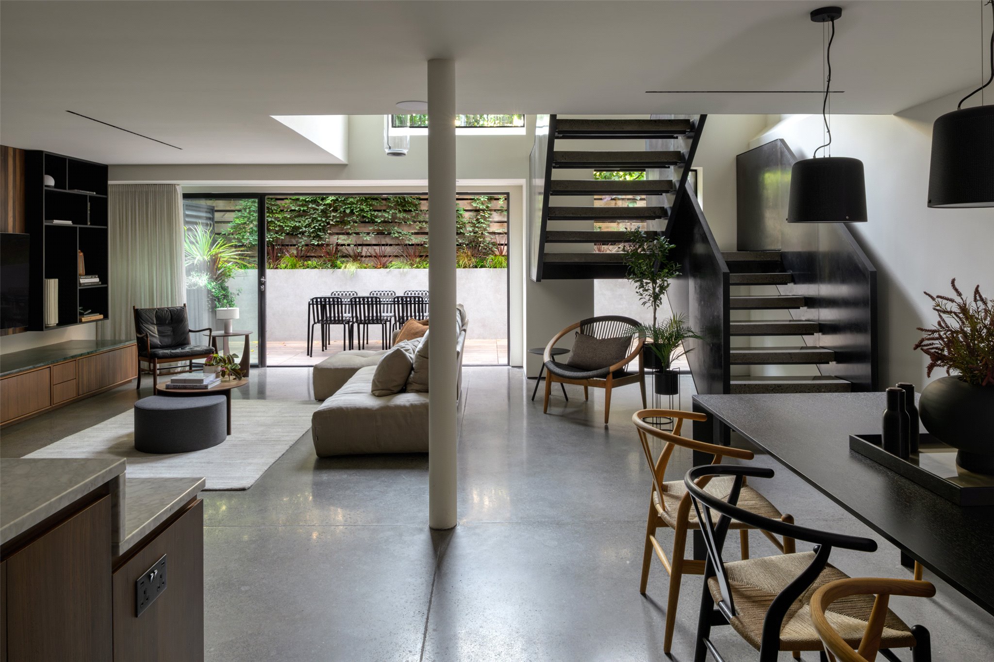 From the sculptural blackened steel and polished-concrete staircase rising through a full-height atrium, to the seamless integration of walnut joinery and cutting-edge home automation, every detail has been meticulously considered. The result is a turnkey residence of international quality, perfectly attuned to modern living.