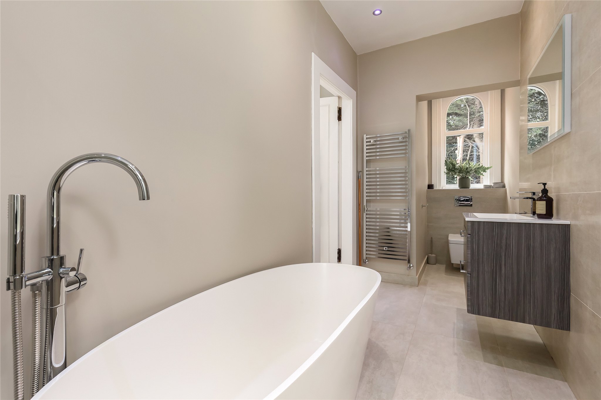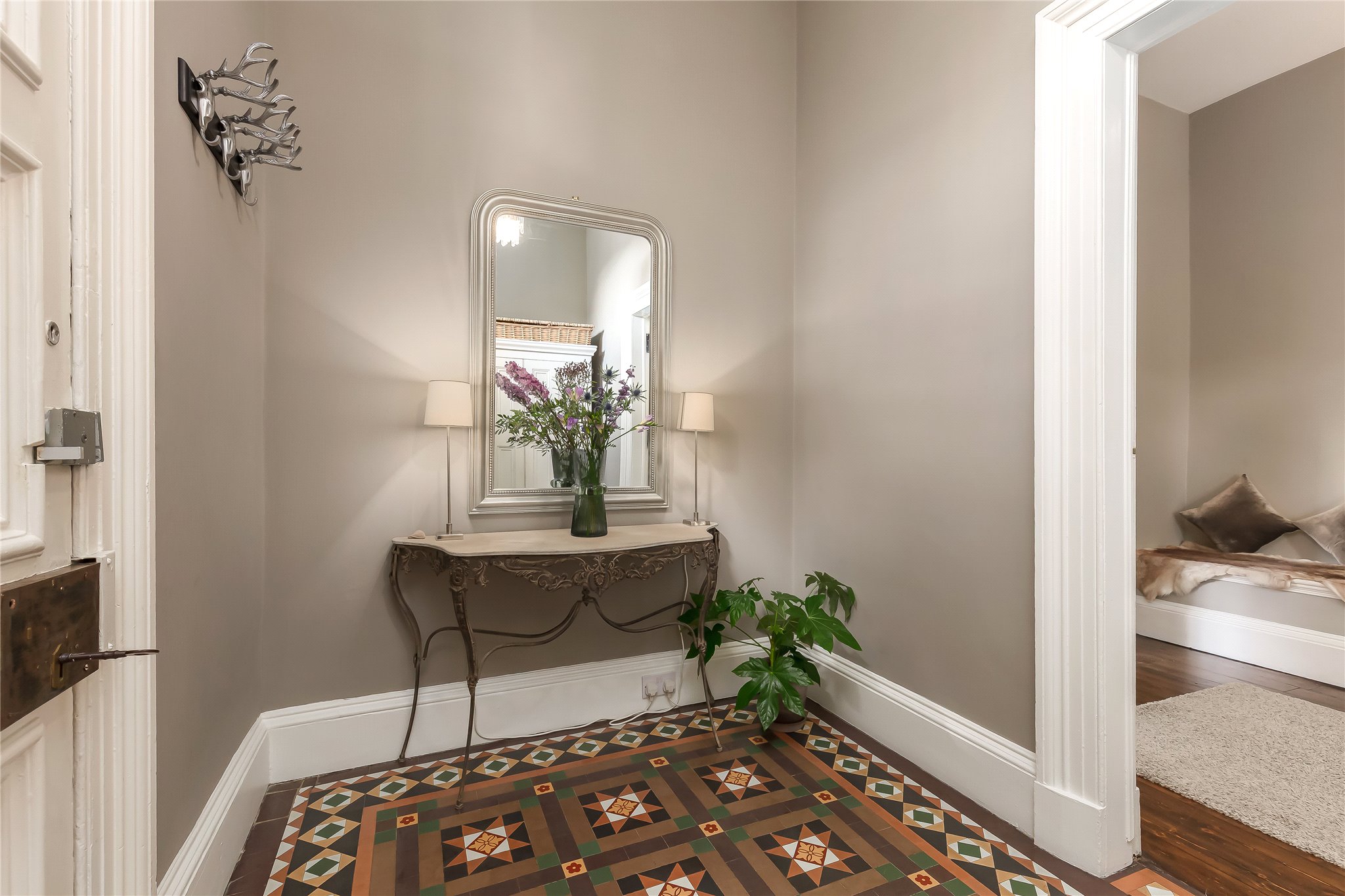 Having been meticulously renovated by the current owners, the property is presented in immaculate condition throughout and enjoys a particularly impressive layout. On the ground floor, the welcoming vestibule and hall lead to a beautifully proportioned sitting room with feature fireplace, a spacious principal bedroom complete with stylish ensuite bathroom, and a further double bedroom.