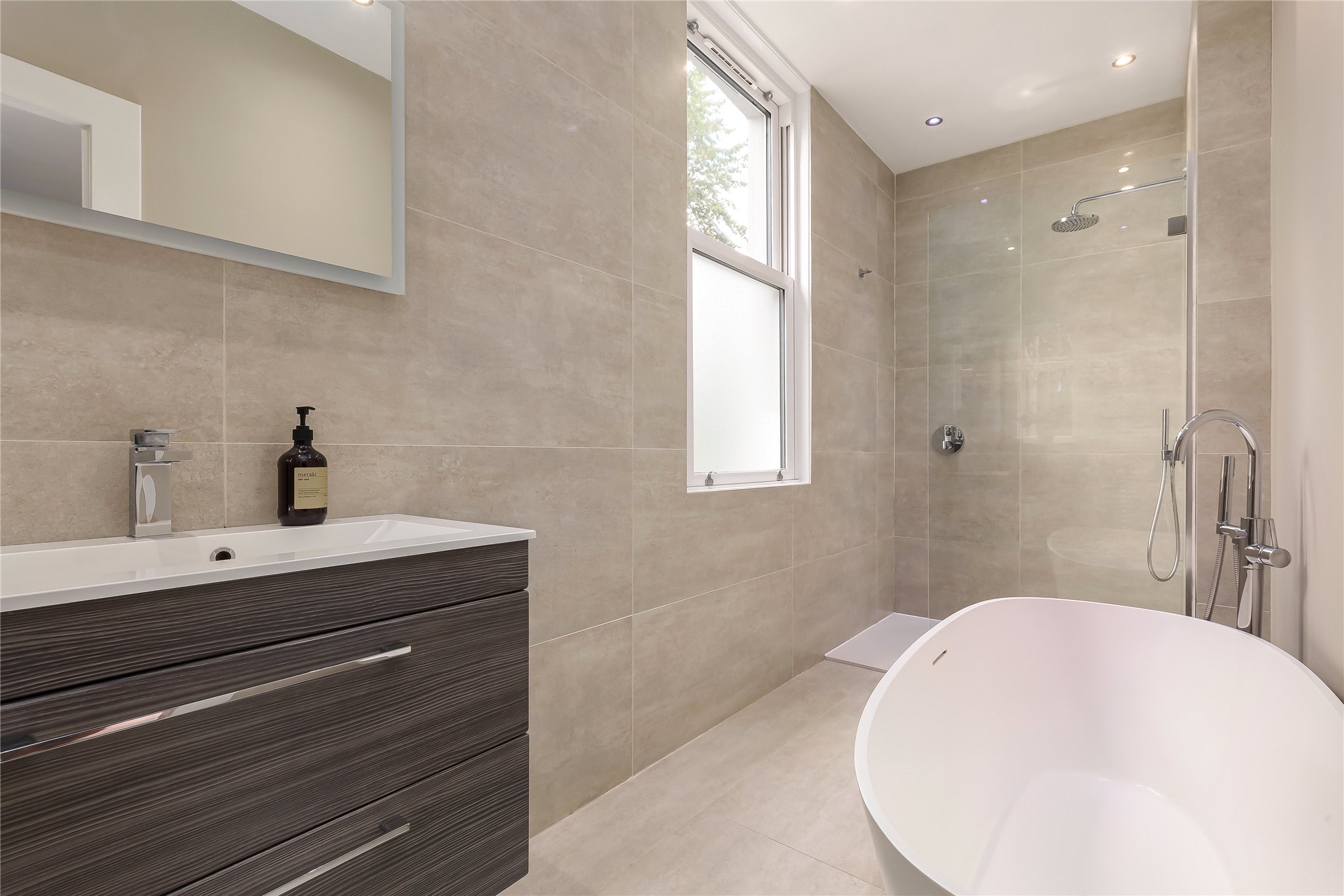 The lower ground floor offers further superb living space, including a magnificent dining kitchen with breakfast bar and direct access to the garden, a versatile bedroom 4 / office, and an excellent bedroom 3 with two walk-in wardrobes. A modern shower room completes the accommodation.