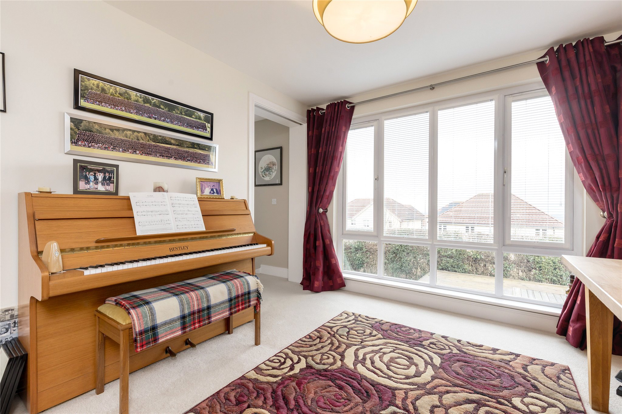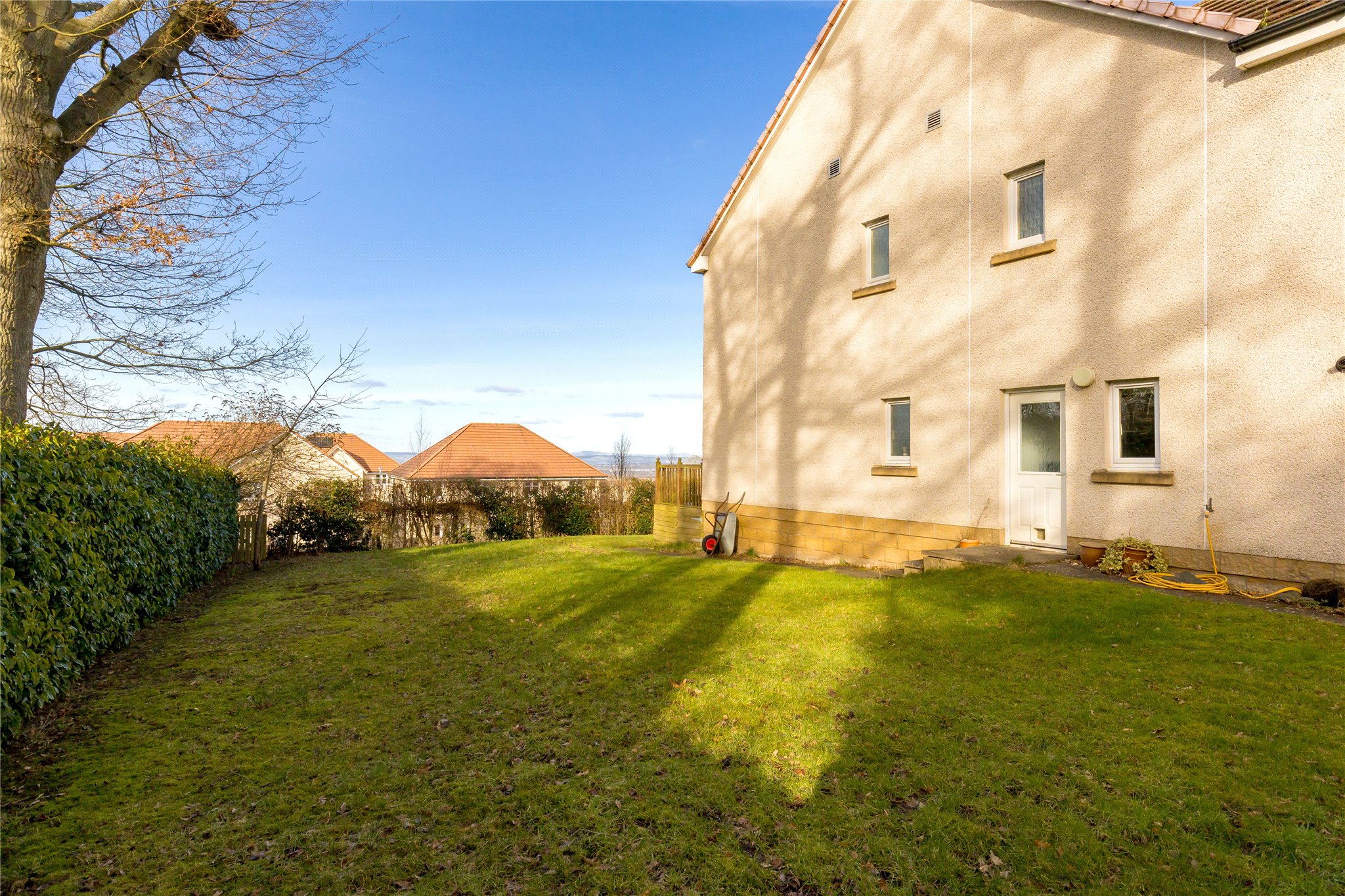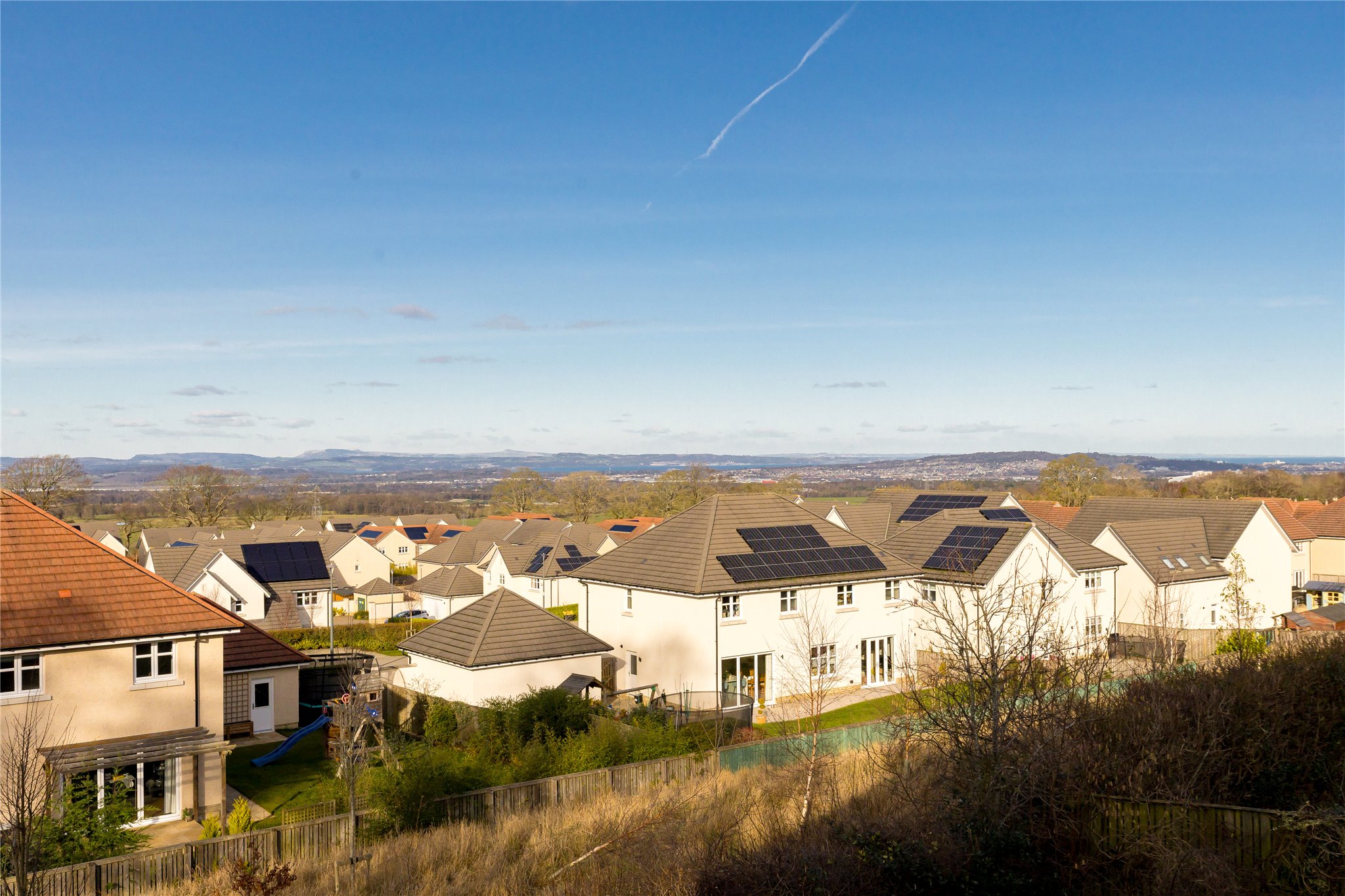 An exceptional five-bedroom house located in a small quiet cul-de-sac in the sought-after leafy suburb of Balerno which is situated to the Southwest of Edinburgh City Centre. The accommodation is beautifully presented and offers spectacular views to the Forth Bridges and Fife, the Pentland Hills and to Edinburgh Castle from the rear deck.