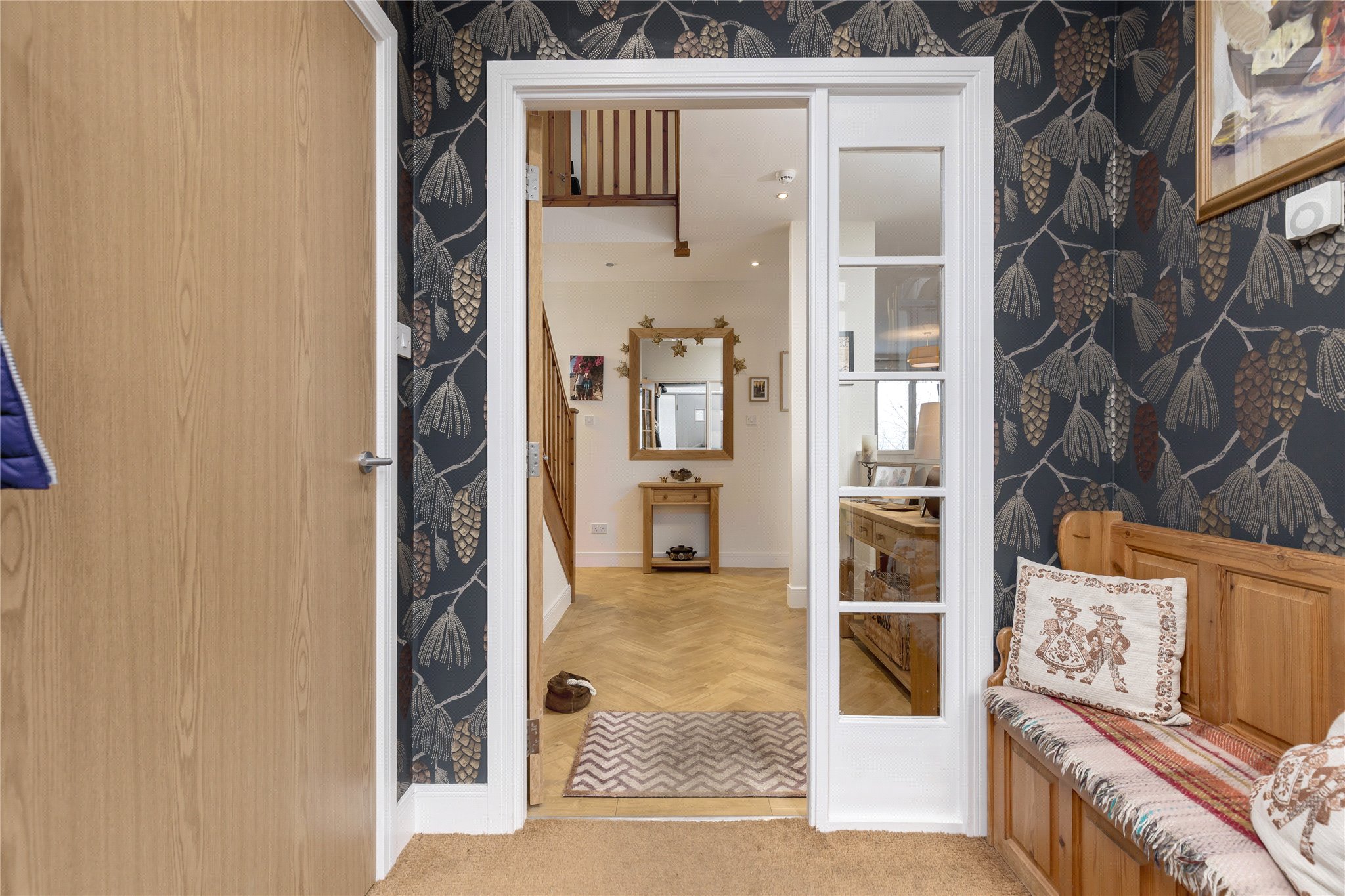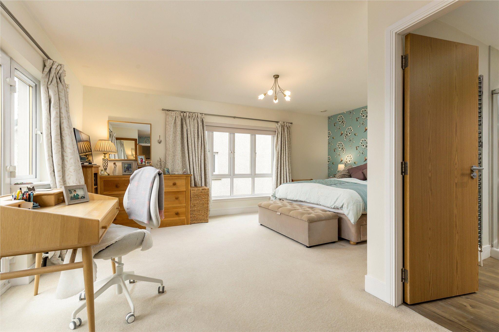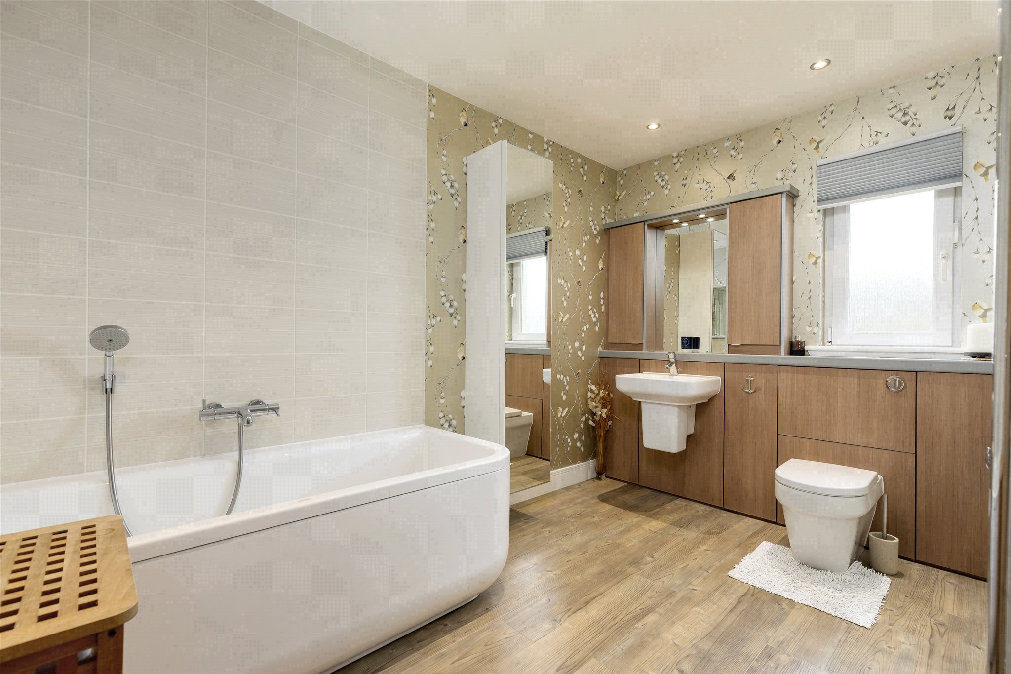 An exceptional five-bedroom house located in a small quiet cul-de-sac in the sought-after leafy suburb of Balerno which is situated to the Southwest of Edinburgh City Centre. The accommodation is beautifully presented and offers spectacular views to the Forth Bridges and Fife, the Pentland Hills and to Edinburgh Castle from the rear deck.