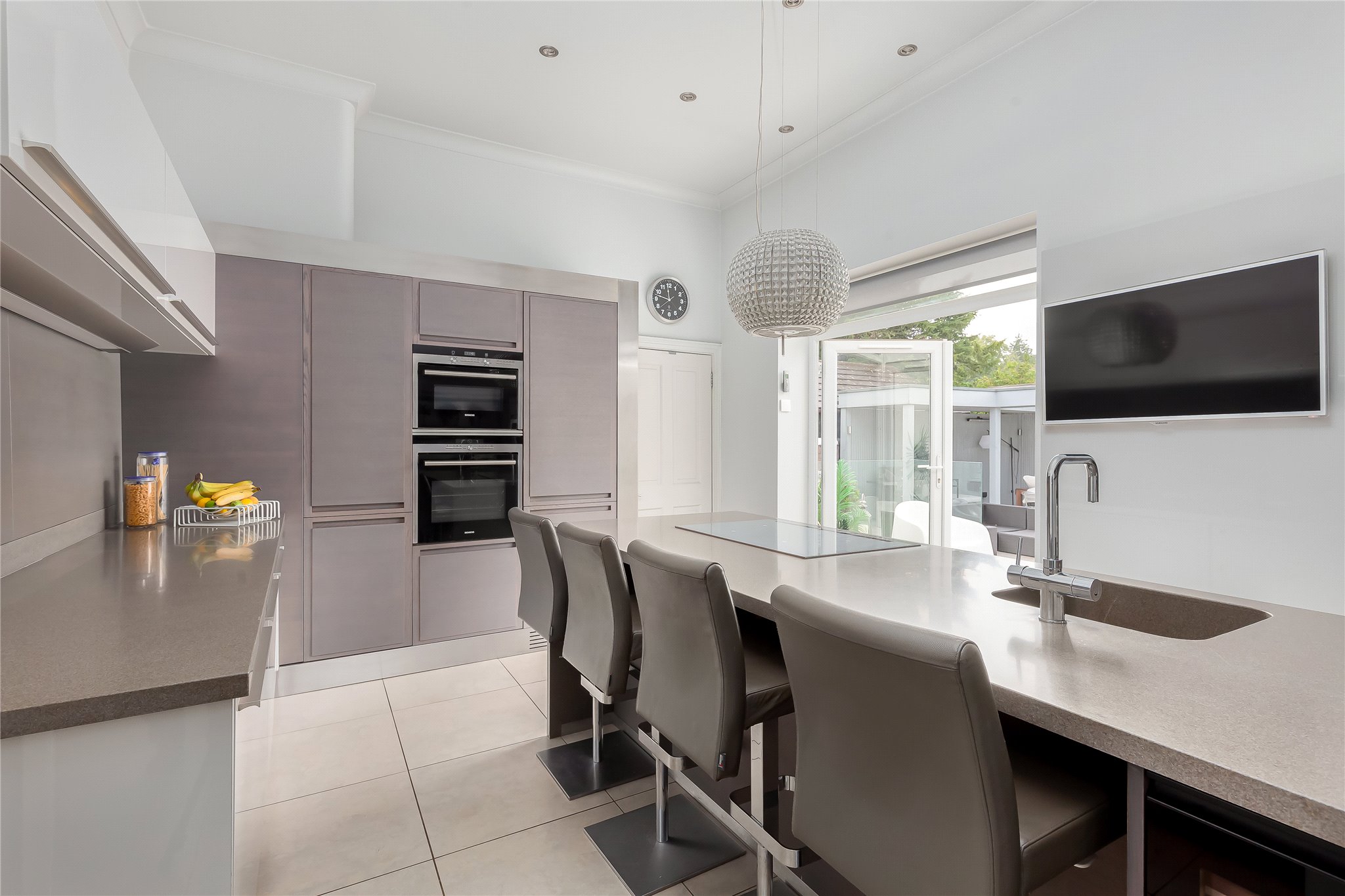 including Microwave, Induction Hob, Dishwasher, Full Heigh Fridge, Coffee Machine, Wine Fridge & Pop Up Plug Sockets with Breakfast Bar & Direct Access to the Rear Garden through Patio Doors, Utility Room, Double Bedroom Two & En Suite Shower Room, Double Bedroom Three & Direct Access into Garden through Patio Doors, Double Bedroom Four, Study/Bedroom Five with Integrated Storage Cupboard, Shower Room, Under-Stair Storage