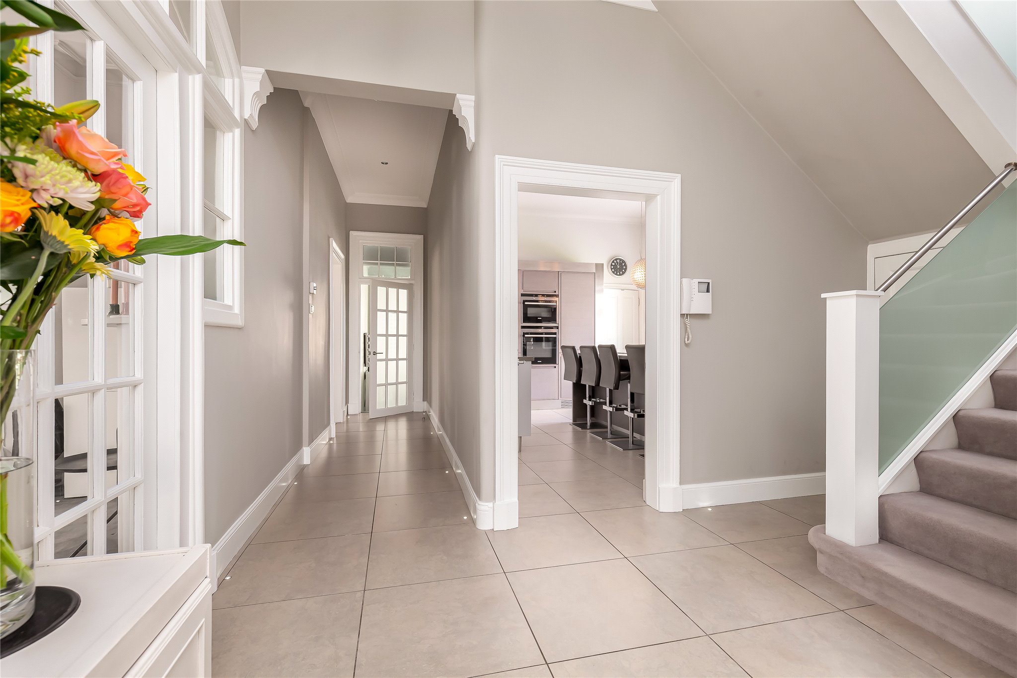 Entrance Vestibule & Hallway, Sitting Room with Woodburning Stove and Oak Herringbone Flooring, Dining Room, Fully Equipped Porcelanosa Kitchen benefitting from High Specification Integrated Siemens Appliances