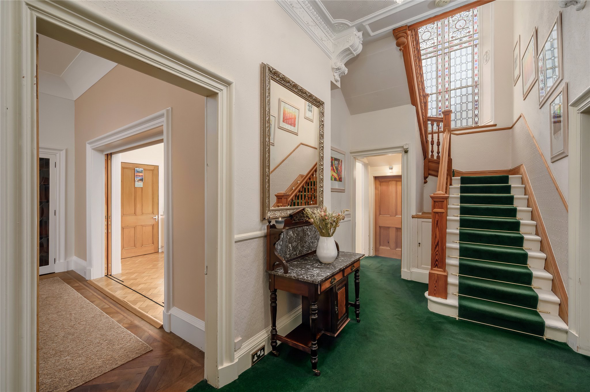 A handsome detached five-bedroom Victorian villa of 3,678 sq ft, set on a prominent corner plot within the Craigmillar Park Conservation Area. The property combines elegant period detail with modern family living, benefitting from a sunny private garden, garage, and off-street parking for three cars.