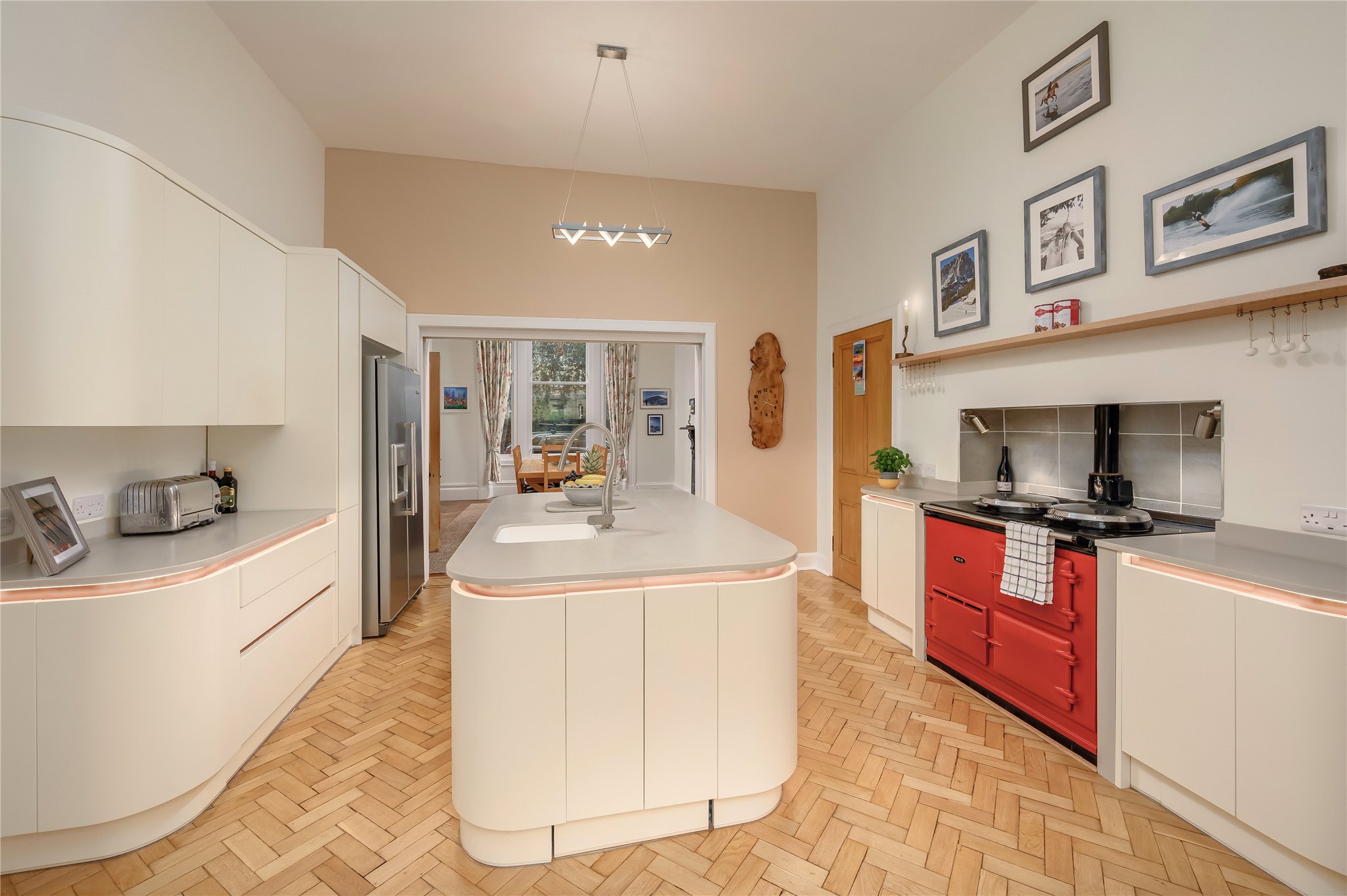- Impressive open-plan kitchen and dining space with pocket doors and gas AGA