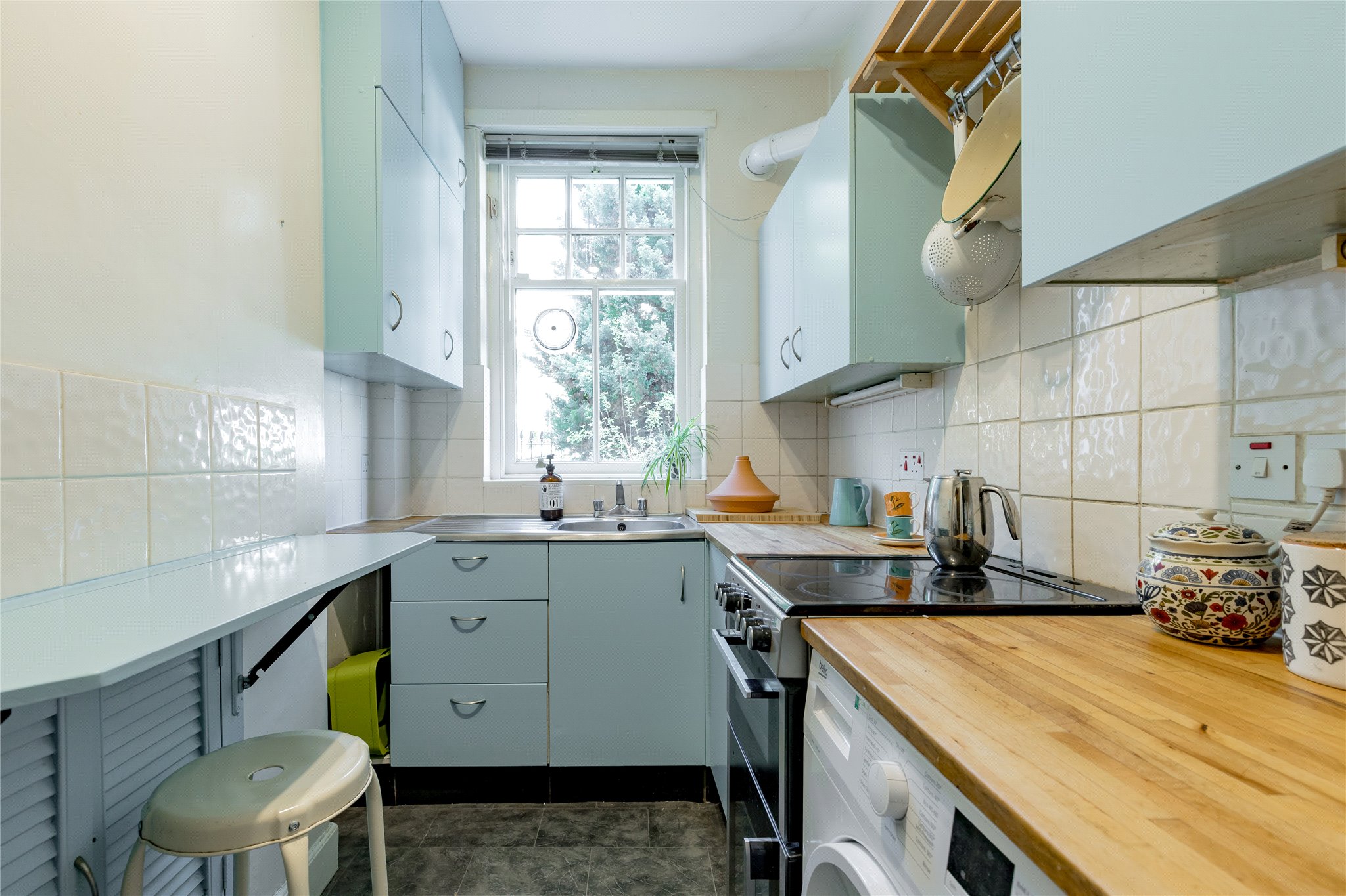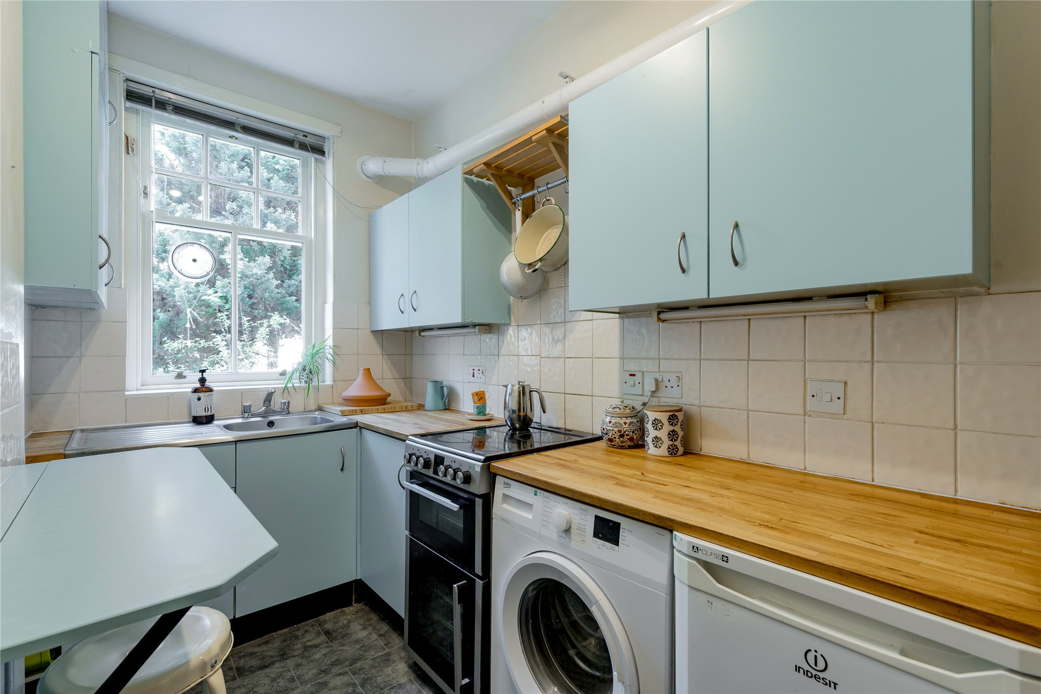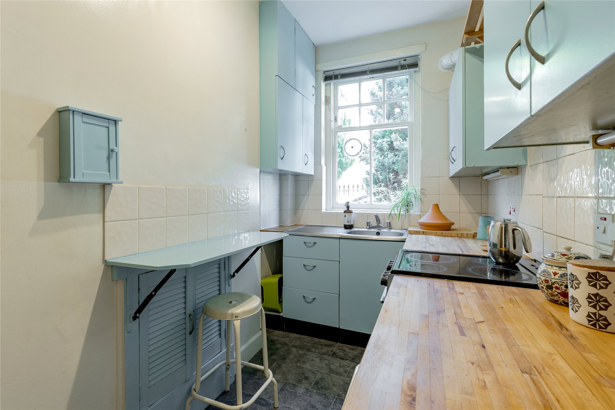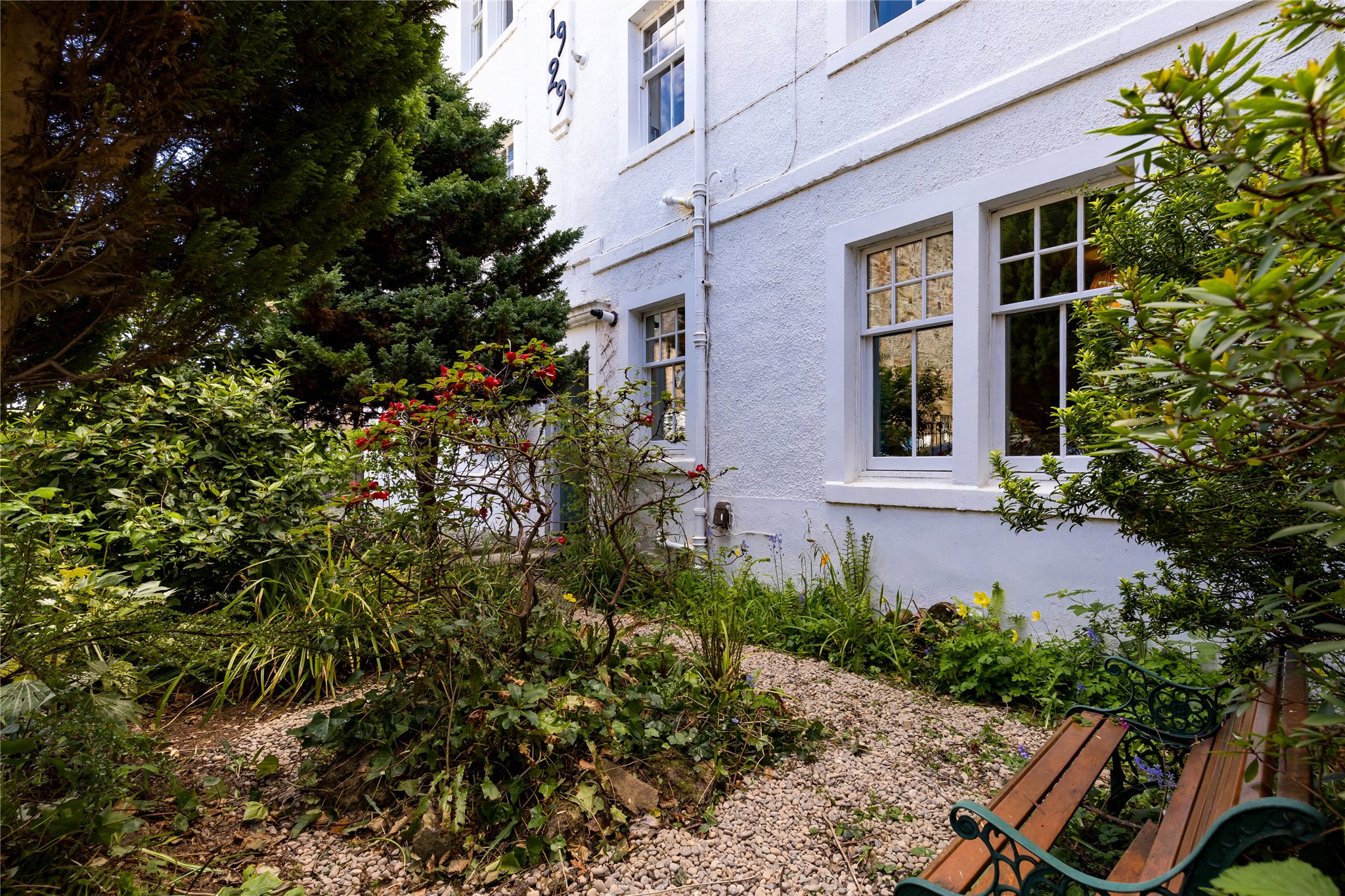 Internally, the flat comprises a spacious double bedroom with direct access to the private rear garden – a perfect retreat for morning coffee or quiet evenings outdoors. The bright and welcoming living/dining room enjoys a pleasant outlook over the private front garden, while the well-appointed kitchen and three-piece bathroom complete the accommodation. Excellent storage is available via a hall cupboard and a large private external storage room.