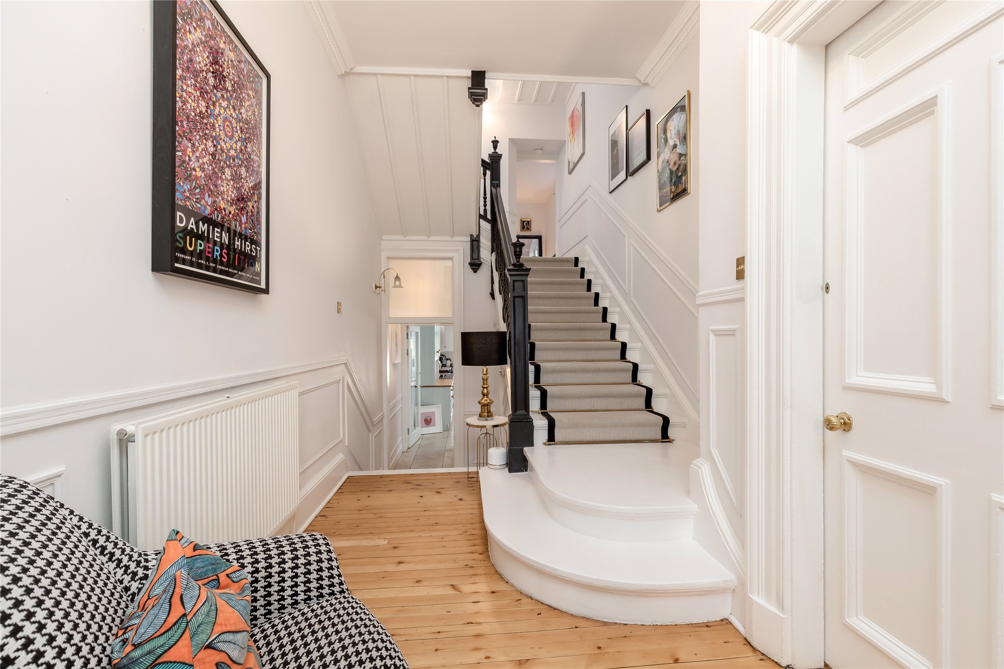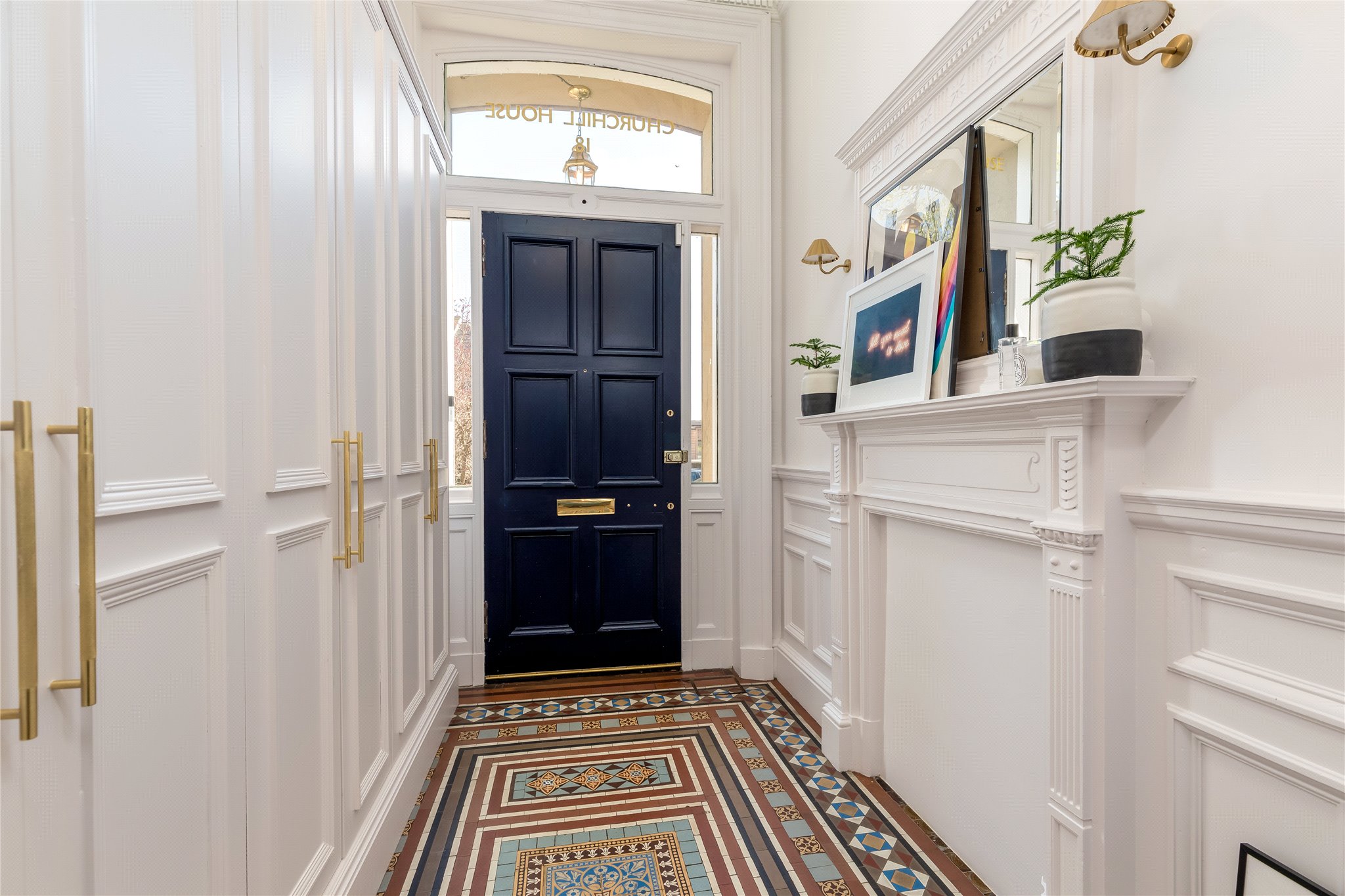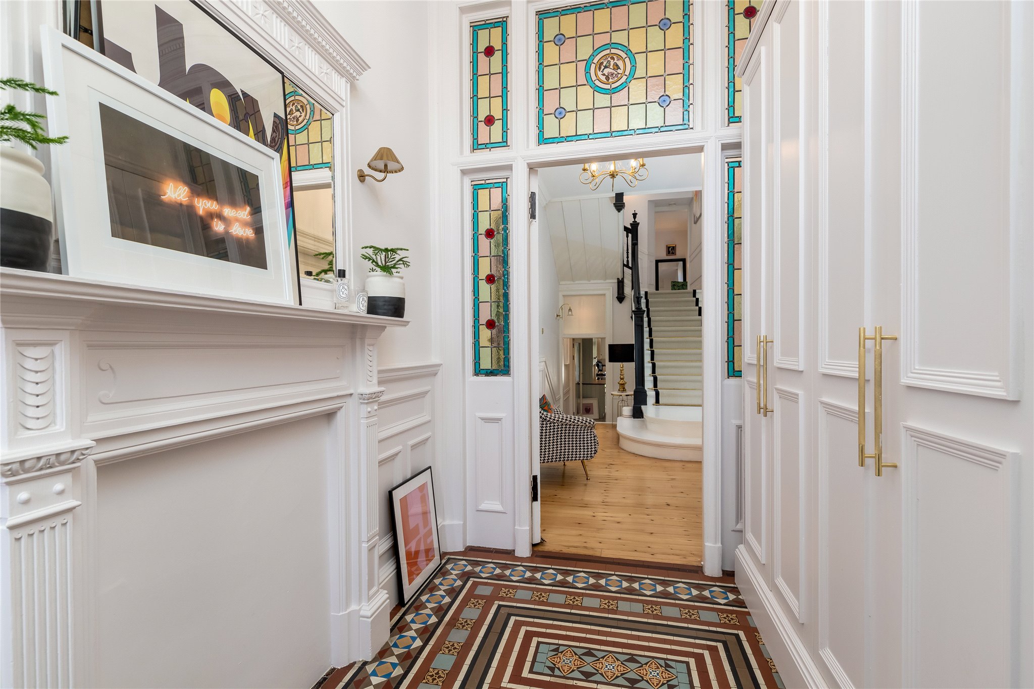 The principal bedroom is located on the first floor with lovely peaceful outlook to the rear garden, working gas fireplace, and access to a luxurious fully fitted dressing room and ensuite bathroom with custom made floor tiles, separate bath and shower, double wash hand basins and WC. Three further double bedrooms, stunning family bathroom and a home office/fifth bedroom completes the accommodation.