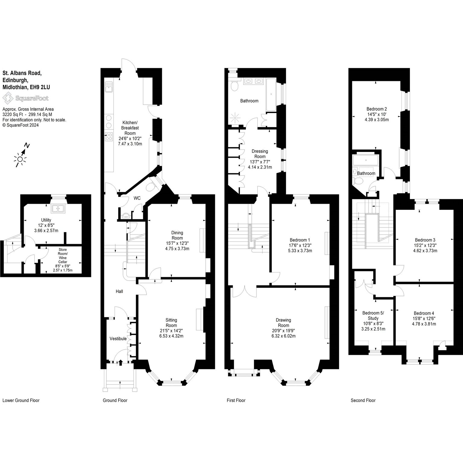 18 St. Alban’s Road is an impressive five-bedroom terraced family house which has been comprehensively refurbished throughout by the current owners. The property is situated in the heart of the Grange Conservation Area, an affluent and sought after residential area to the south side of the city. Presented in true turnkey condition the property retains many original period features including ornate cornicing/plasterwork, stained glass, fireplaces, working shutters and sash and case windows and varnished wooden floors - melding seamlessly with contemporary luxury bathrooms and kitchen. The entrance vestibule has mosaic tiled floor and bespoke cloaks floor to ceiling cupboards for coats and shoes etc. The generous and versatile family accommodation includes custom made dining kitchen with floor and wall mounted units, larder cupboard, granite and wooden worktops, Gas Aga and ceramic hob, integrated appliances and with direct access to the rear deck and garden for relaxation and al fresco dining. The property benefits from three public rooms including a beautiful family sitting room on the ground floor, formal dining room accessed off the sitting room and a grand drawing room on the first floor. There is an extremely useful utility room and wine cellar located in the basement.