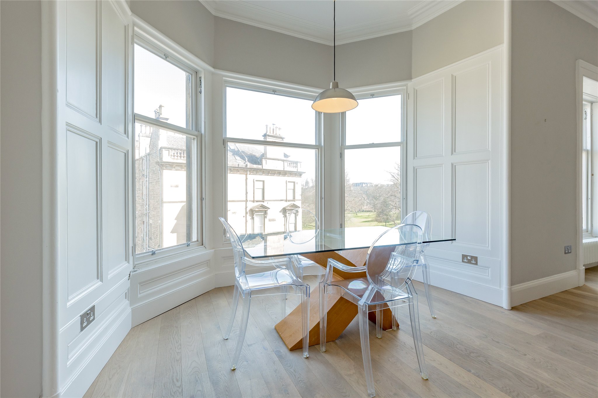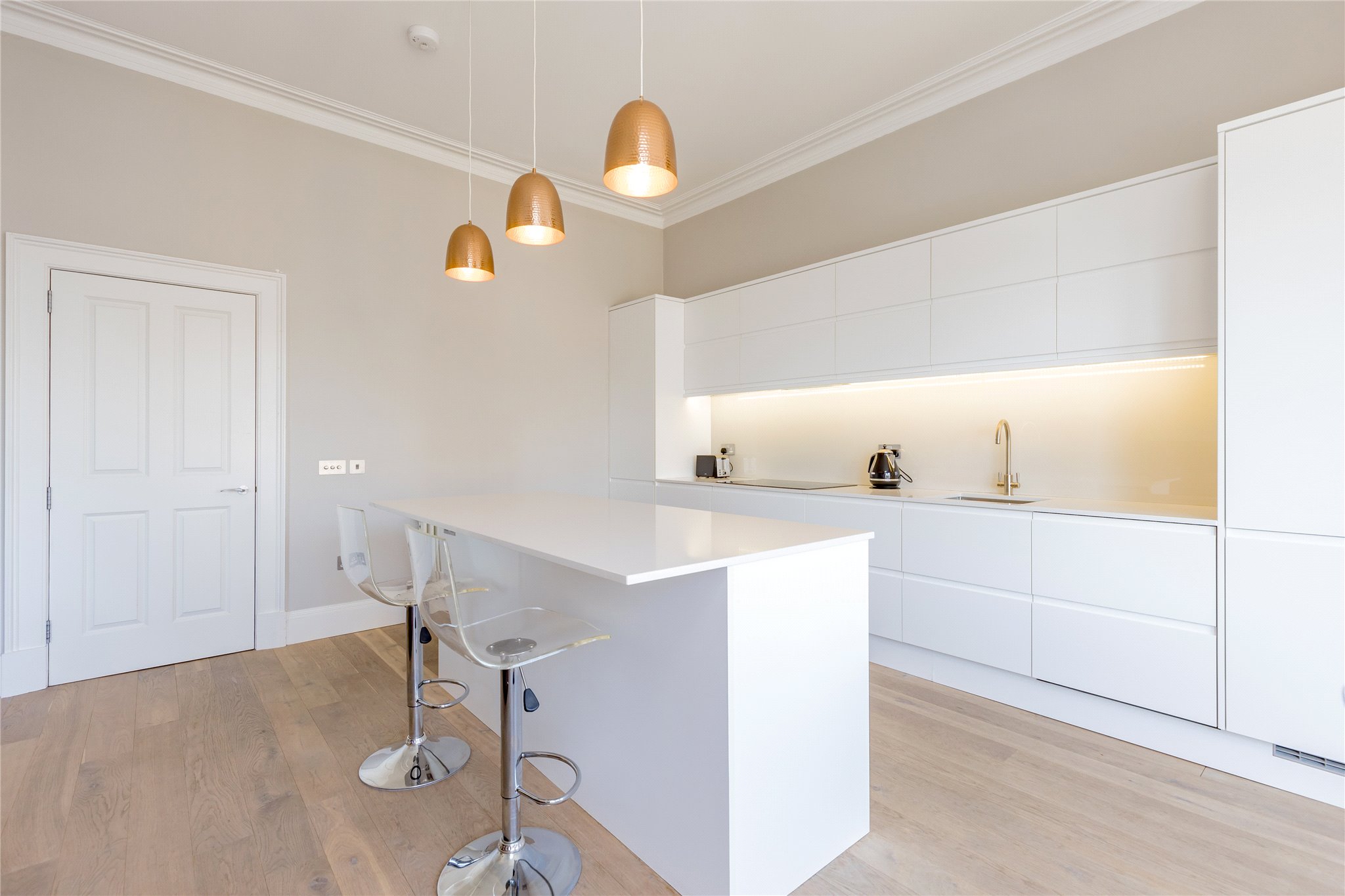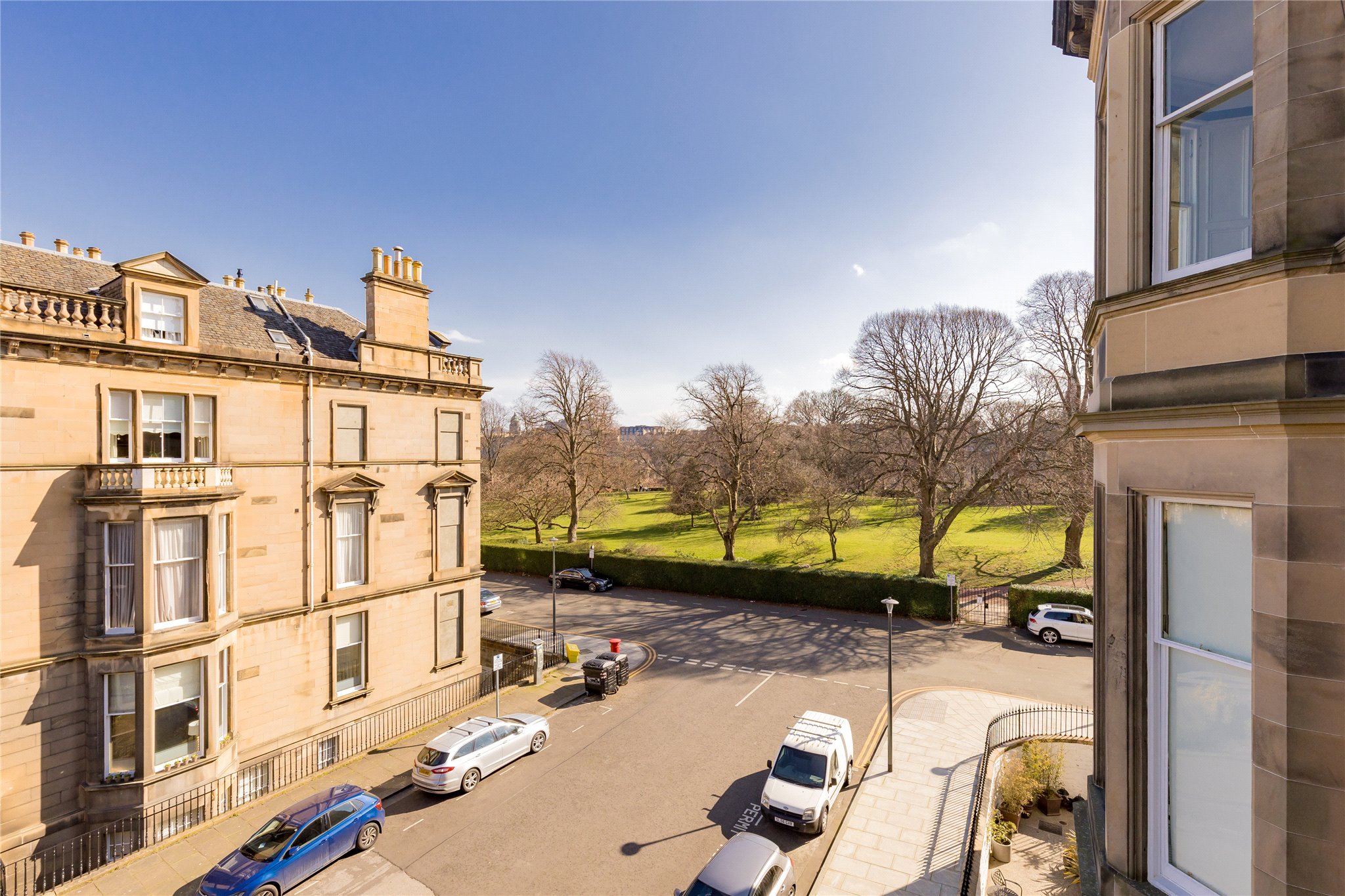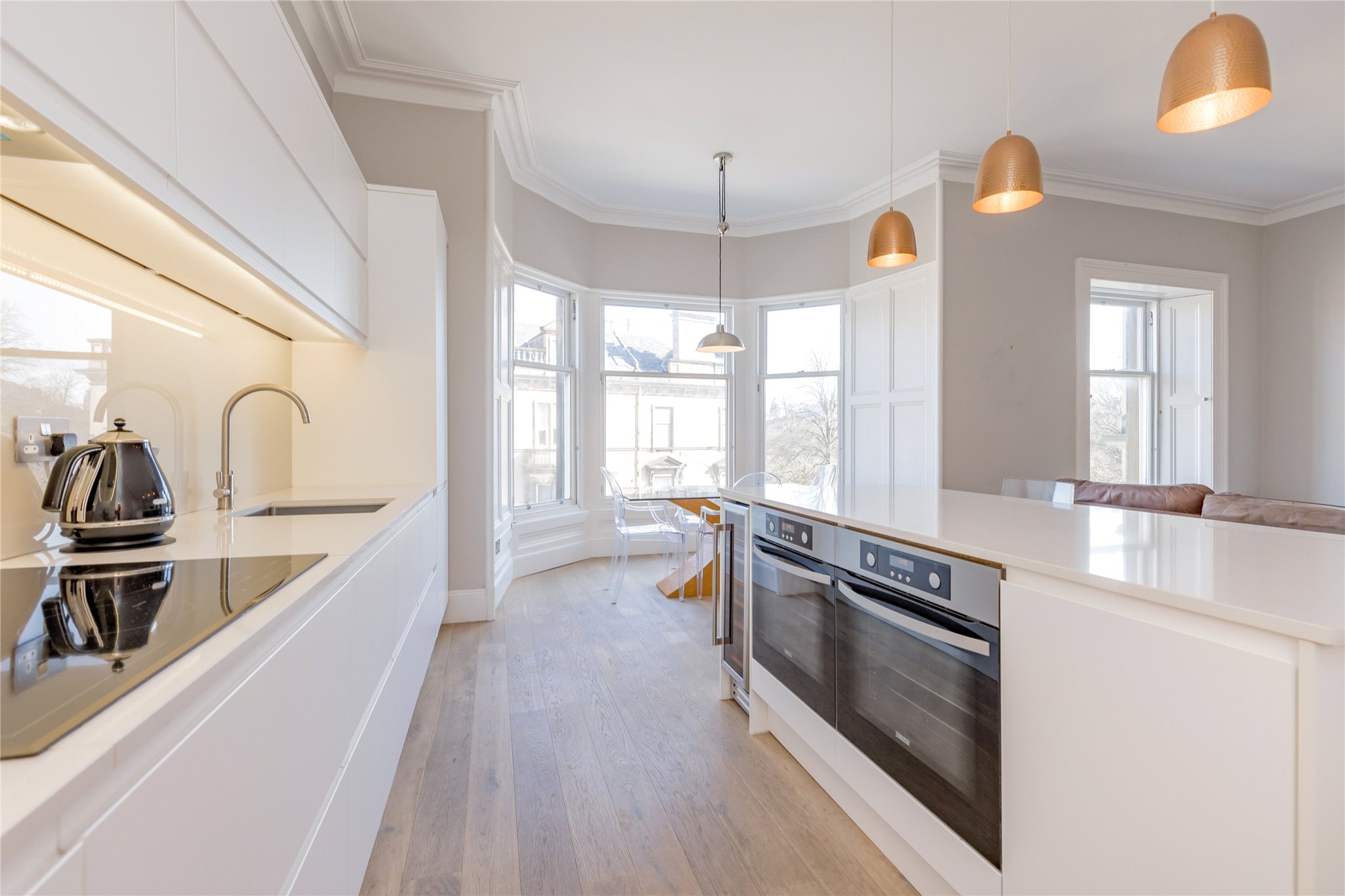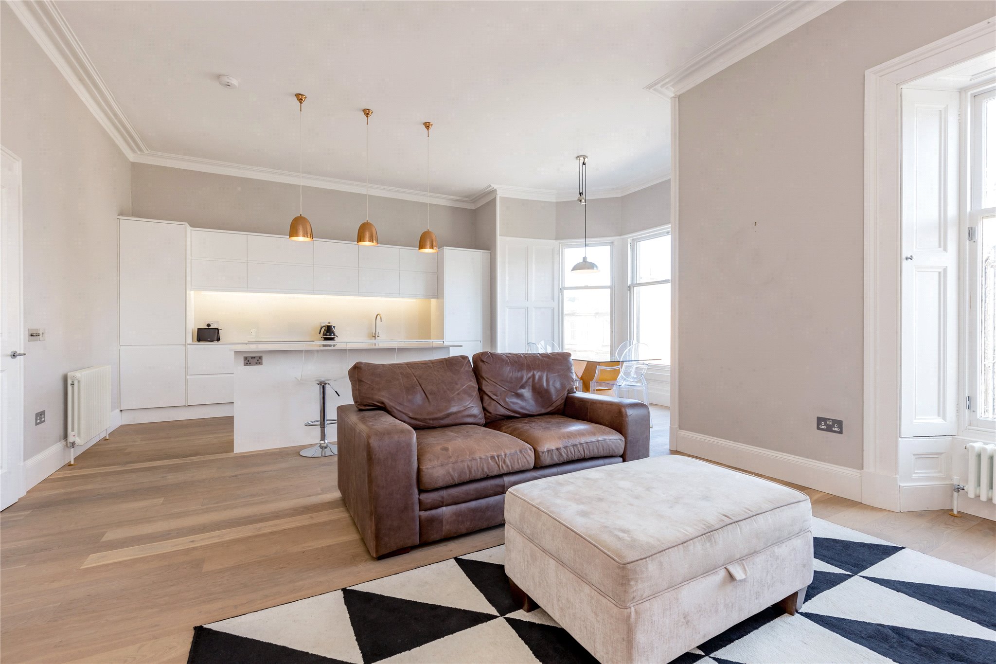 A beautifully refurbished two-bedroom second floor flat, located in a prime position at 1 Belgrave Place, offering stunning partial views to the well-maintained Belgrave Crescent Gardens.
