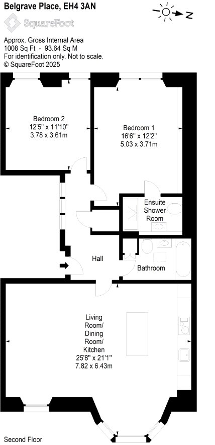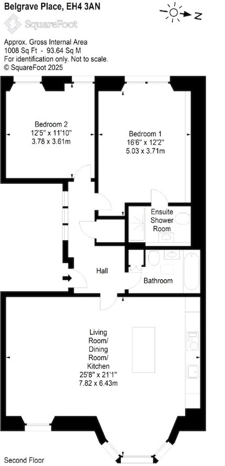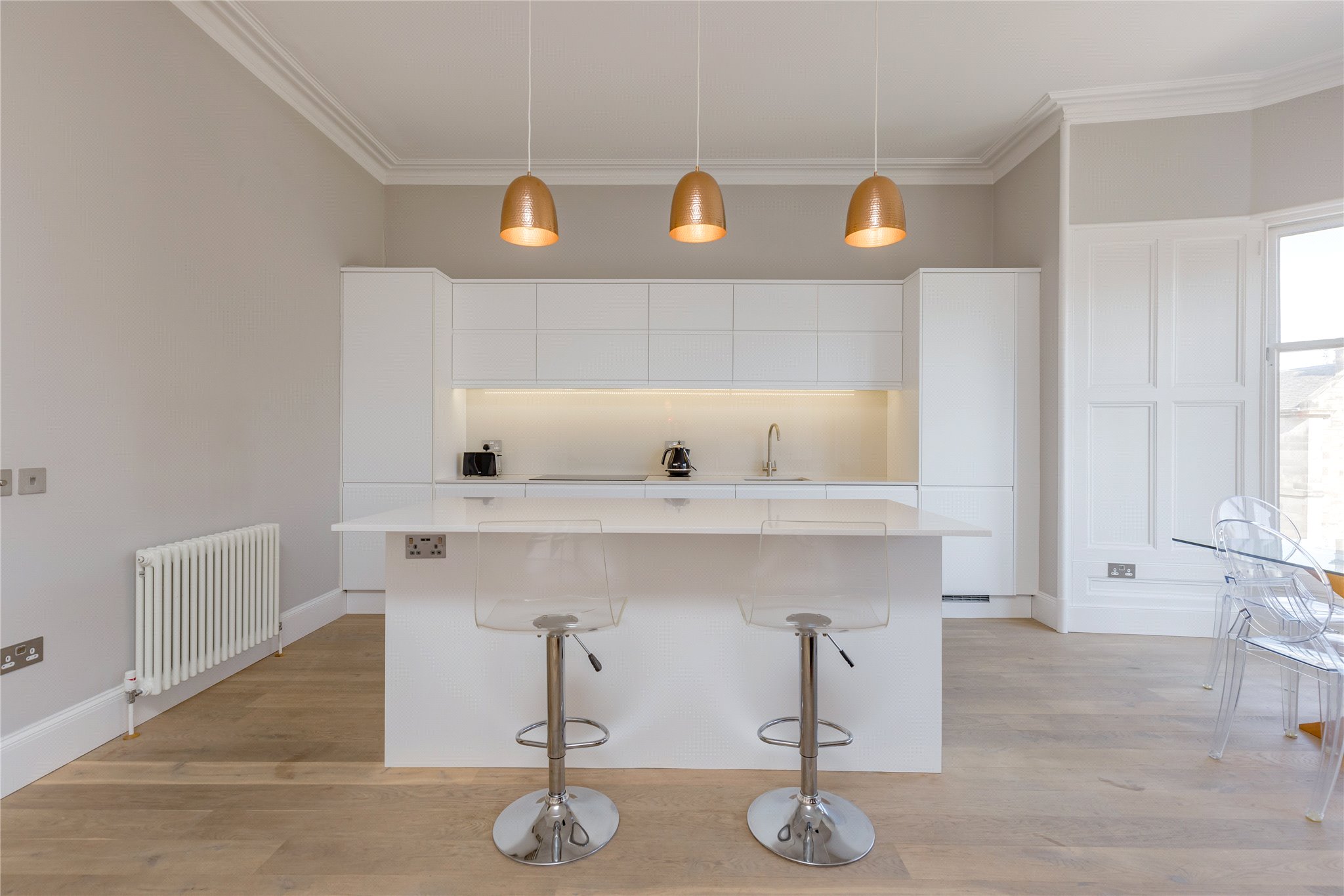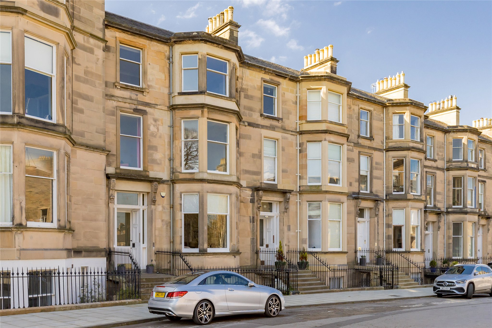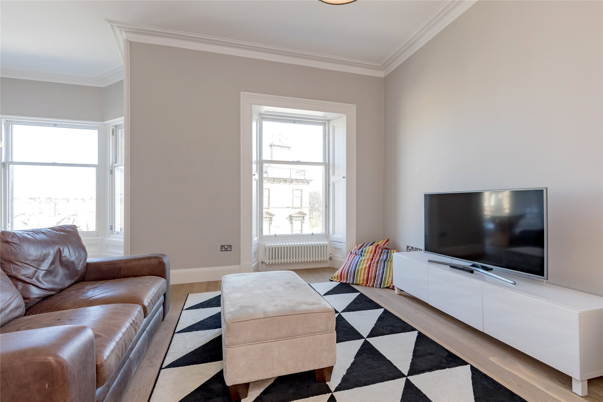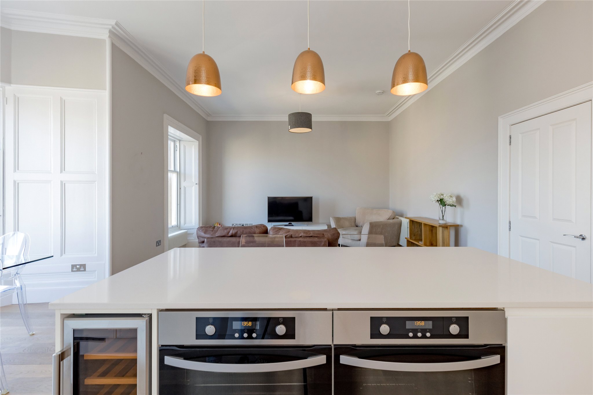 A beautifully refurbished two-bedroom second floor flat, located in a prime position at 1 Belgrave Place, offering stunning partial views to the well-maintained Belgrave Crescent Gardens.