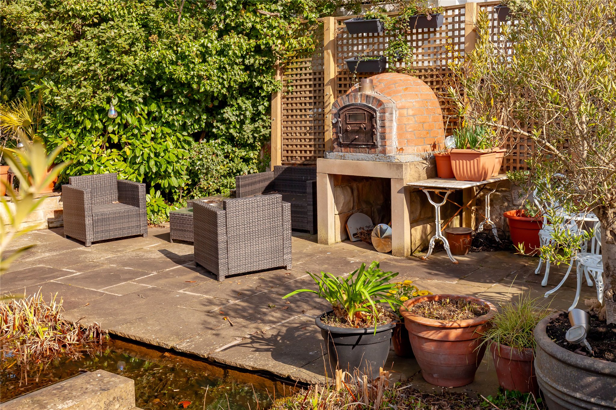 A true highlight of Murraybank is the expansive mature and beautifully landscaped South-facing rear garden. Designed for both relaxation and entertaining, it features a generous lawn, colourful shrubs and trees, paved patio, barbecue area with built-in pizza oven, and a charming pond and leads directly to the Water of Leith.