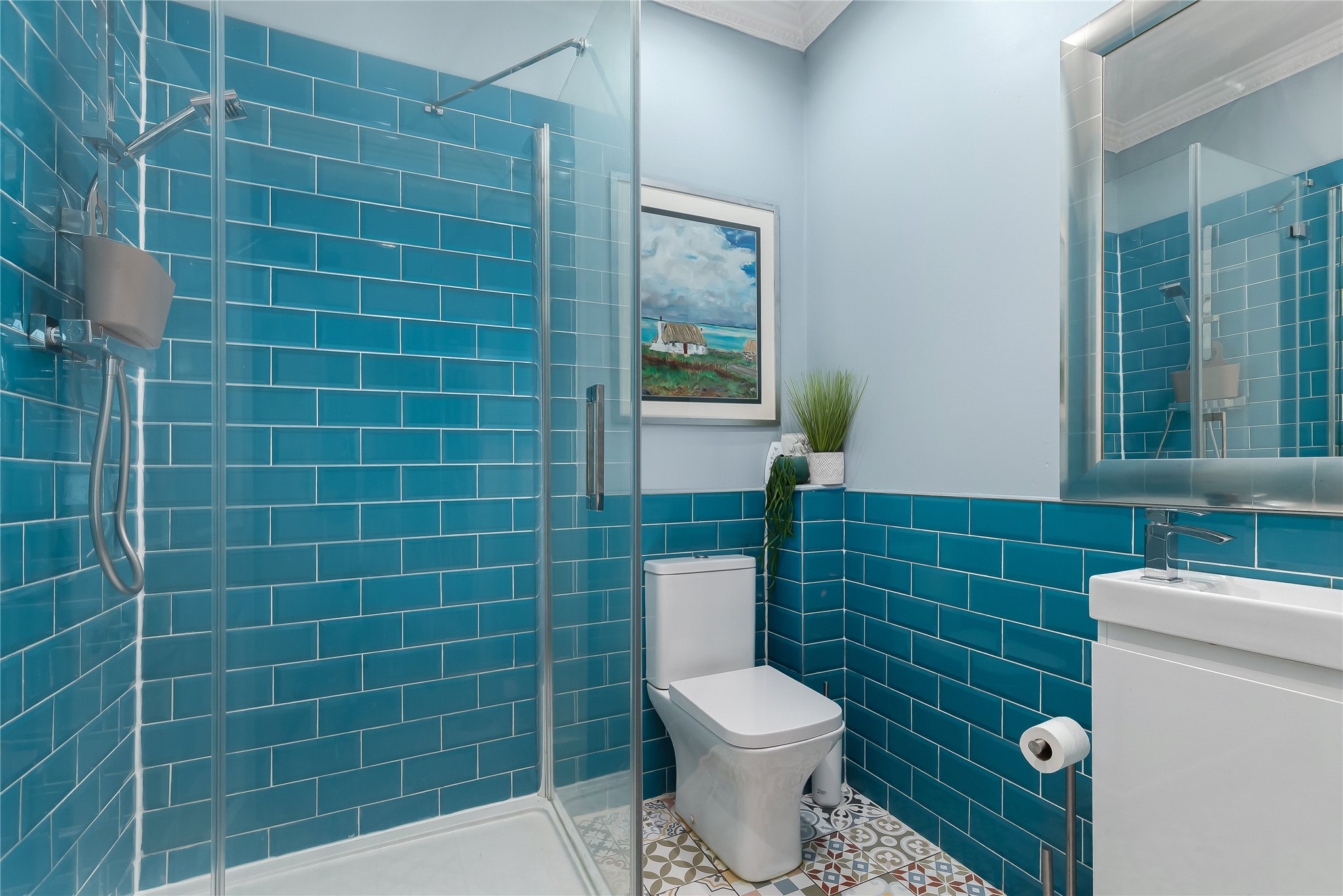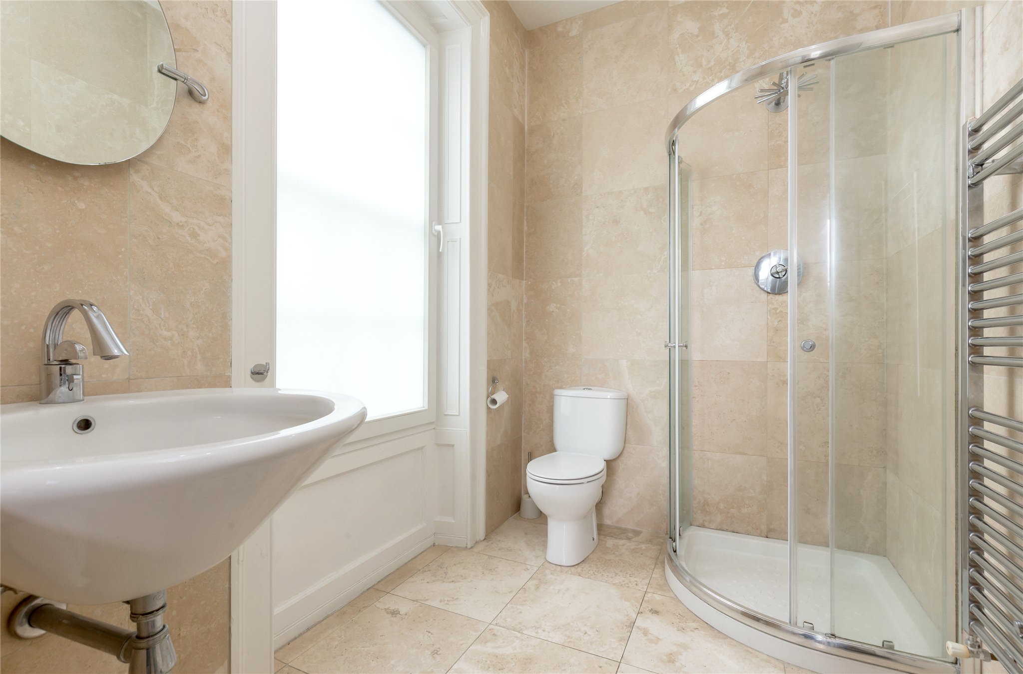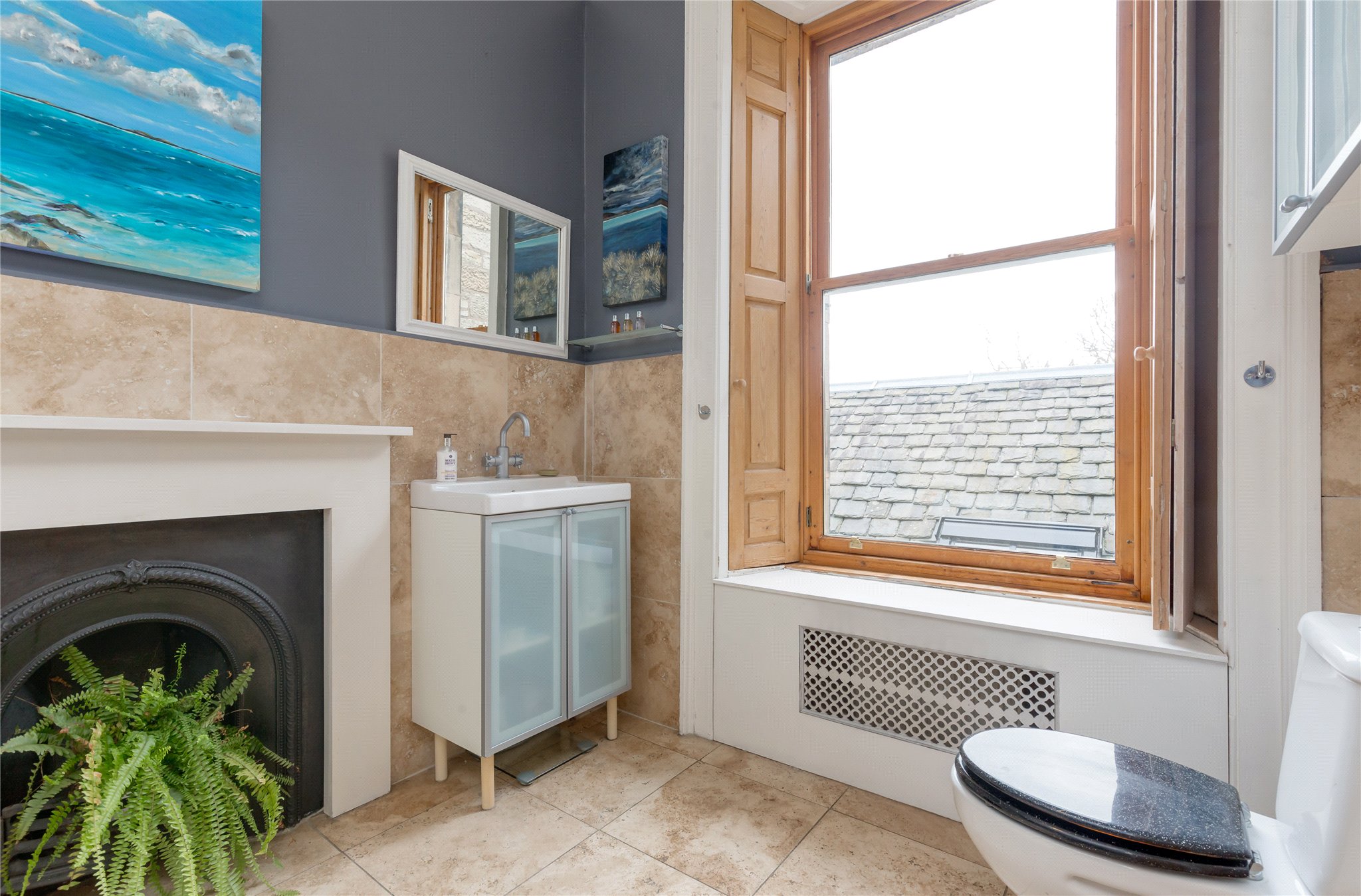 Upstairs, a cupola floods the landing with natural light. The principal bedroom is a serene retreat, featuring twin sash-and-case windows, fitted wardrobes, a fireplace, and a luxurious en-suite shower room. The second double bedroom also benefits from twin windows, an en-suite, and a dedicated dressing room. A third double bedroom with fitted storage and a family bathroom, with original fireplace complete this level.
