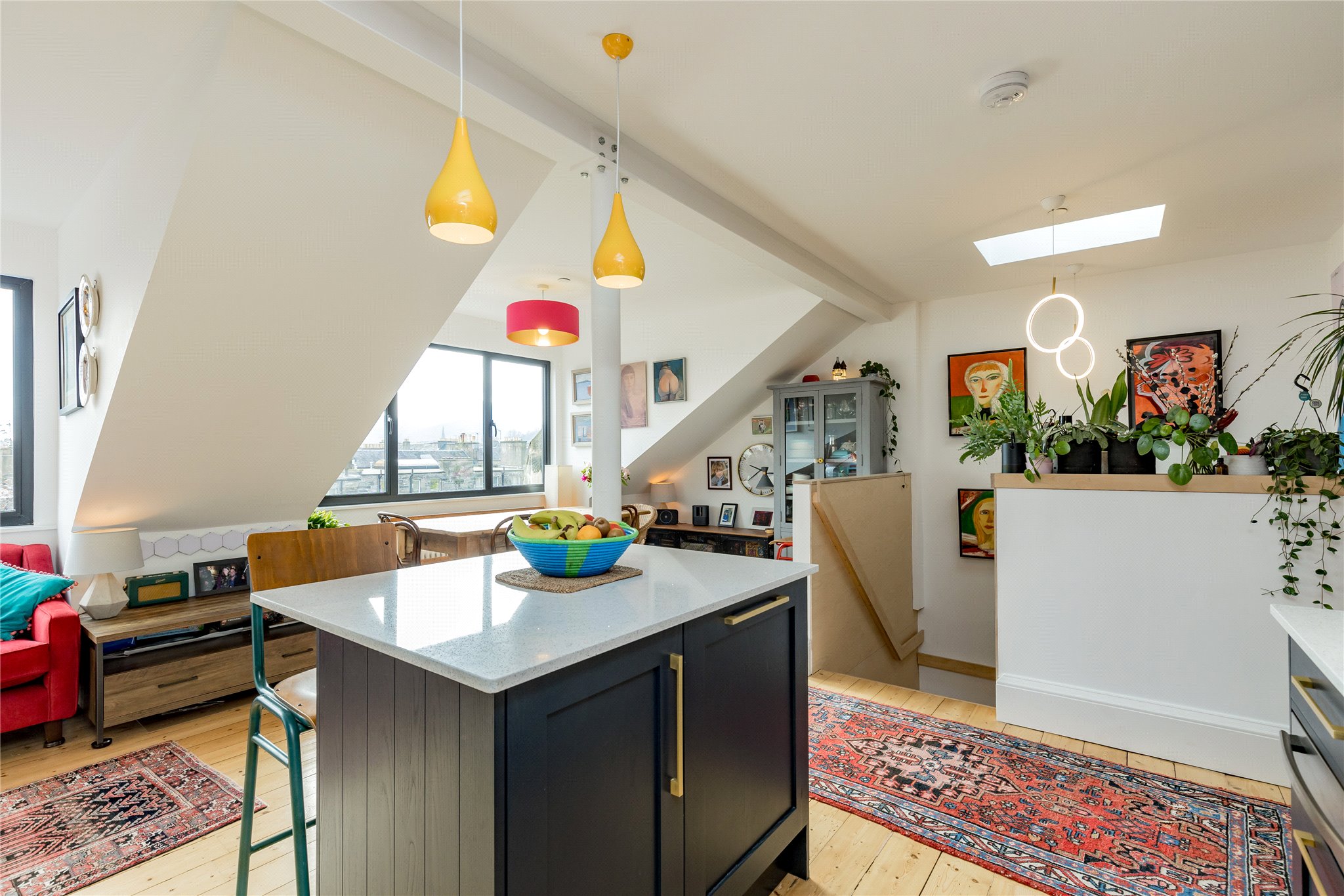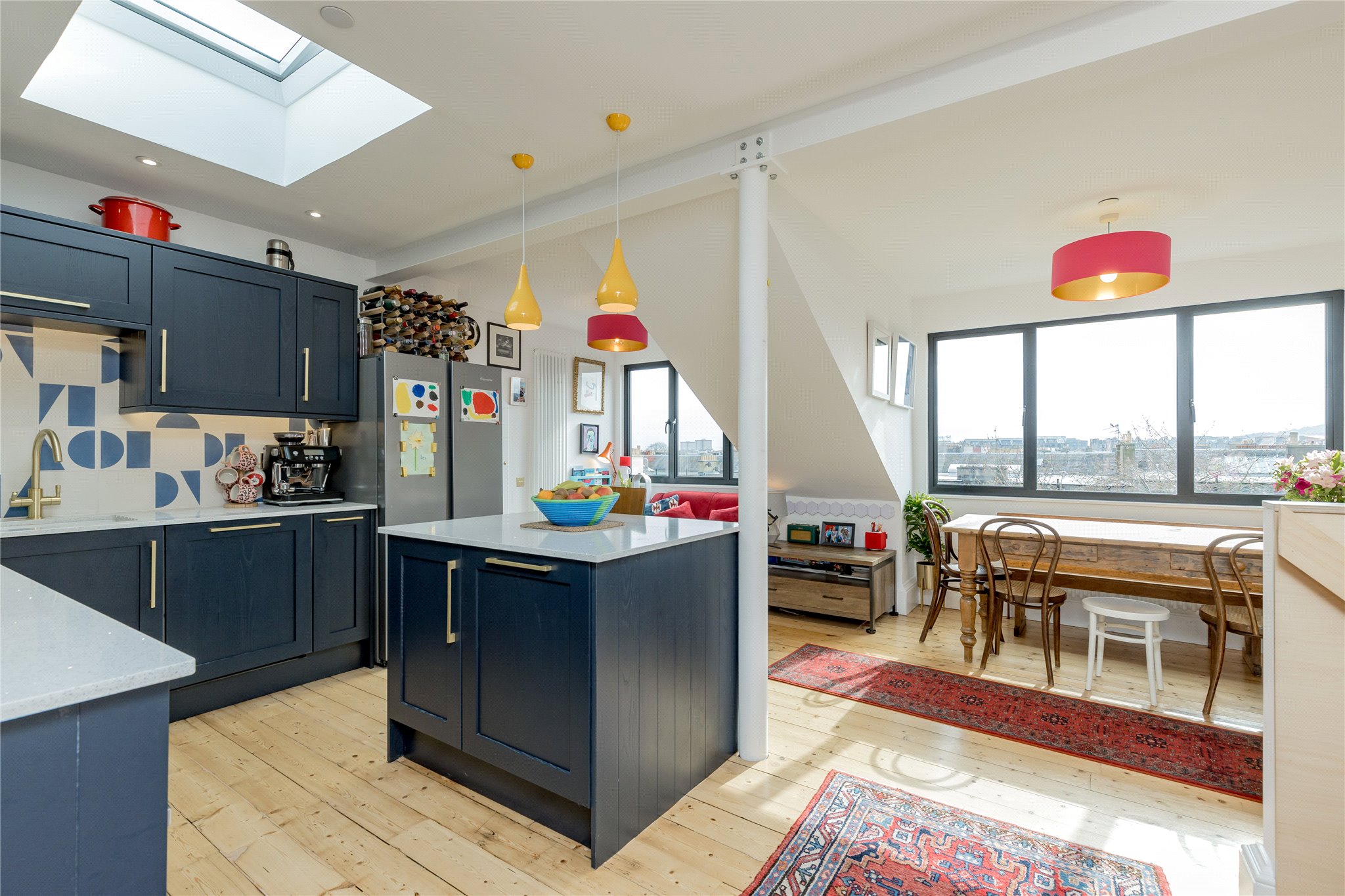 Striking open-plan kitchen/dining room with ample space to entertain, Bright and comfortable living room with far-reaching views of Arthur’s Seat, Convenient WC/cloakroom