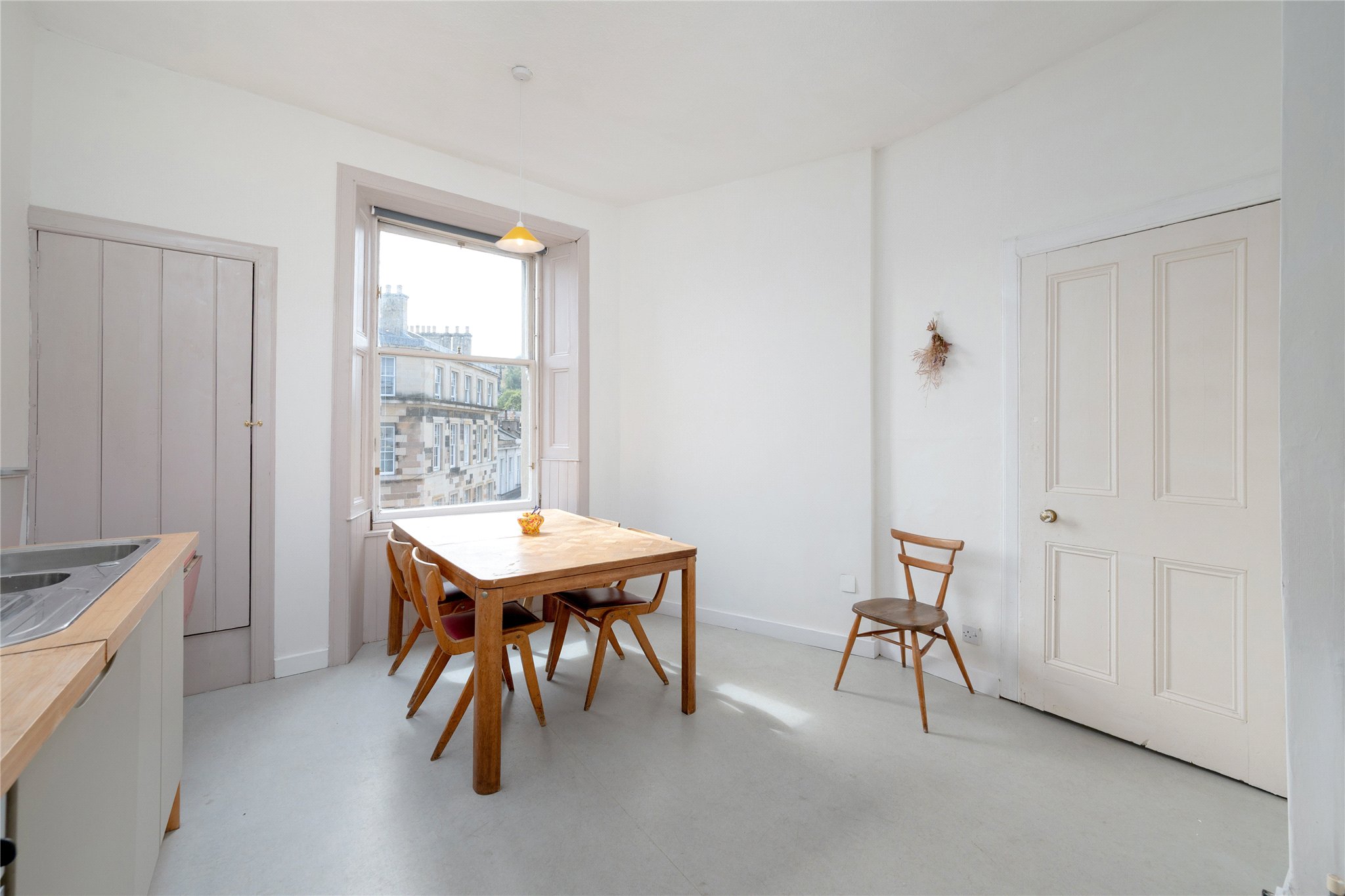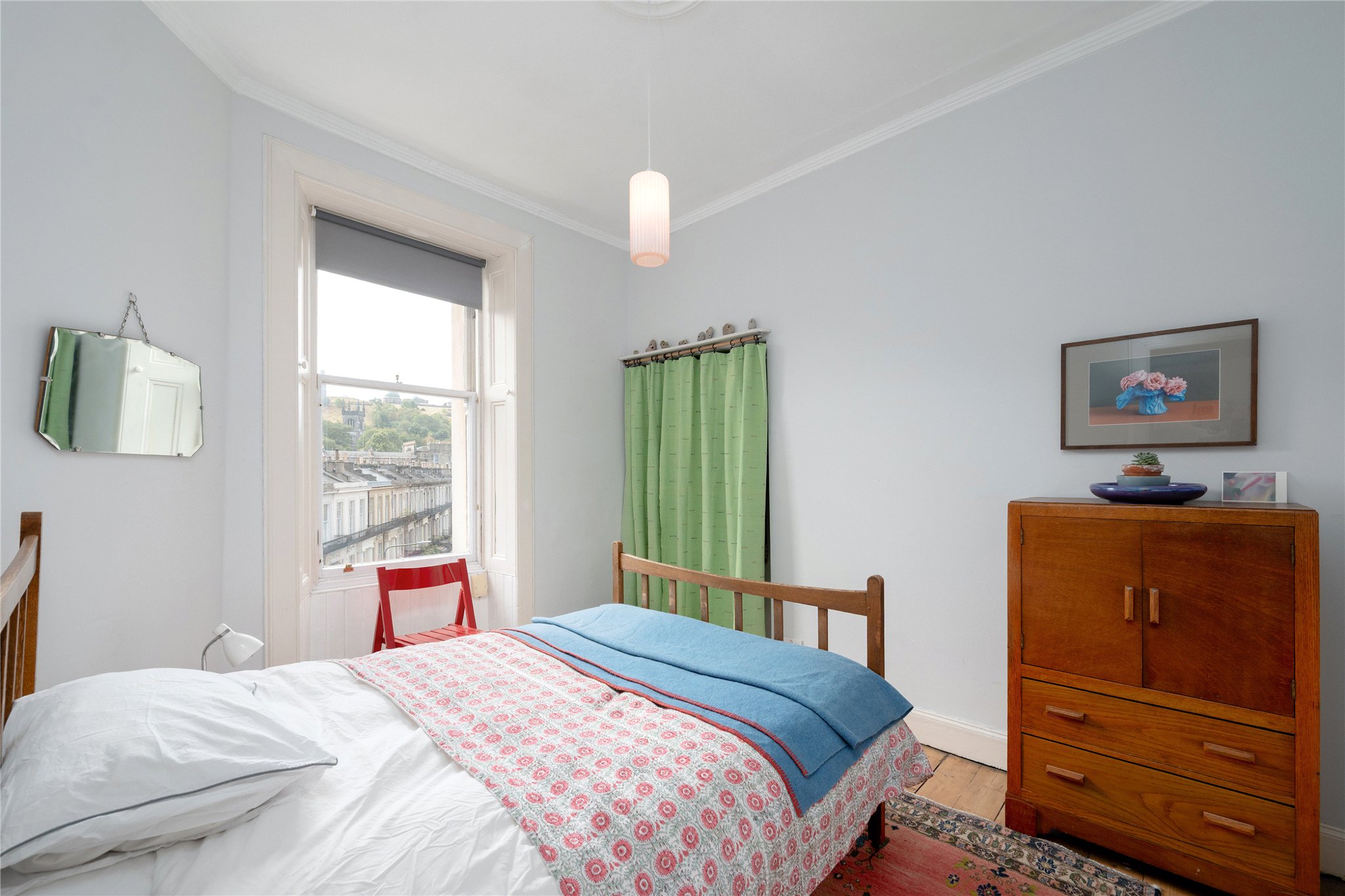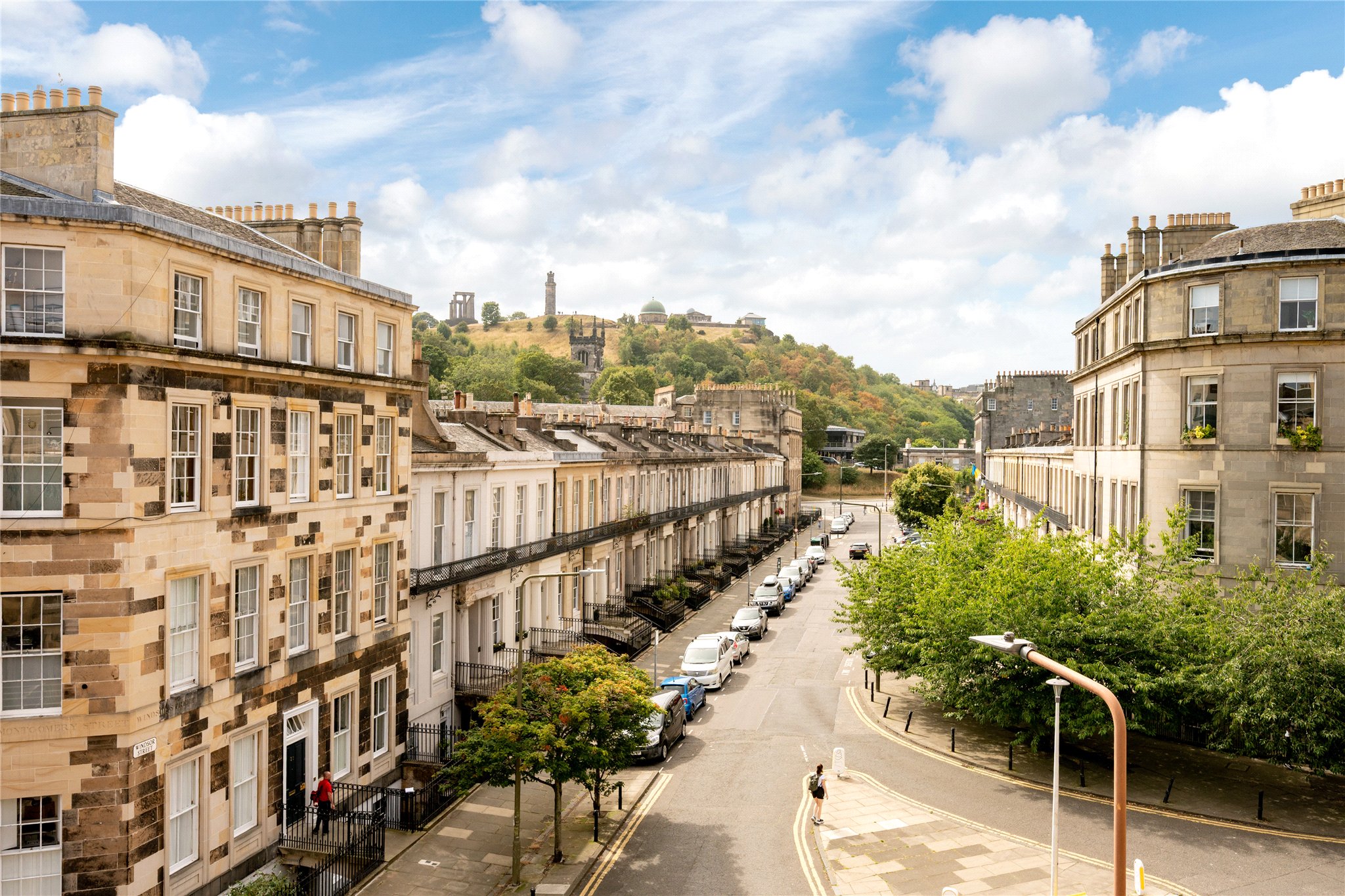 Positioned on Montgomery Street, the property looks directly out towards the iconic Calton Hill, creating a stunning backdrop that changes with the seasons. The flat also benefits from access to a well-maintained communal garden to the rear, providing a rare and peaceful outdoor space within such a central location.
