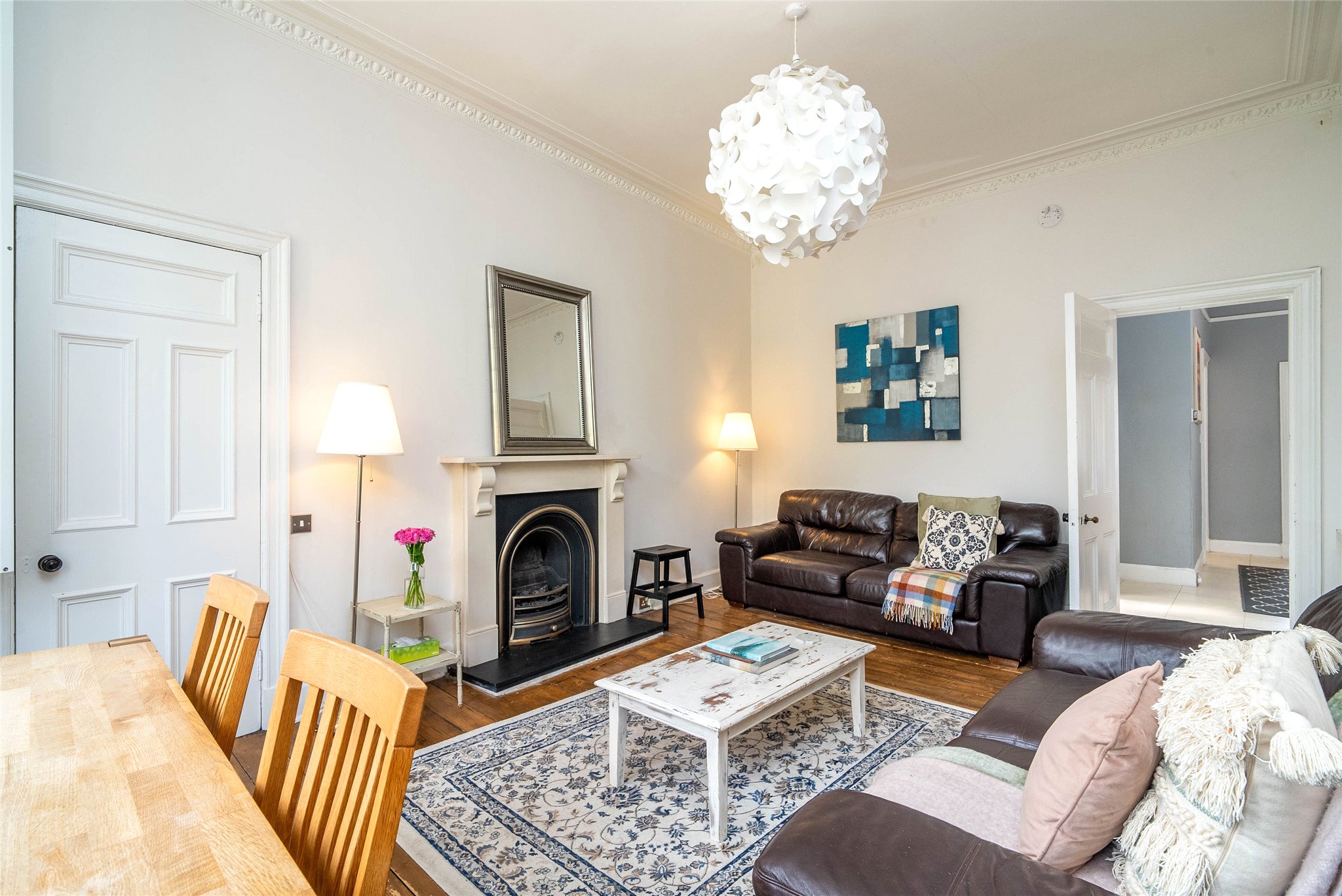 An immaculately presented, three bedroom, first floor flat in the heart of Bruntsfield. Nestled along a quiet street, yet just a few seconds’ walk from the main street, this flat, overlooking Bruntsfield Links, provides the opportunity to acquire the most beautiful home.