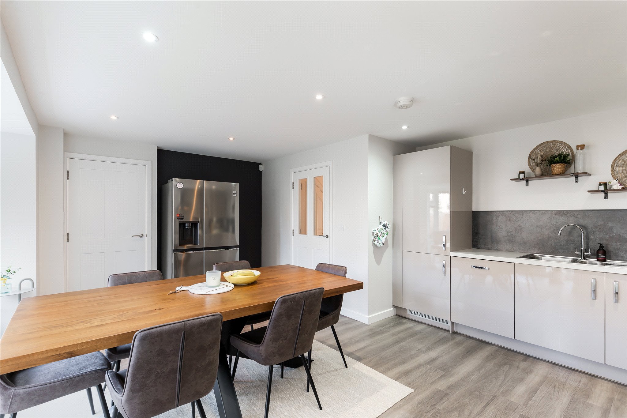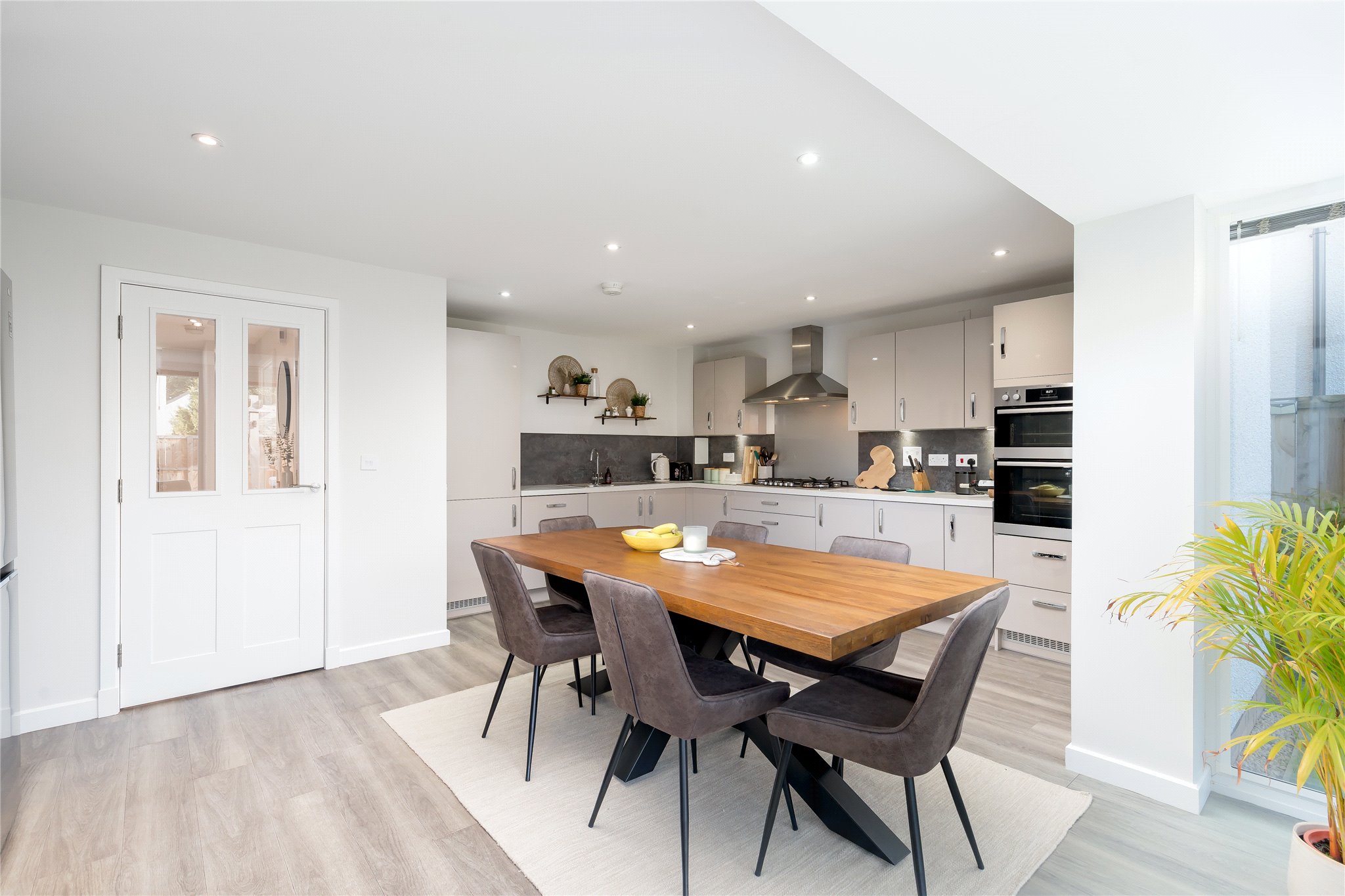 The property offers spacious and versatile accommodation including four bedrooms, all with built-in wardrobes; two with en-suites. Of particular mention is the properties open plan dining room, kitchen and utility room which can be opened to the rear garden allowing for al fresco dining and family entertaining.