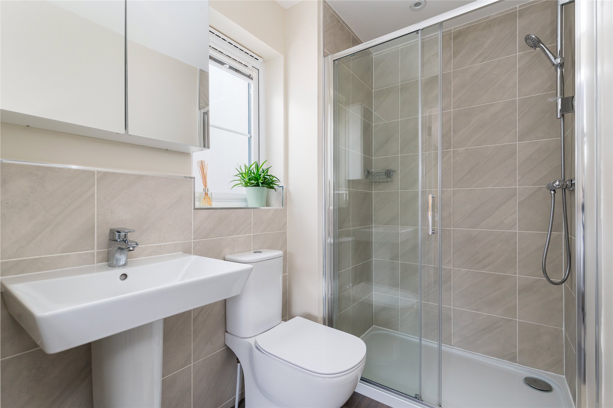 Landing with large airing cupboard, Principal Bedroom with built-in wardrobe space and en-suite shower room; double bedroom 2 with en-suite shower room, double bedroom 3 with built in wardrobe space, double bedroom 4 / study with built in wardrobe space, family bathroom with shower over tub.