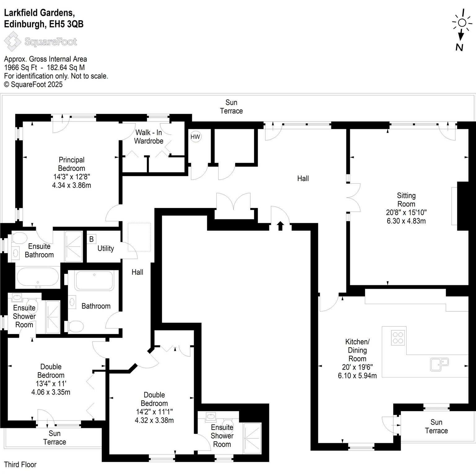 Large reception hallway, sitting room, kitchen/ dining room, principal bedroom with ensuite, private balcony and dressing room, two further double bedrooms with ensuite bathrooms, a family bathroom, utility room and storage cupboards.