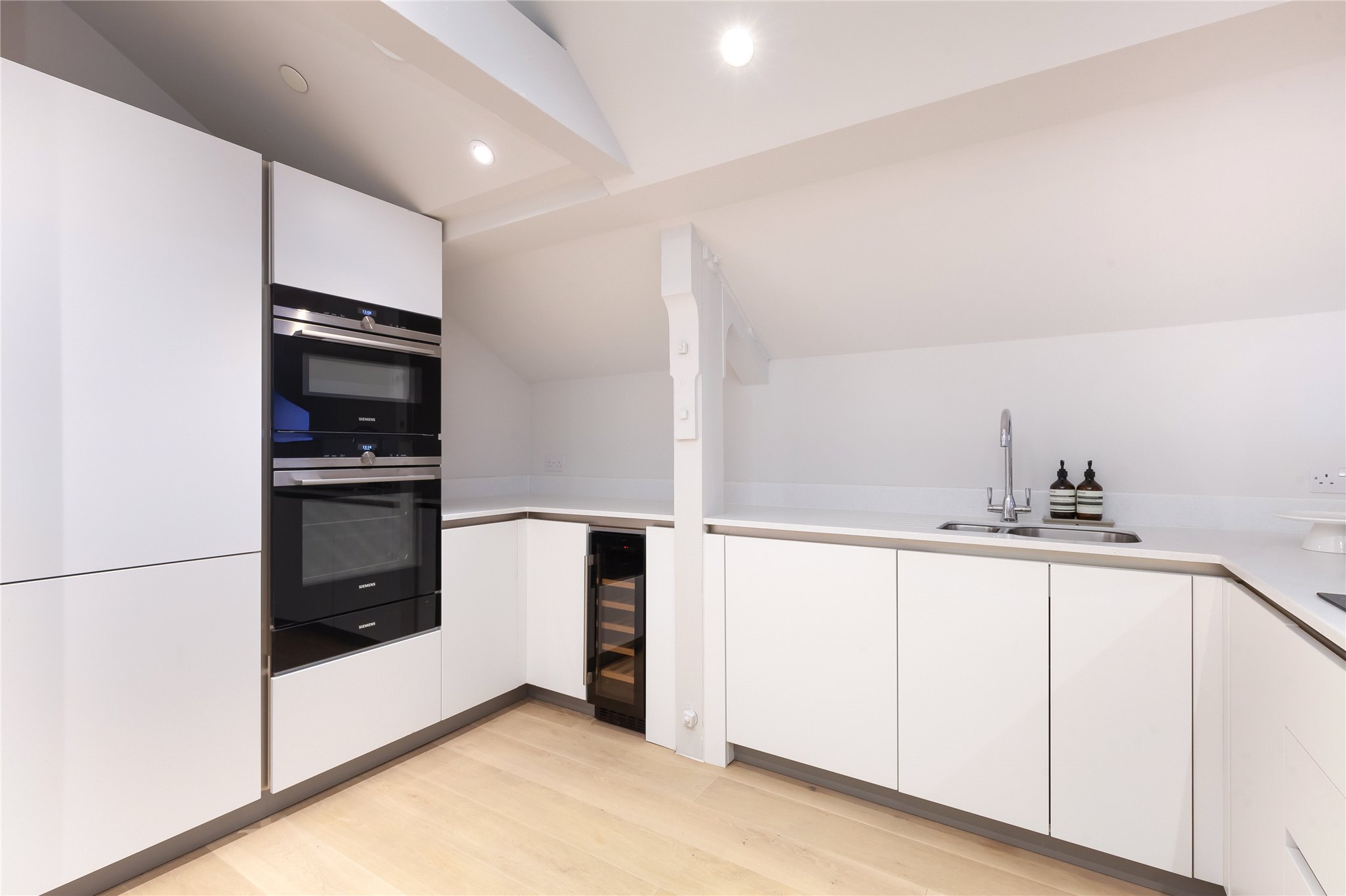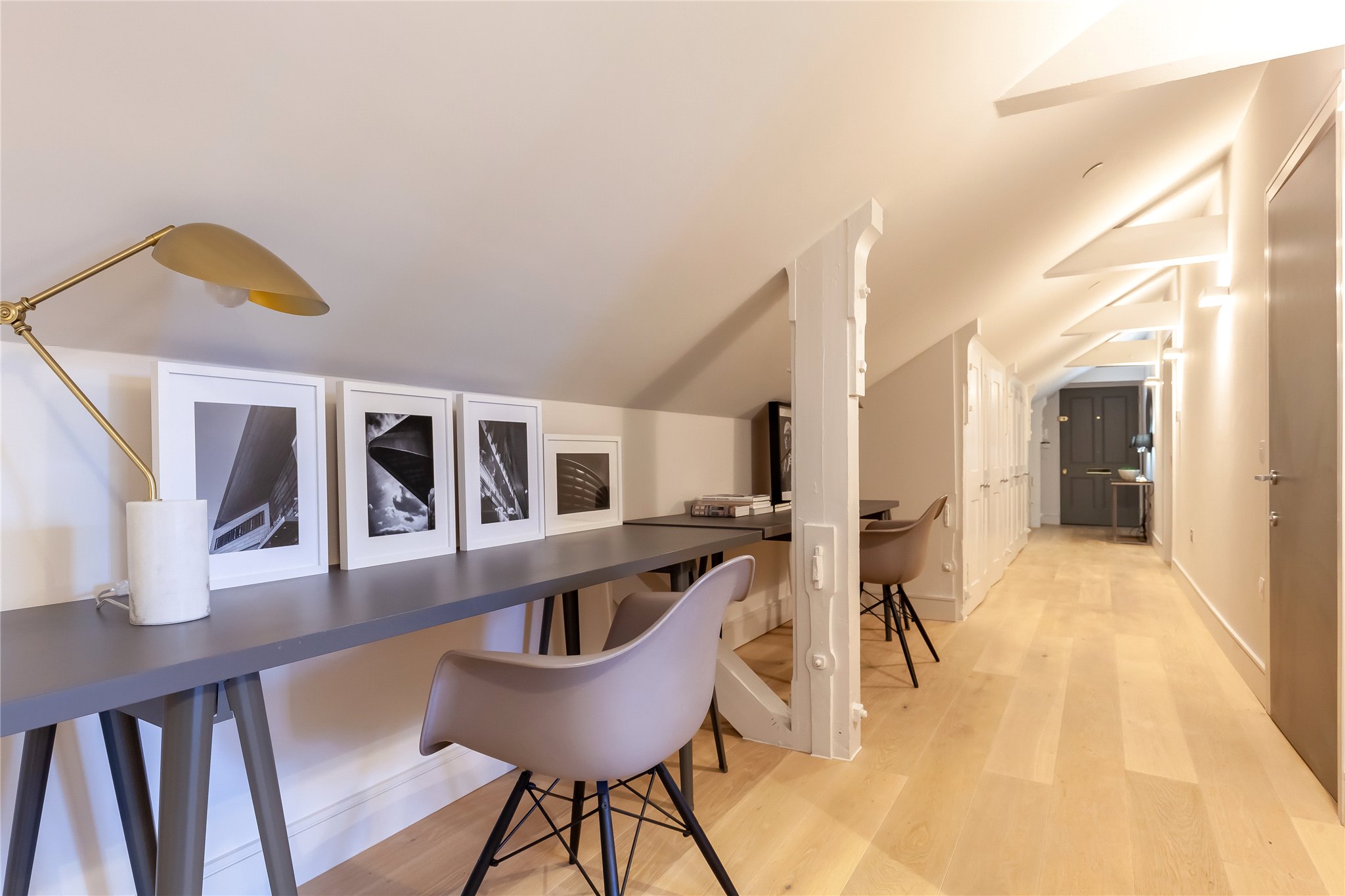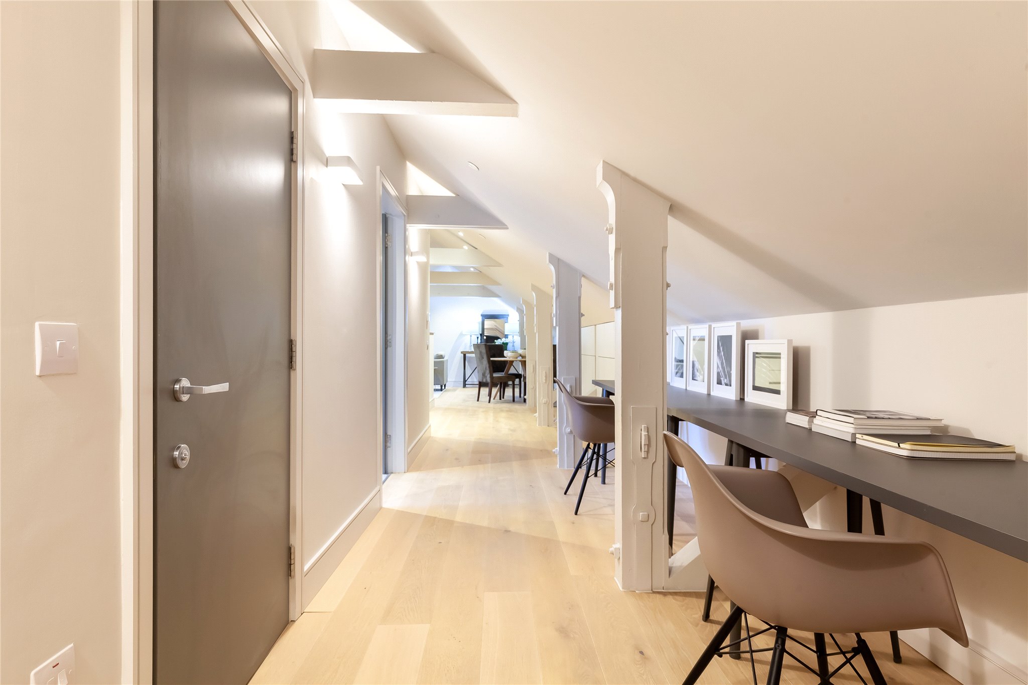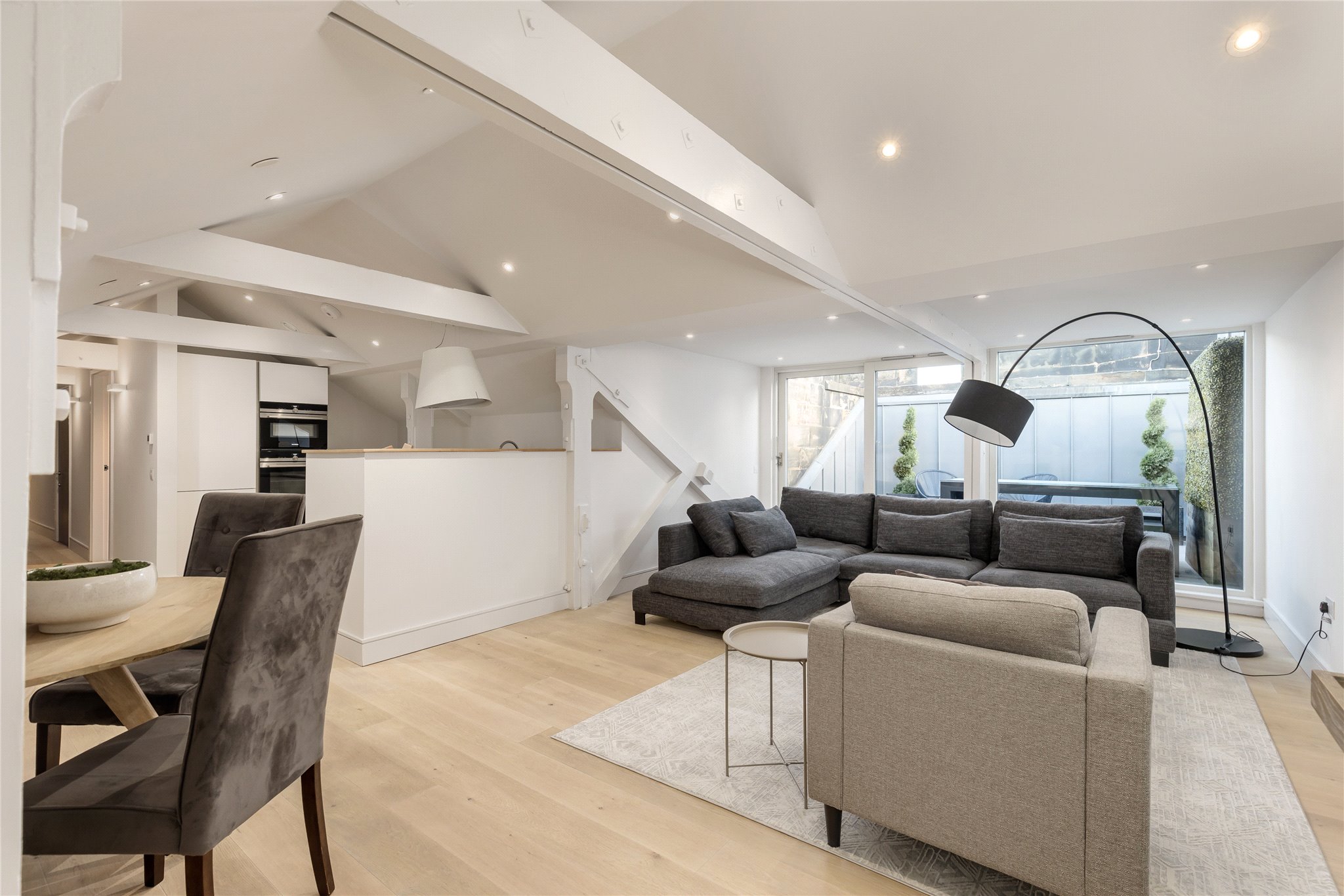 Situated on the second floor of the building oozing history and grandeur, this hideaway apartment is spacious yet cosy meeting every contemporary need to the highest quality. The property comprises entrance hallway with fitted storage and space for home office working, fully equipped kitchen benefitting from integrated Siemens appliances open plan sitting/dining room offering direct access to the private south facing terrace through sliding doors, ideal for al fresco dining and entertaining. There is a principal bedroom benefitting from fitted wardrobe storage and ensuite shower room, a second double bedroom, and bathroom completing the space.