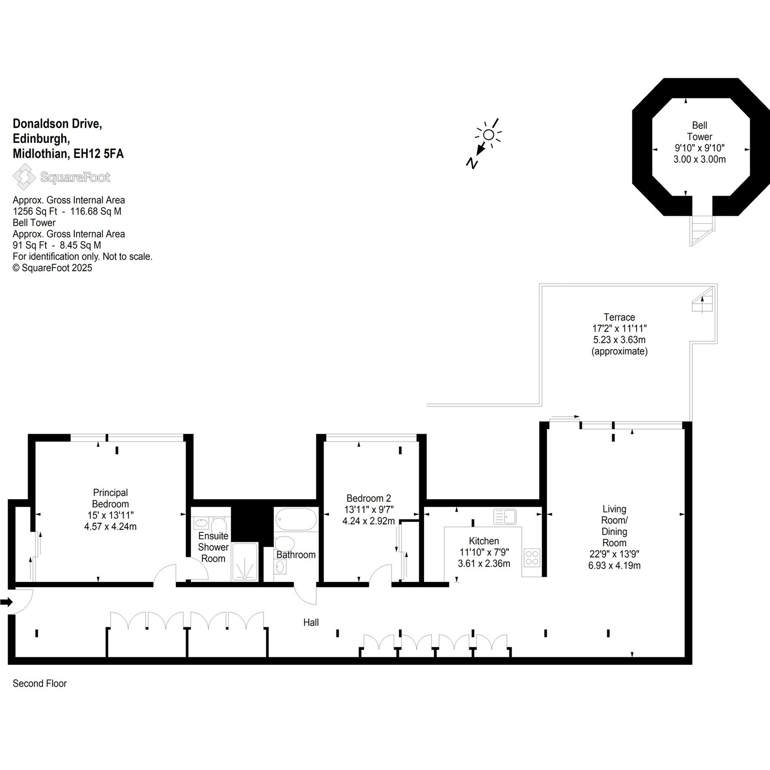 Private South Facing Terrace with access to Bell Tower