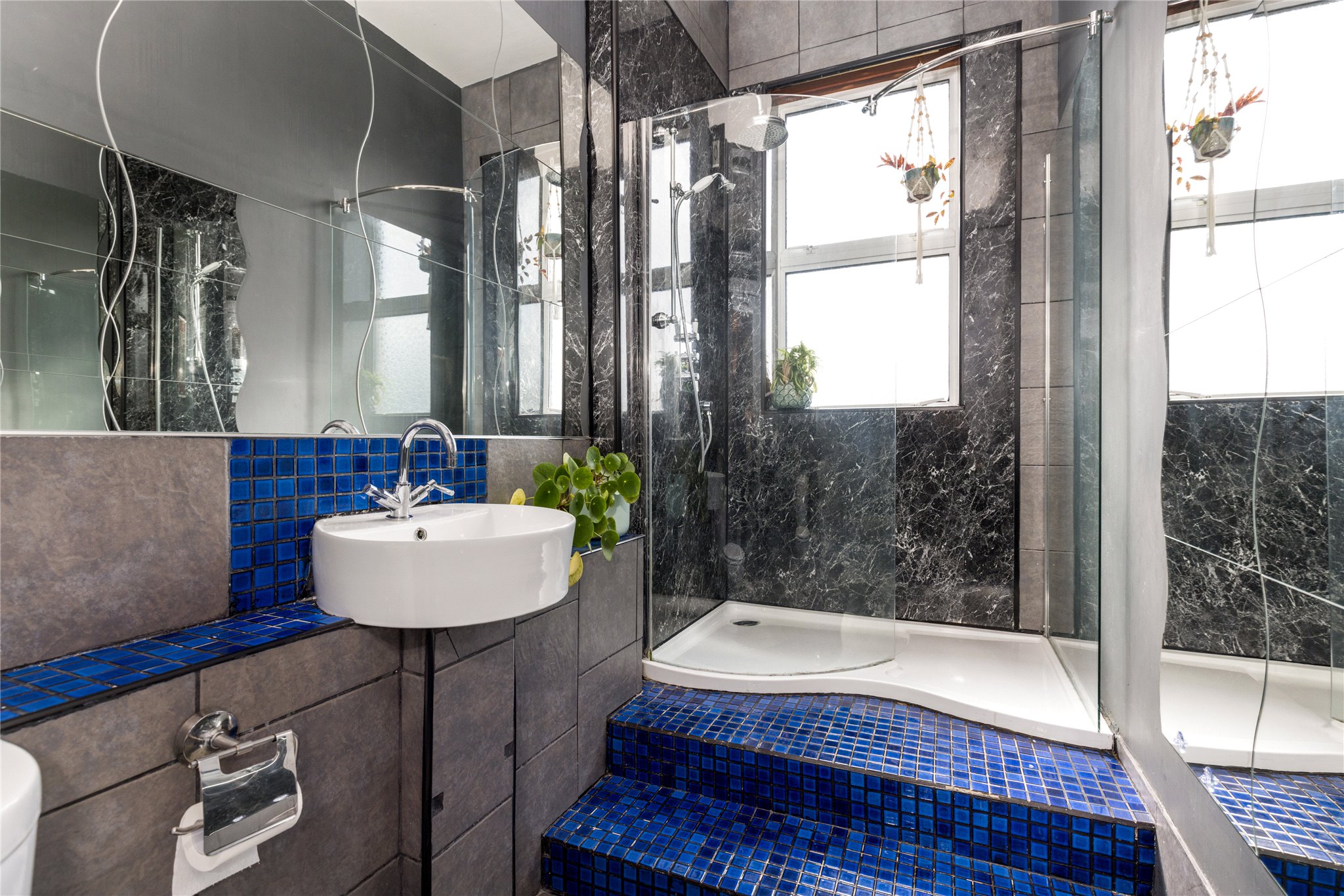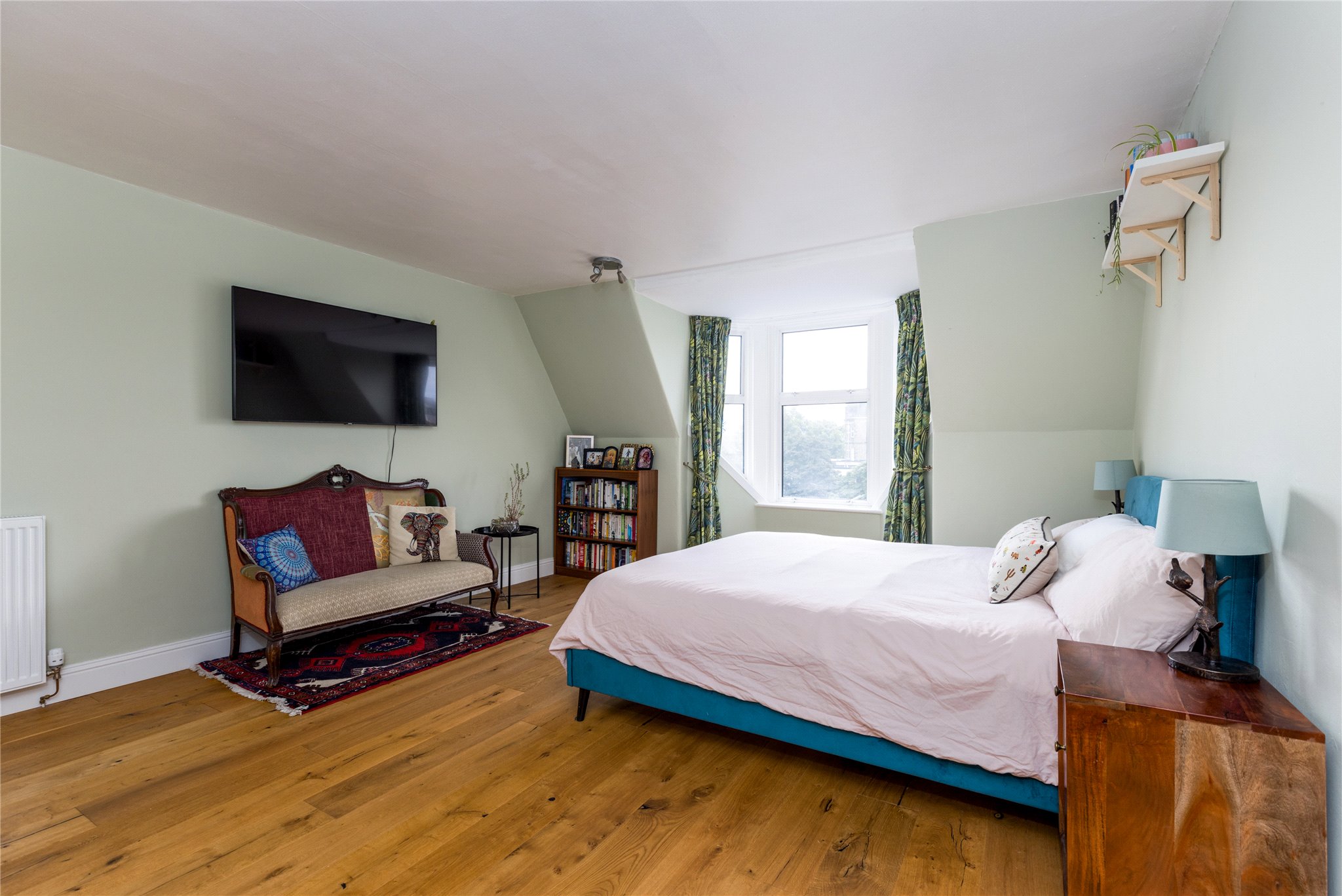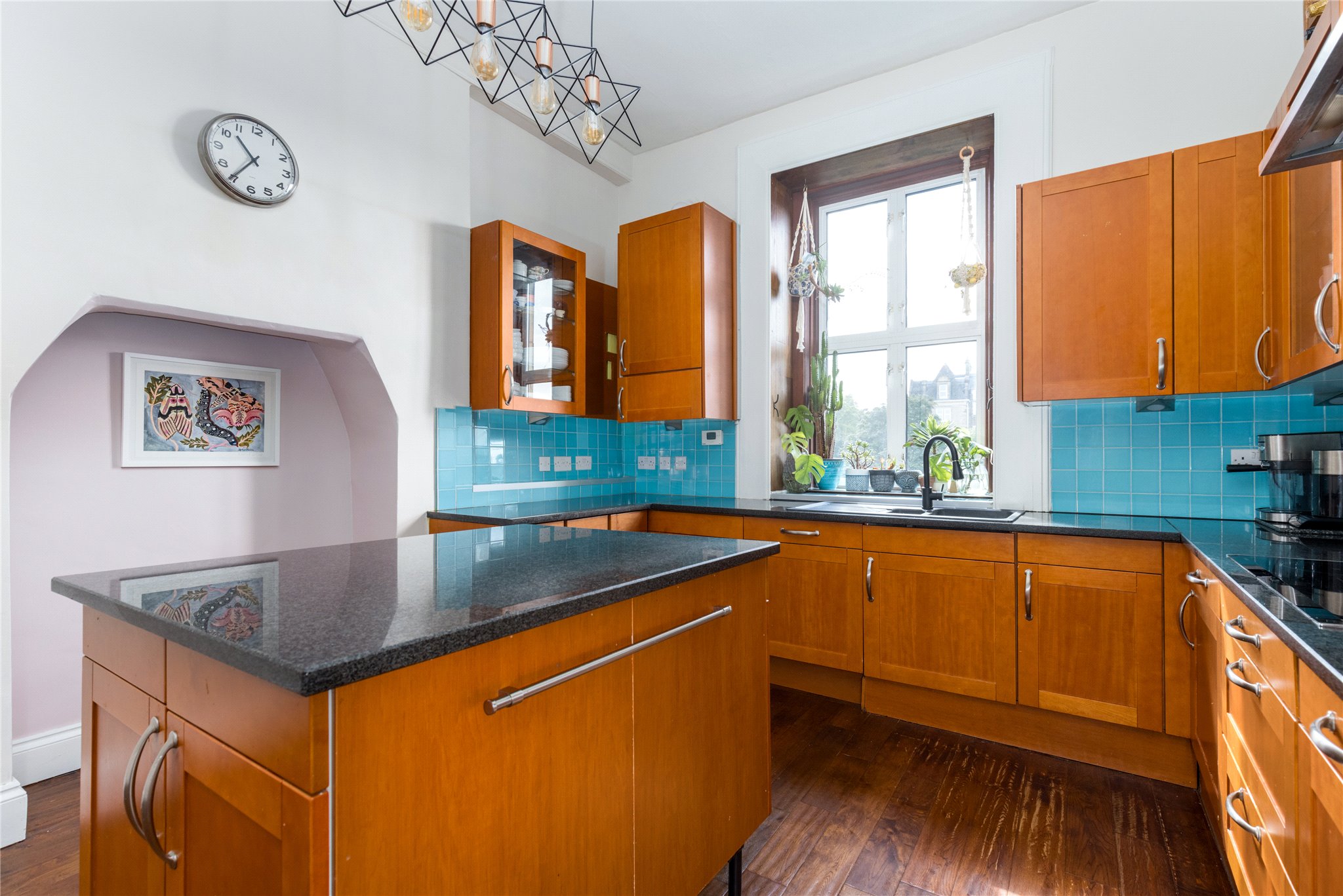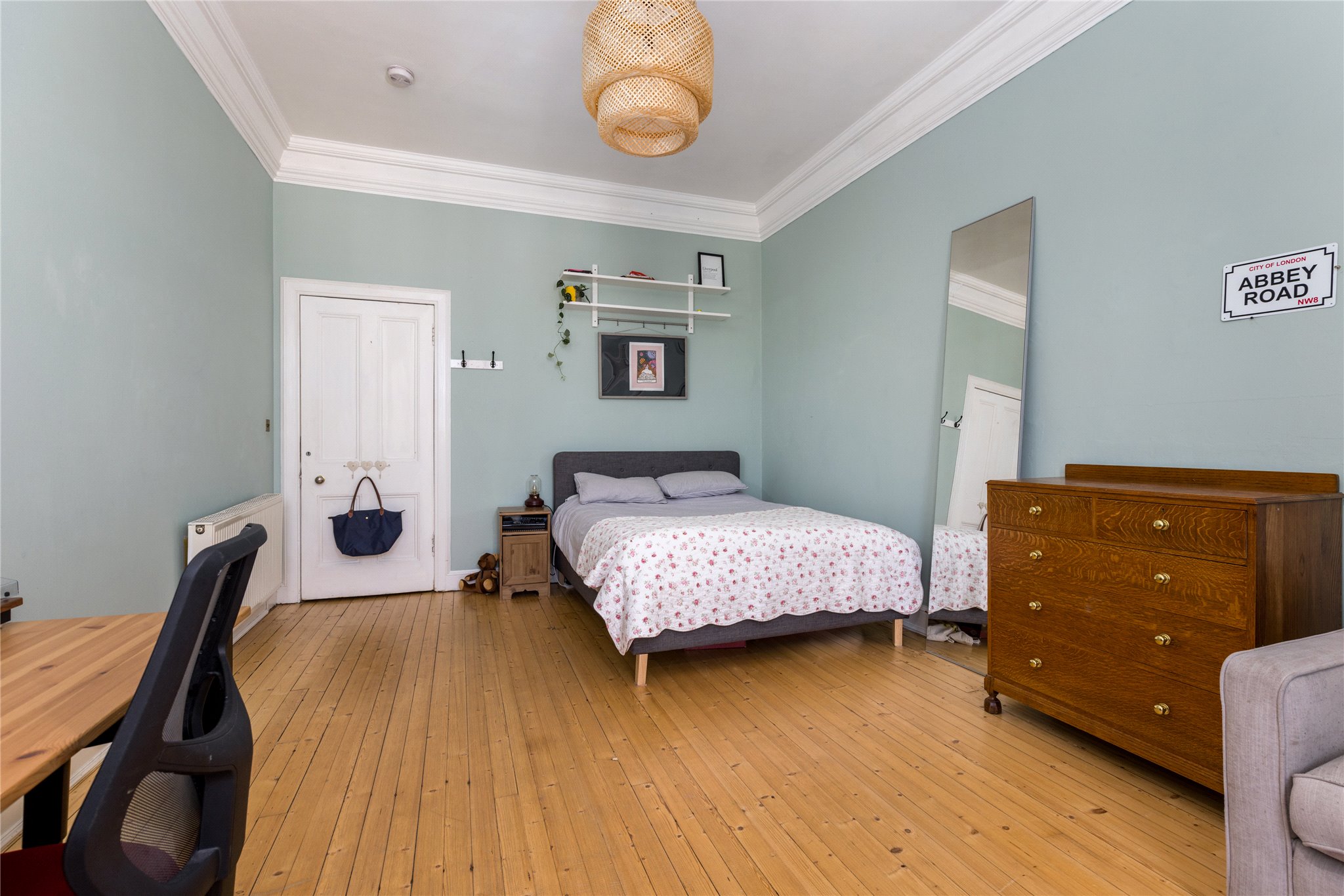 19/4 Mentone Terrace is a beautiful and elegantly proportioned five bedroomed property, with large private south facing garden, occupying the upper two floors of a handsome Victorian tenement, set peacefully in the Southside of Edinburgh. The property retains a wealth of period features including ornate cornicework/plasterwork, high ceilings, wooden flooring, feature fireplaces and impressive bay windows in the sitting room and in the drawing room, enjoying far reaching views to Salisbury Crags and Arthur Seat with Burley wood burning stove.