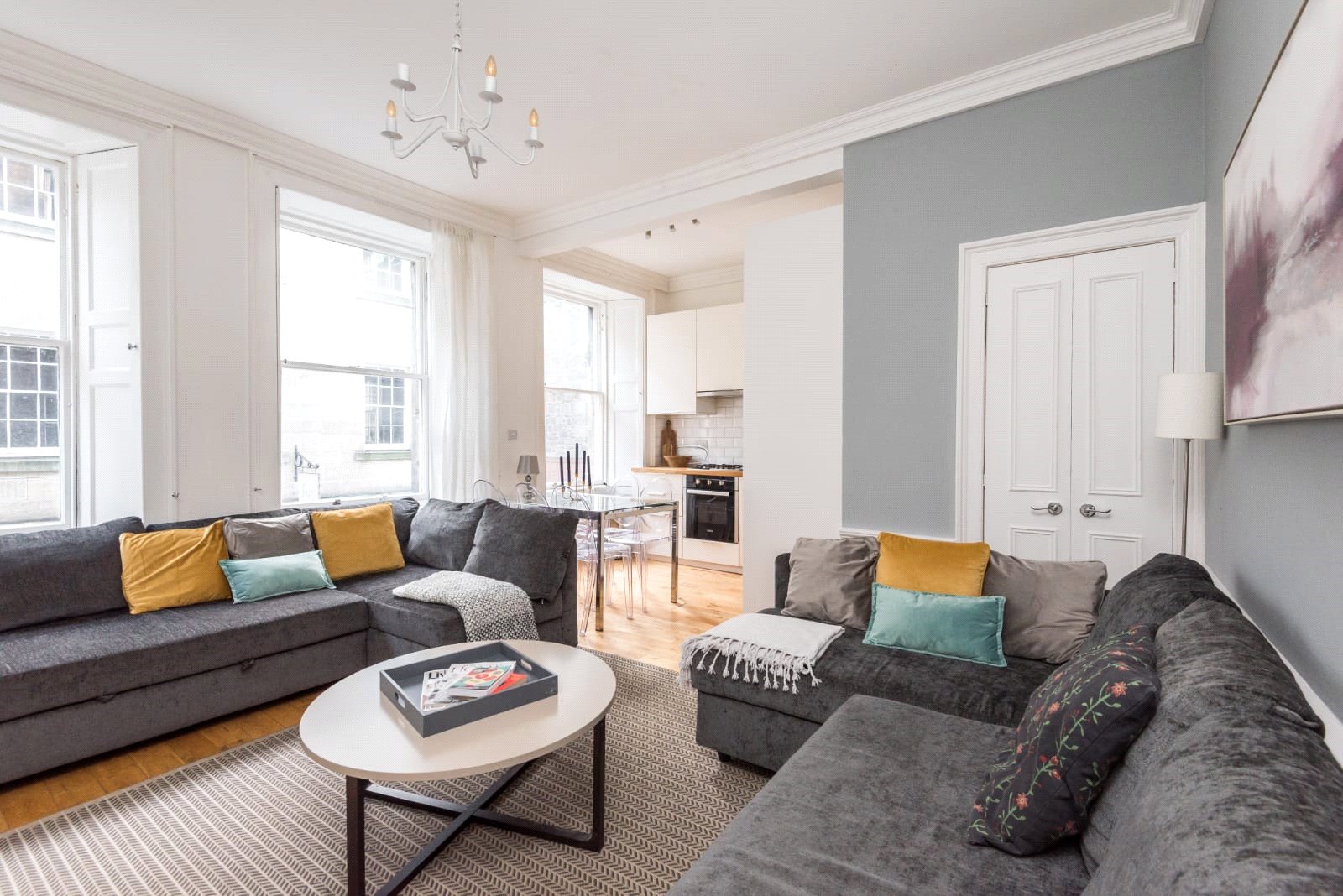 The apartment is located within Edinburgh’s historic New Town which is both a UNESCO World Heritage site and one of Edinburgh’s most affluent and sought-after residential areas. The property is also just a short walk from Edinburgh’s public transport network, both Waverly and Haymarket train stations and has convenient road access to the city bypass, Edinburgh International Airport and the motorway network.