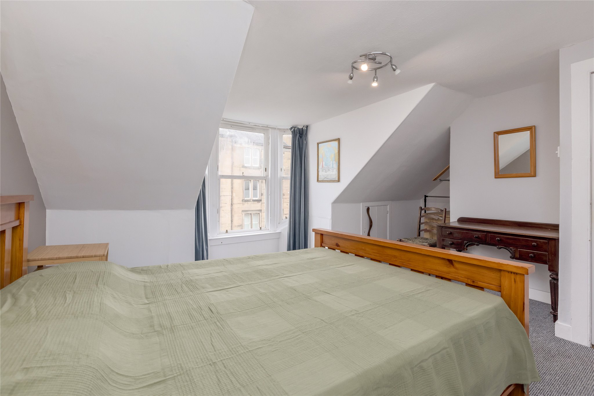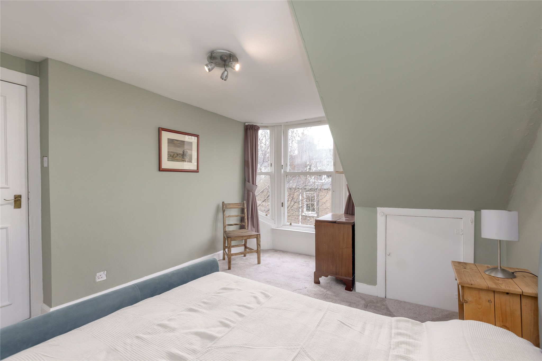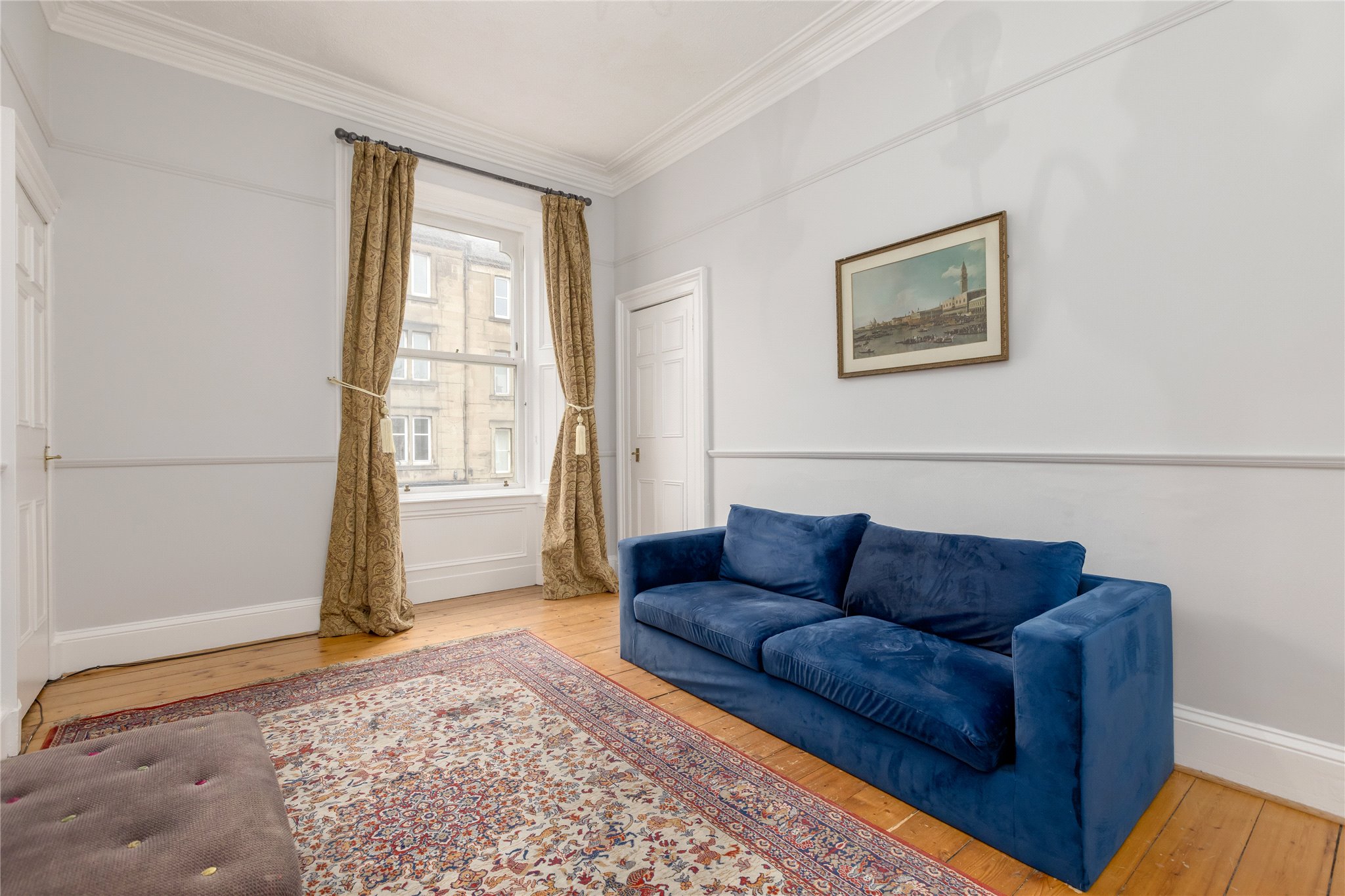 14 Lewis Terrace is a bright and spacious two-bedroom main door upper colony apartment, peacefully nestled on a quiet cobbled street, lined with an attractive row of sandstone terraced houses in the heart of Haymarket.