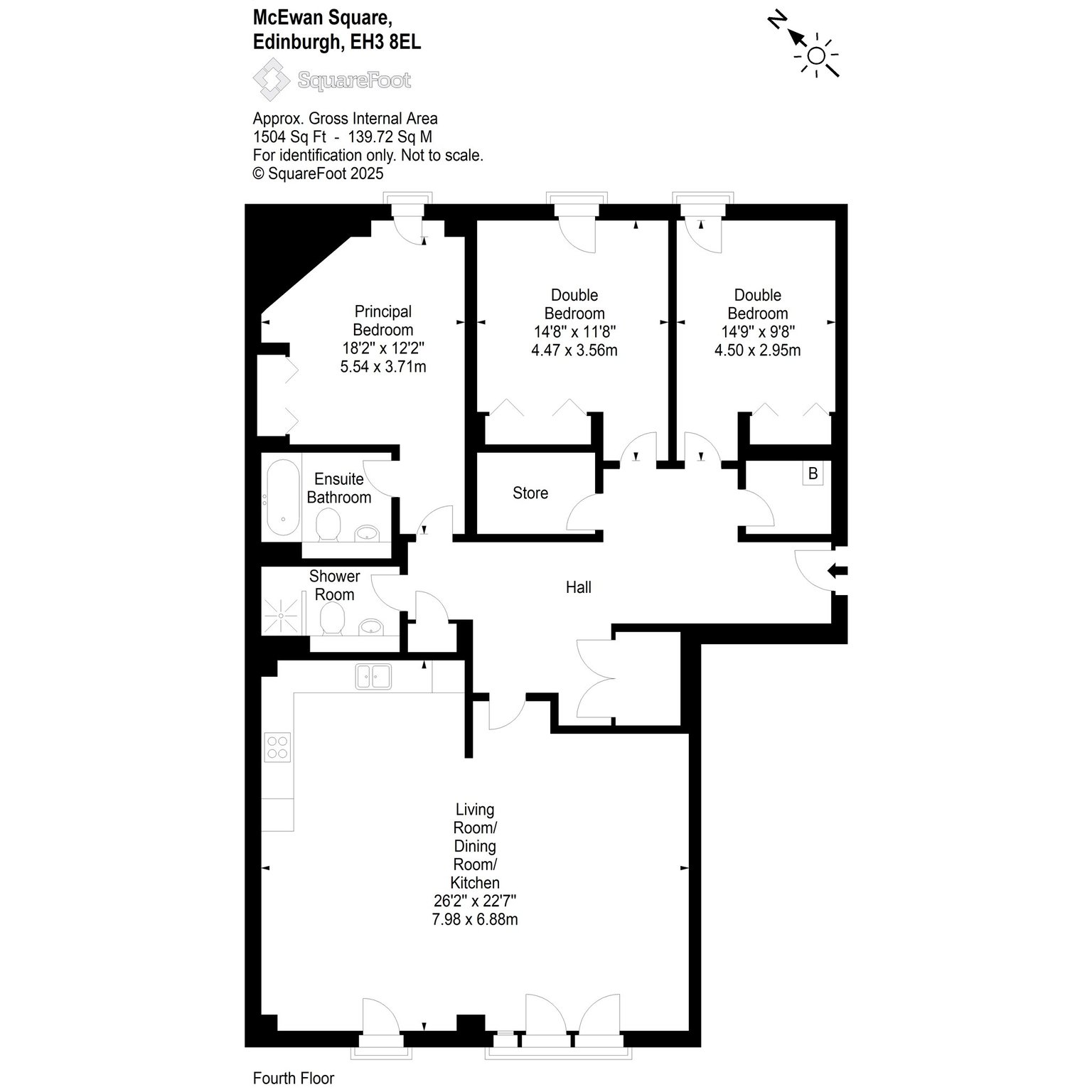 Entrance hallway, open plan living/dining/kitchen, principal bedroom with en-suite bedroom, two further double bedrooms, main bathroom, three storage cupboards.